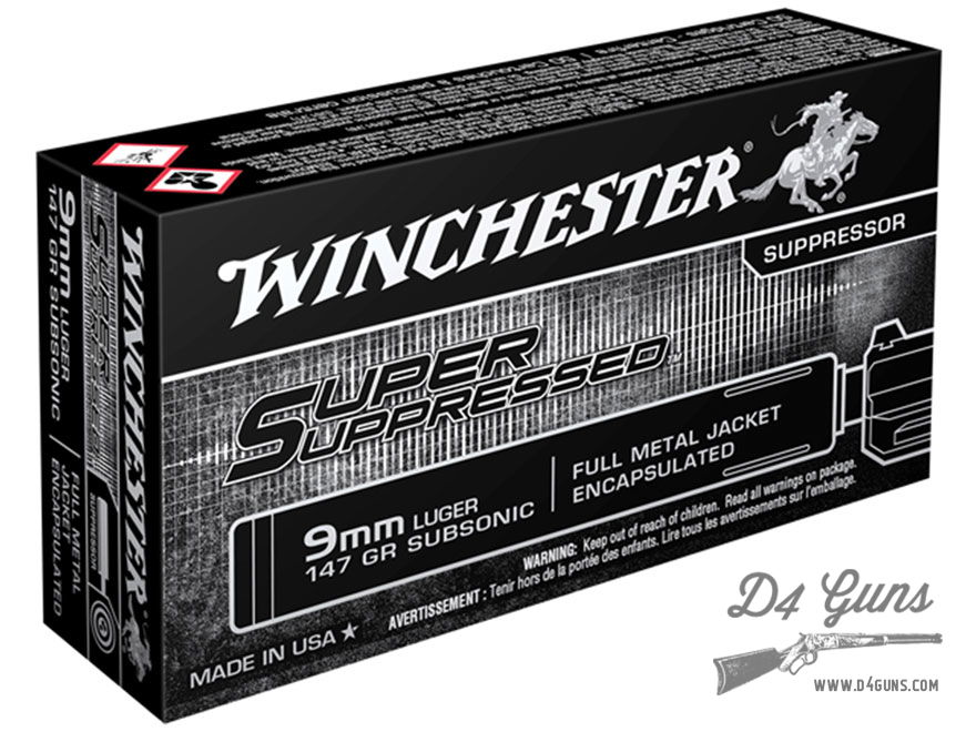 Winchester Super Suppressed 9mm Luger 147gr FMJ 50 Rounds SUP9 020892224445