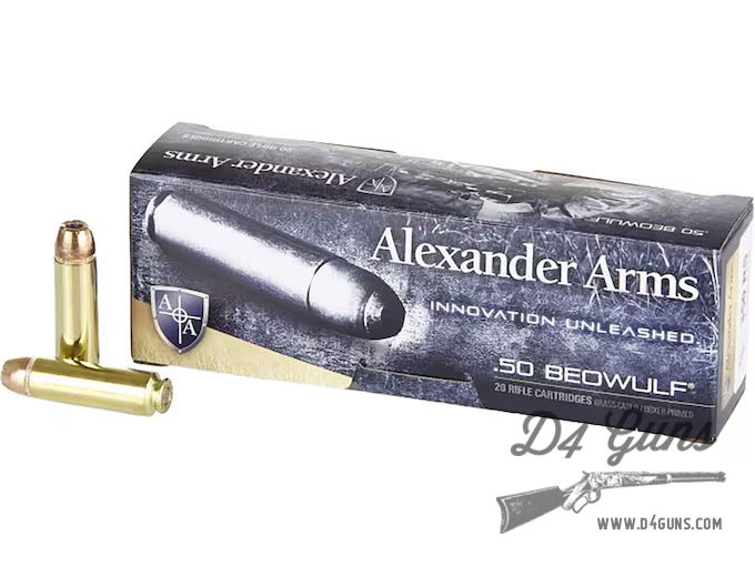 Alexander Arms – .50 Beowulf – 350gr – Hornady XTP Hollow Point – 20 Rounds Per Box – MFG PART #A-B350XTPBOX – UPC: 819511020243. The .50 Beowulf loaded with the Hornady XTP from Alexander Arms is a fantastic round for hunting the largest North American game. From deer and black bear to moose, the .50 Beowulf is designed to perform. For self defense, it's an ideal medium range round that provides superior barrier penetration and devastating terminal ballistics.