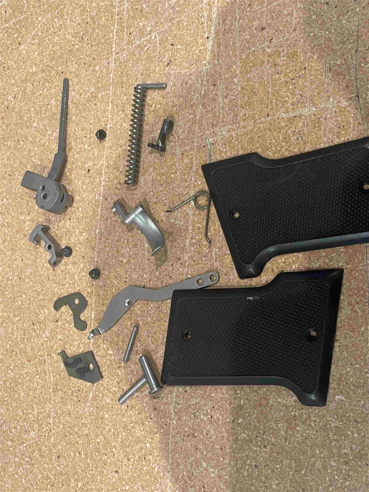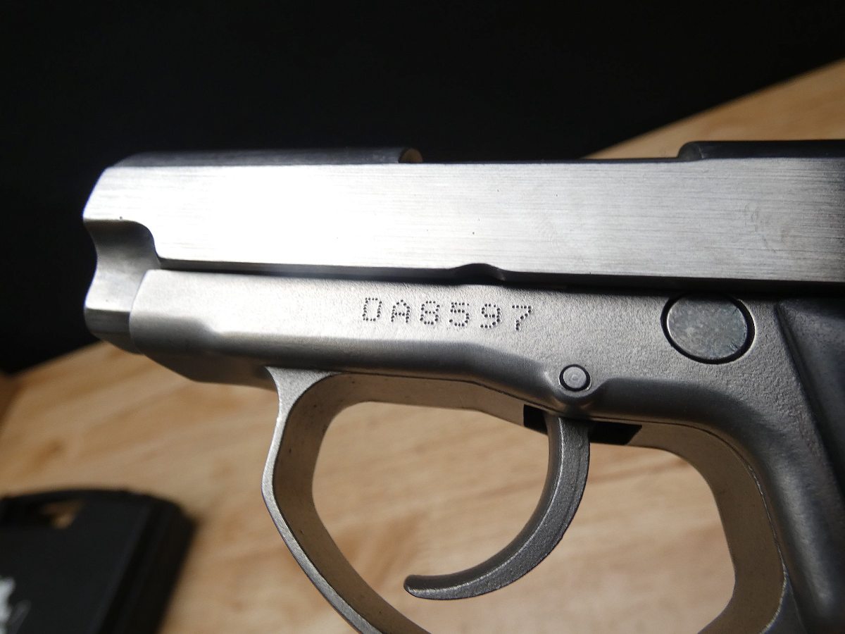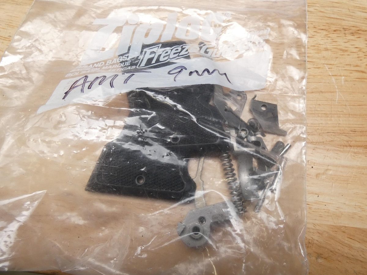 For sale is an AMT Backup semi-automatic pistol in .45 ACP/9mm. Serial number- DA8597. This Stainless Steel Backup is in good condition and comes with two AMT magazines(9mm & .45ACP), a .45 and 9mm slide/barrel, what appears to be all the pieces to convert it back to 9mm, and a hard case. It is currently converted to .45 ACP but it comes with the original 9mm barrel and slide. Includes the bag of parts that we believe are to convert back to a 9mm but we are unsure. Everything appears to be functioning but we do not test fire. Please refer to the pictures. The AMT Backup is a small semi-automatic pistol. AMT Backup pistols were made by AMT in El Monte, Covina CA, and Irwindale, CA. V2-F2 Barrel Length: 3 Bore condition: Good