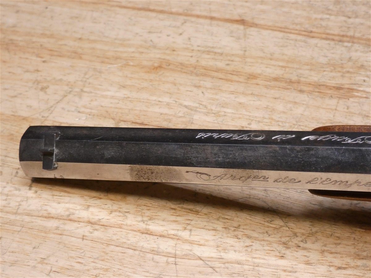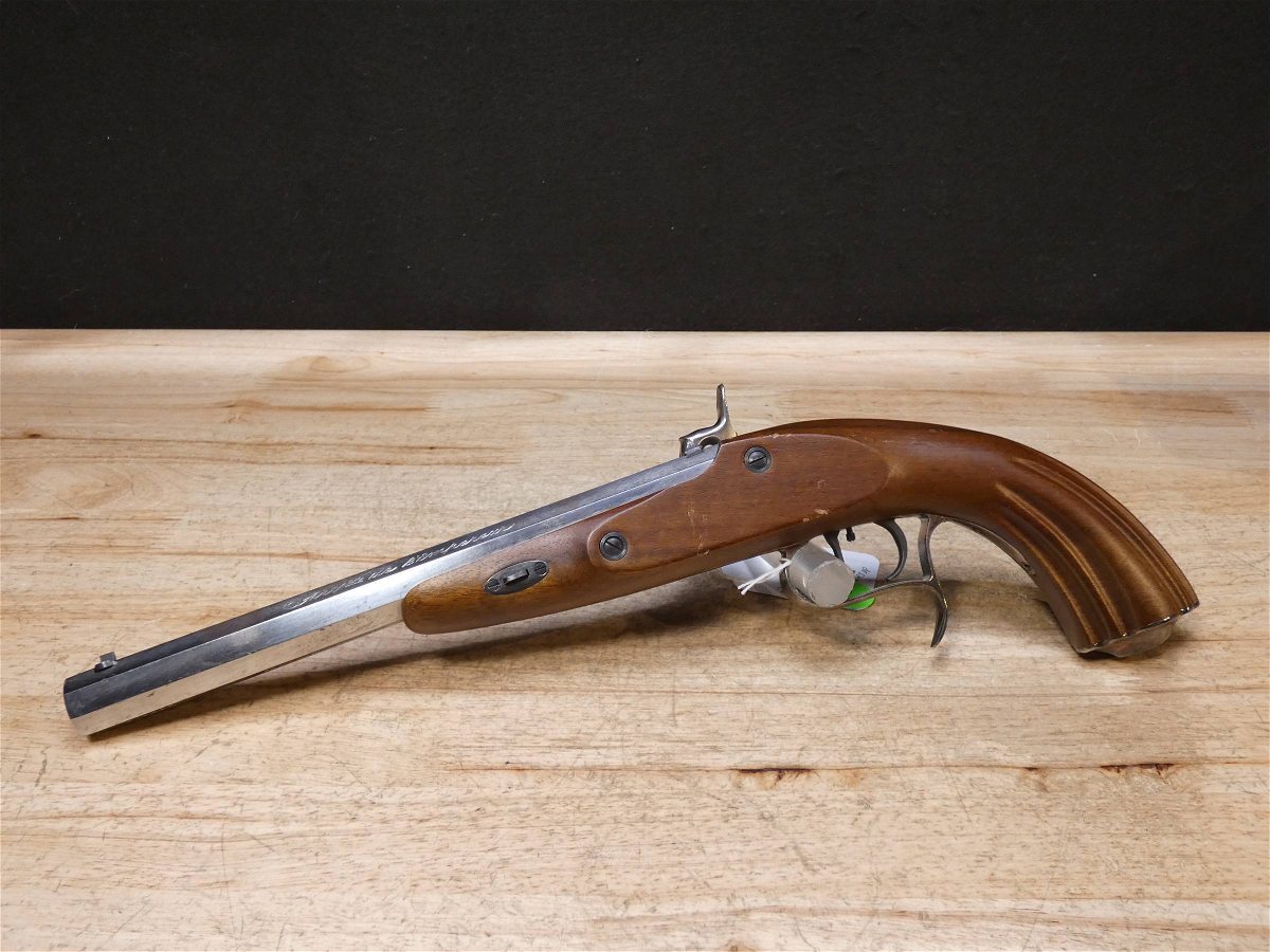 For sale is an Armi Sport LePage blackpowder pistol in .45. Serial number – L68015. American Civil War reenactors and history enthusiasts can own accurate, faithful reproductions of some of the most famous arms used in conflict between the Union and Confederacy. Armi Firearms pays close attention to historical details. PLEASE NOTE – There is a lot of rust in the bore. V1-G1 Barrel Length: 9.9 Bore condition: Fair