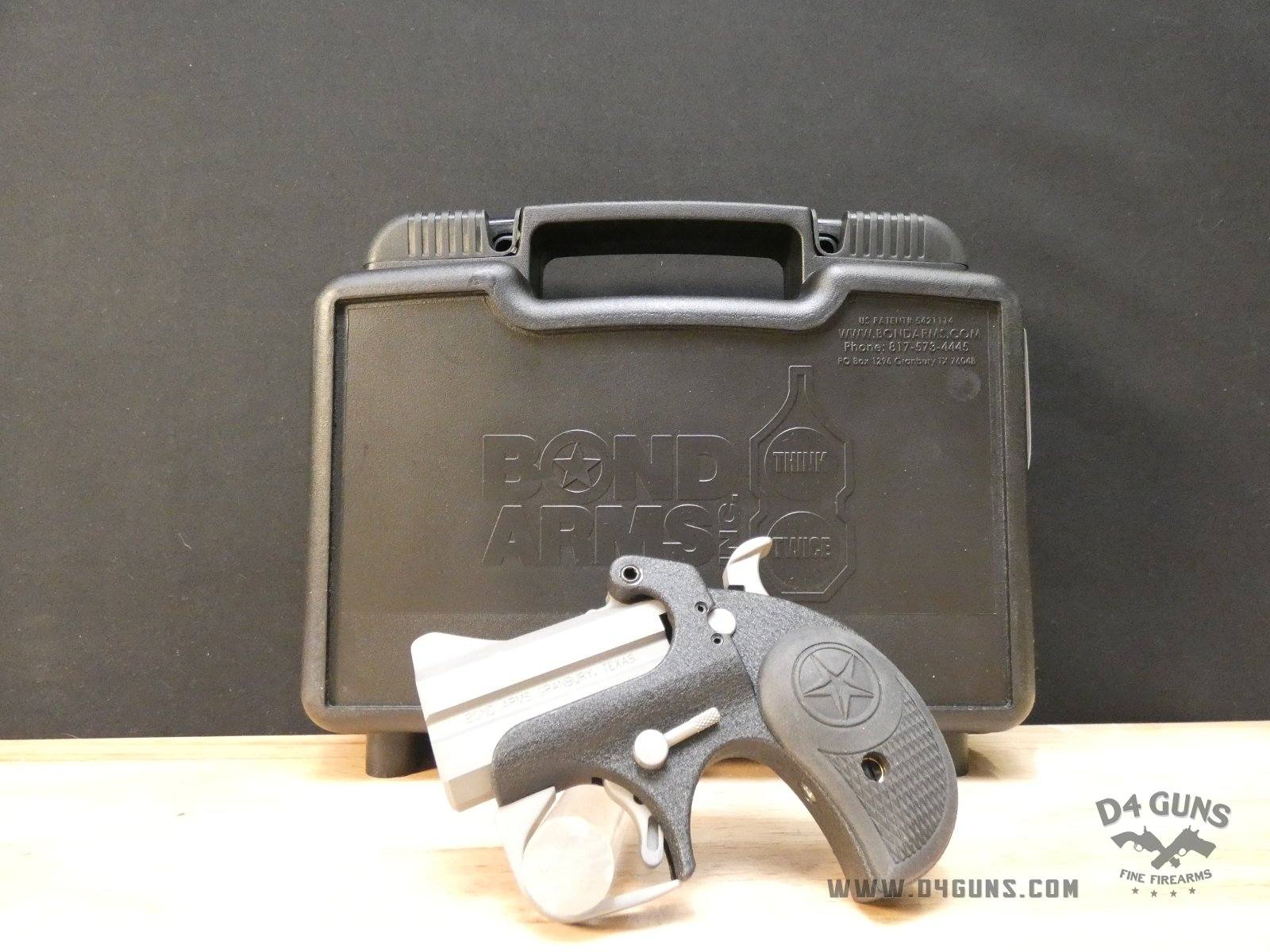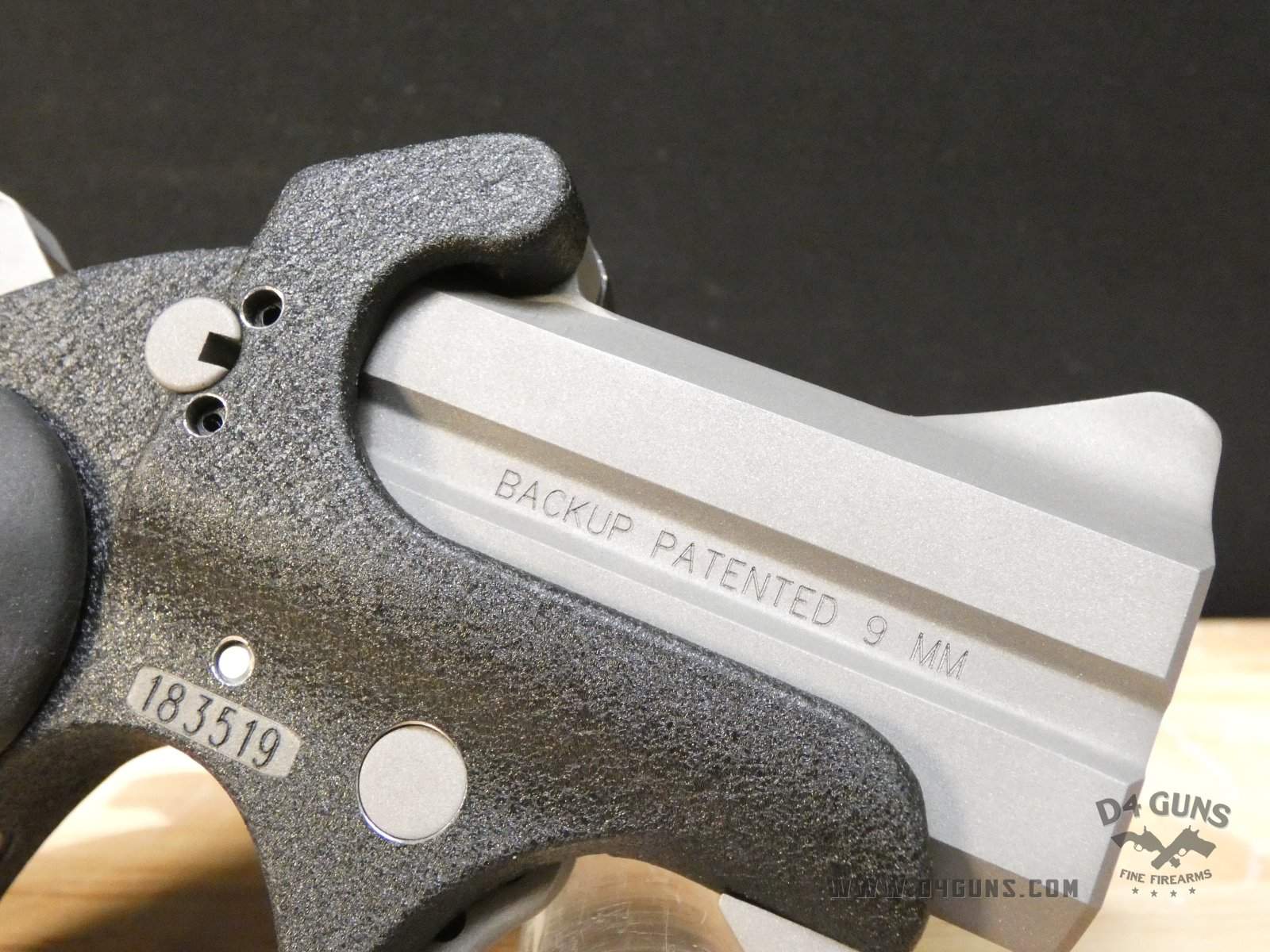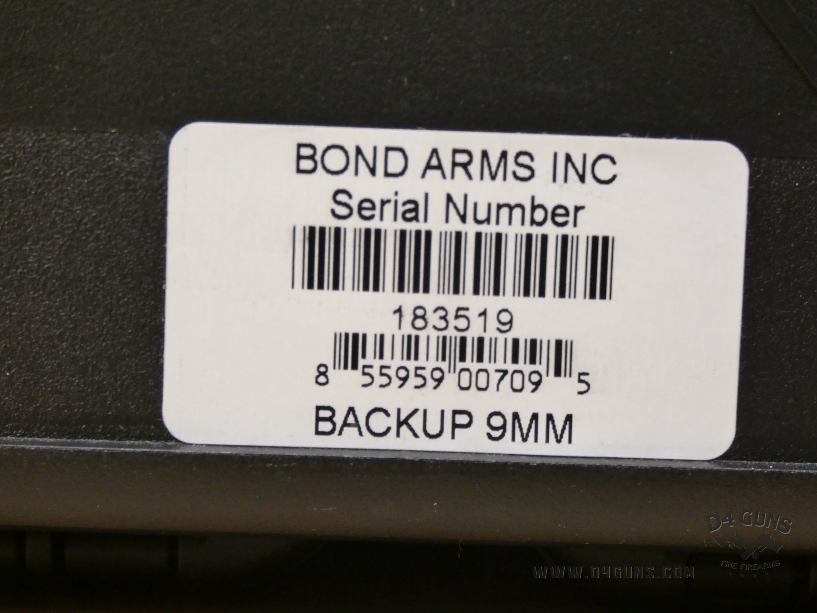 Up for grabs is a Bond Arms Backup single-shot pistol in 9mm. Serial number-183519. This pistol is in great condition and comes with the original case. Designed for easy concealment when you need it, our Backup features a textured frame and bead-blasted anti-glare barrel designed to fire 9mm rounds with its 2.5″ barrel. V2-I2 Barrel Length: 2.5 Bore condition: Good