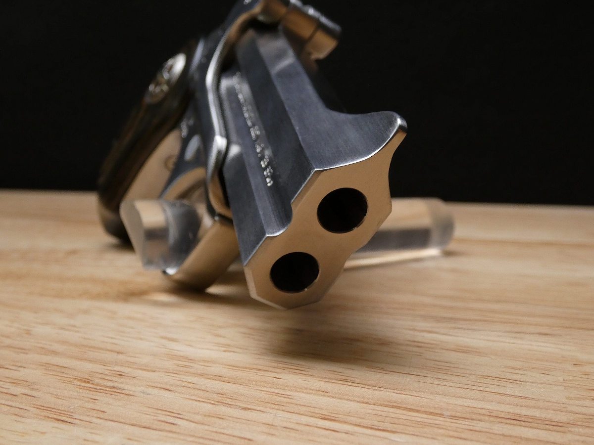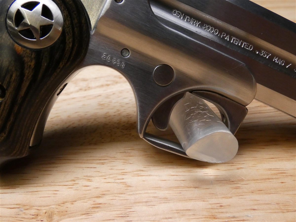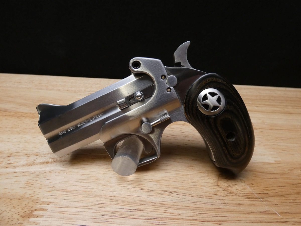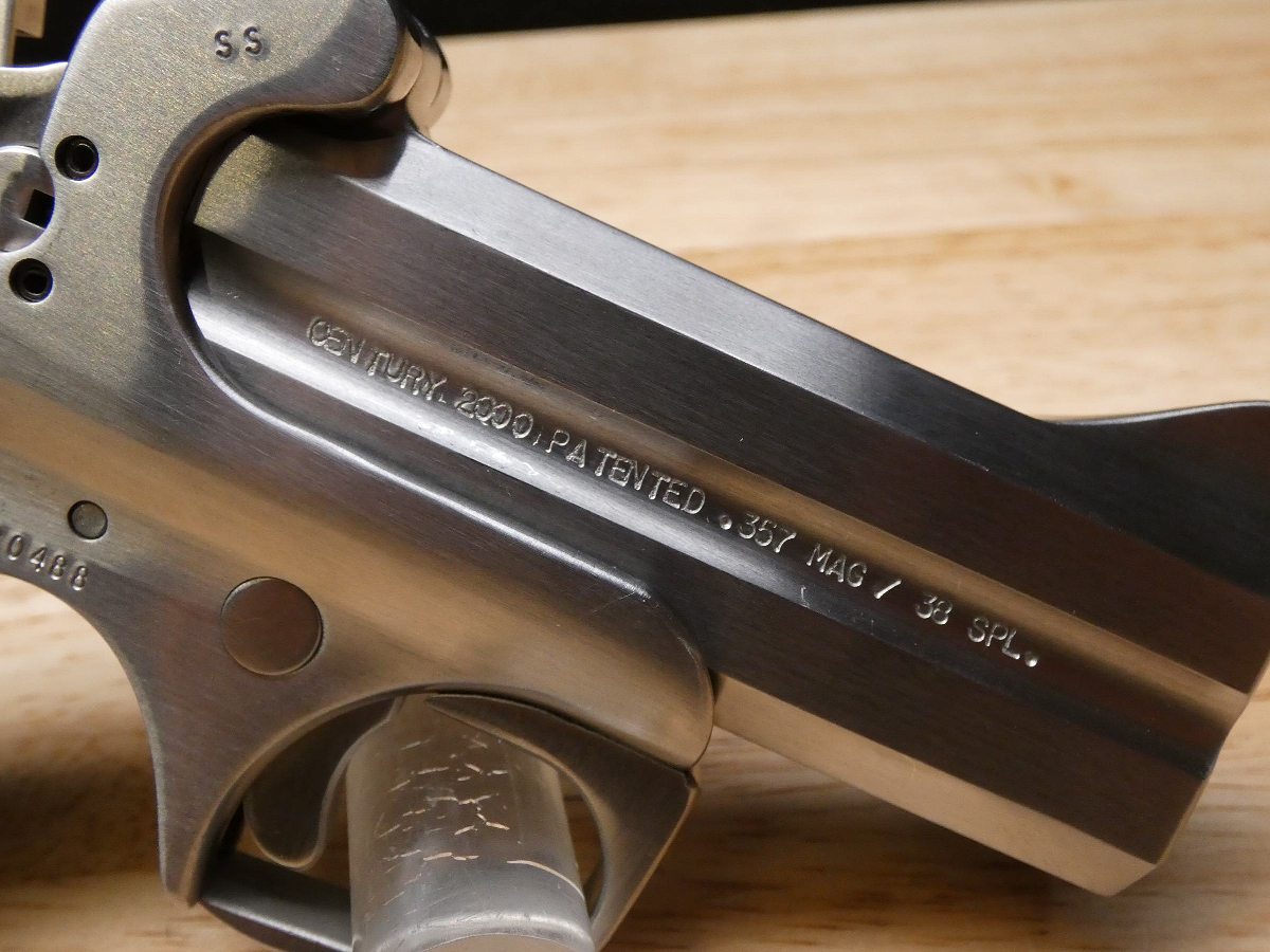 For sale is a Bond Arms Snake Slayer derringer in .45LC/.410 and .357/ 38 SPL. Serial number- 20488. This derringer is in excellent condition and comes with 2 extra grips, 2 interchangeable barrels, hardcase, and OG box. Features a stainless steel double-barrel and frame, rosewood grips, automatic spent casing extractor, retracting firing pins, cross-bolt safety, and a spring-loaded, cammed locking lever. The Snake Slayer is Bond Arms most popular model is the perfect protection for hikers, campers, fishermen and others that enjoy the great outdoors. V2-D2 Barrel Length: 3.5 Bore condition: Excellent