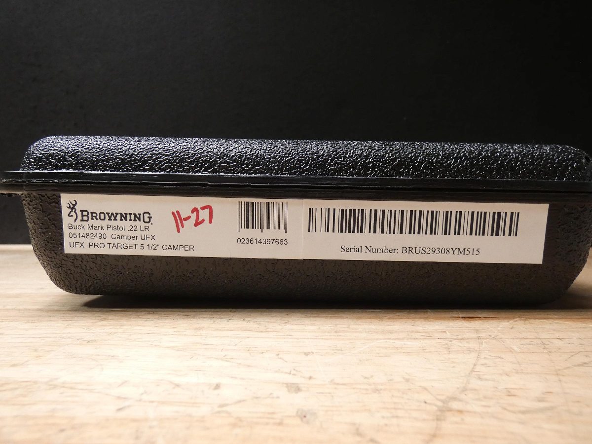 For sale is a Browning Buckmark semi-automatic pistol in .22 LR. Serial number- BRUS29308YM515. This pistol includes an original box, lock, one magazine, and a manual. Browning Model #: Buck Mark Camper with Tru-Glo Front Sights Type: Semi-Automatic Pistol Finish: Matte Blue Stock: Black Composite Grips Sights: Adj Pro Target with Marble Tru-Glo Front Sight Barrel Length: 5.5. V2-J1 Barrel Length: 5.5 Bore condition: Good Year Manufactured: 2020