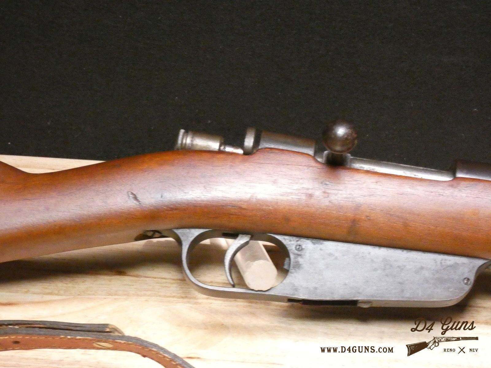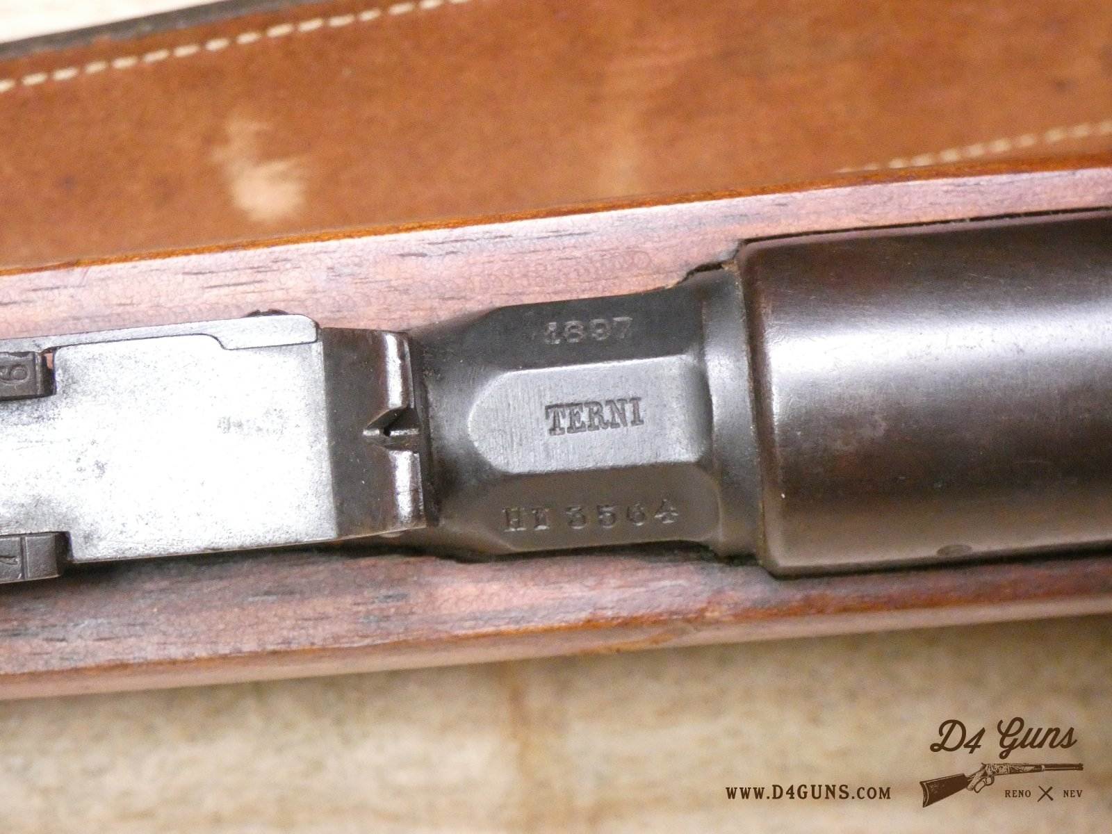 For sale is a Carcano M91/24 Fucile bolt-action rifle in 6.5×52 Carcano. Serial number- HI3564. This rifle looks to have been made in the Terni Arsenal located in Italy in 1897. This rifle does not include a magazine but does include a sling. The stock does not look to be original. V1-D2 Barrel Length: 30.5 Bore condition: Good