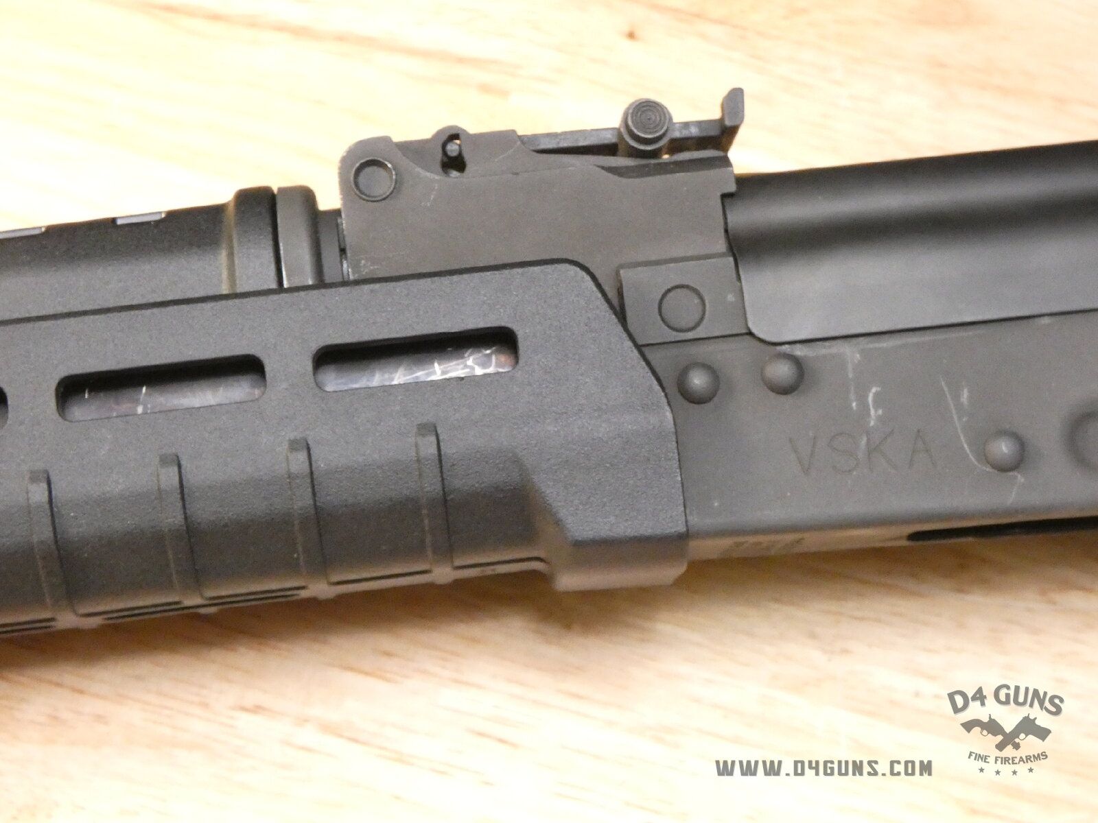 Up for grabs is a Century Arms VSKA semi-automatic rifle in 7.62×39. Serial number-SV70154444. This rifle is in great condition and comes with (2) magazines and manual. For 2019 Century Arms introduces its newest heavy duty AK rifle, the VSKA (vis-kuh). Re-engineered with critical components using machined S7 tool steel, a material so highly regarded for it's ability to withstand heavy duty action that it's used in excavator teeth and jackhammer tips! The VSKA rifle features an all new bolt carrier, front trunnion, and feed ramp machined from S7 tool steel and specially heat treated for maximum durability. S7, often referred to as a "Shock-Resisting Tool Steel," is commonly used for tools like chisels and jackhammer tips as it has maximum shock resistance and high compression strength, while retaining toughness. The front trunnion and bolt are machined from billet and exceeded the durability goals for the project. Additionally, the VSKA features a carburized 4140 steel bolt, a chrome-moly 4150 barrel, and sports the RAK-1 Enhanced Trigger Group for an impressive trigger pull. Along with a manganese-phosphate finish, Century adds a little style to this rugged firearm with an American Maple wood buttstock and forend. No matter the sporting need, the Century Arms VSKA is built for it! V2-K2 Barrel Length: 17.5 Bore condition: Good