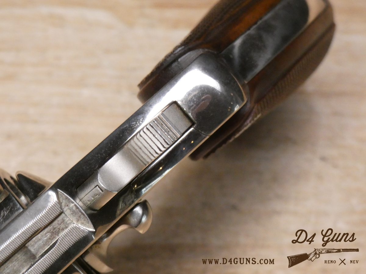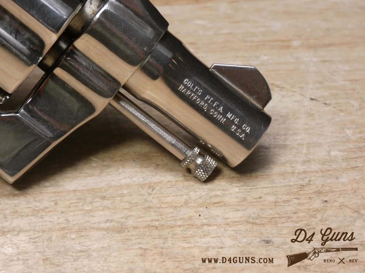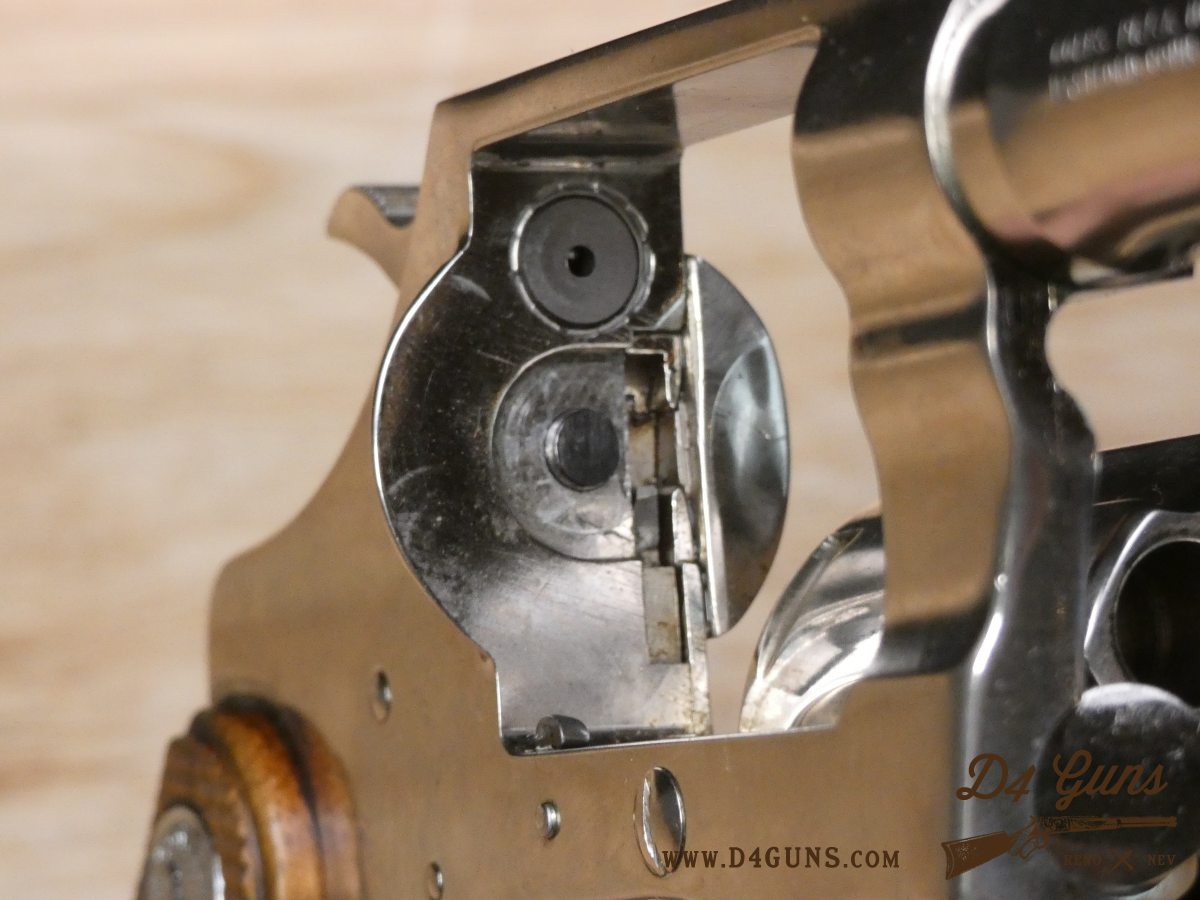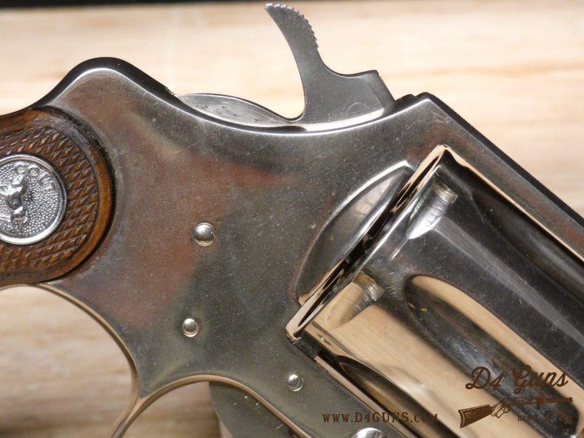 For sale is a Colt Cobra revolver pistol in .38 SPL. Serial number- A62108. MFG dated to 1969. This revolver is in great condition but there are some blemishes on the backstrap of the revolver. We are not sure if the finish is chrome or nickel but the blemishes on the backstrap of the frame seem to coincide with nickel wear. The cylinder release is also a little sticky but the timing and lock up are good.