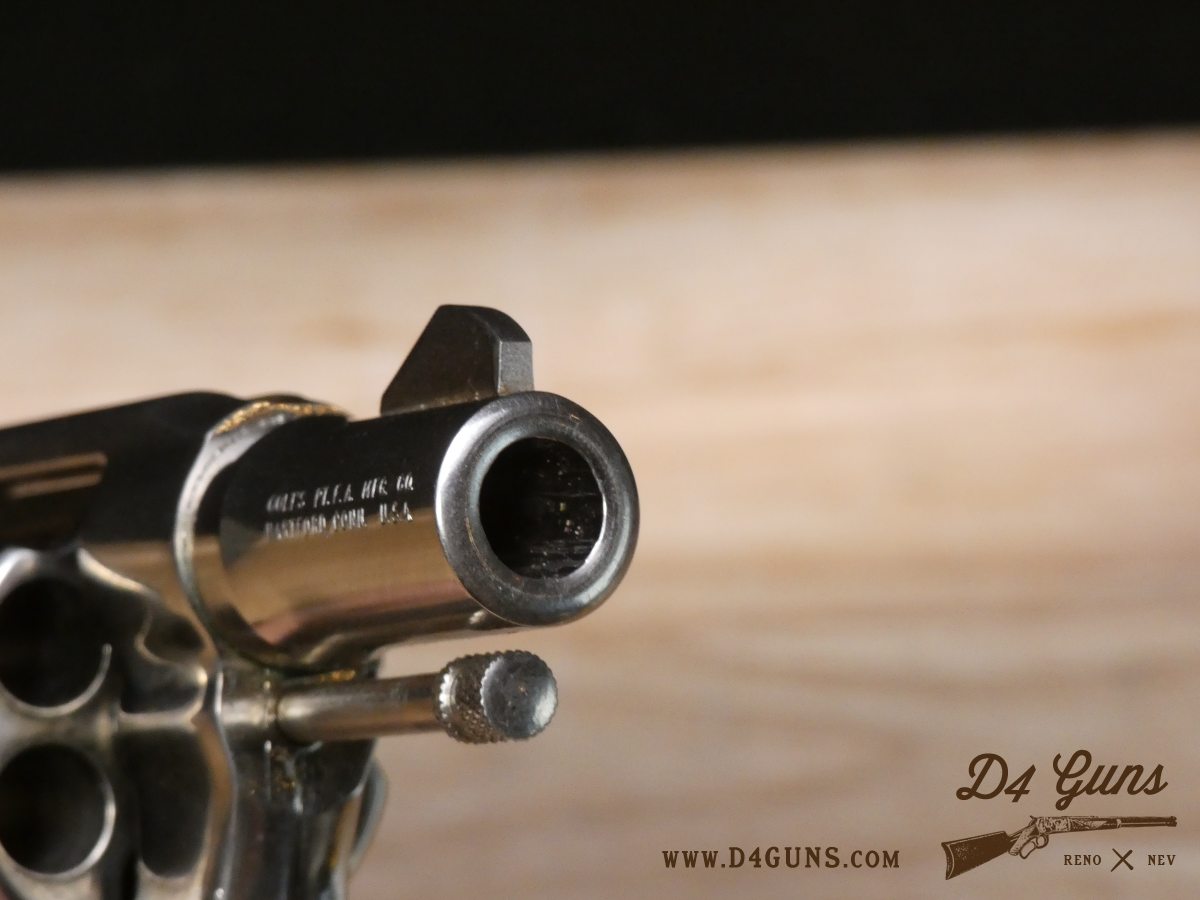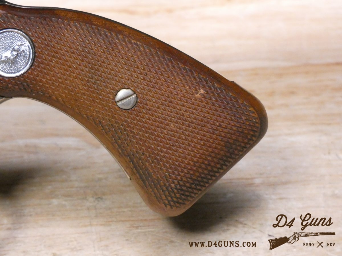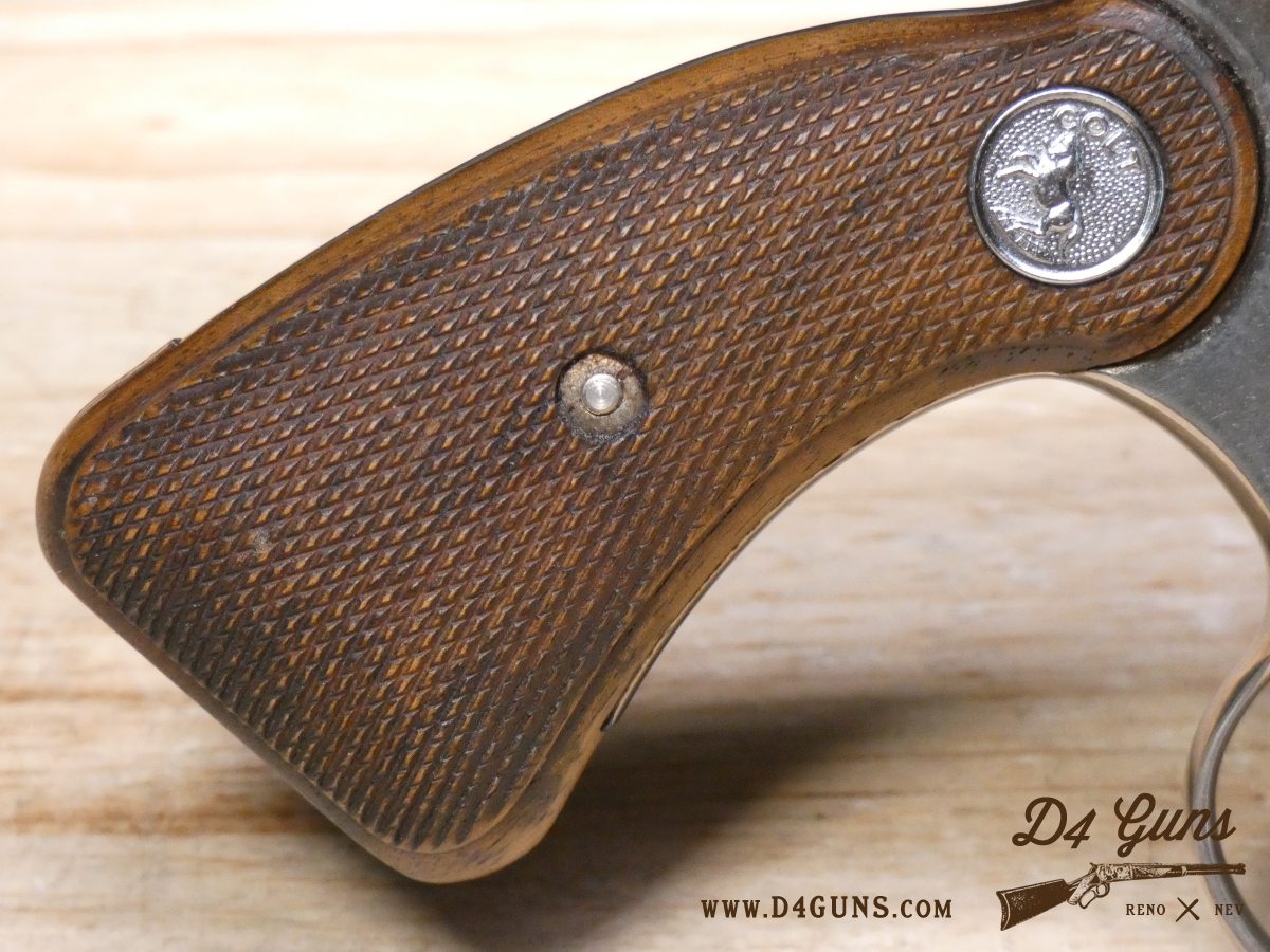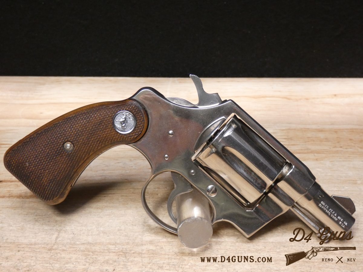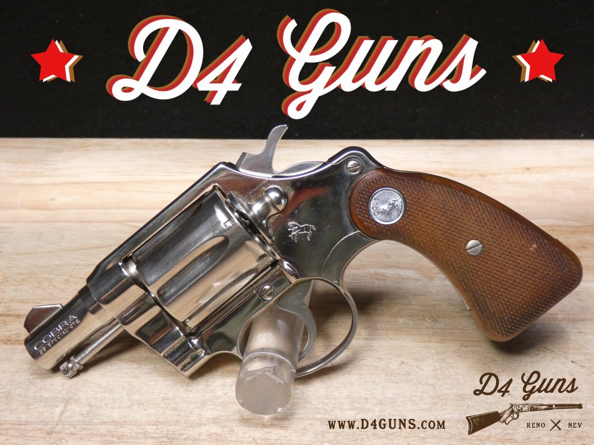 The Colt Cobra established Colt's triumphant return to the world of double-action revolvers. Its small frame and 2" barrel make it ideal for concealed carry. The Cobra is chambered in .38 Special, with the original wood grips. This firearm was designed to meet the needs of new shooters and seasoned professionals alike. It's enjoyable to shoot, easy to carry, and draws from the fine lineage that make Colt revolvers special. V2-E3 Barrel Length: 2 Bore condition: Good Year Manufactured: 1969