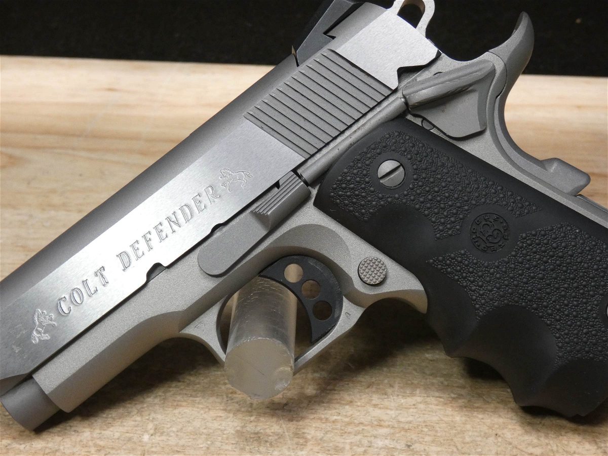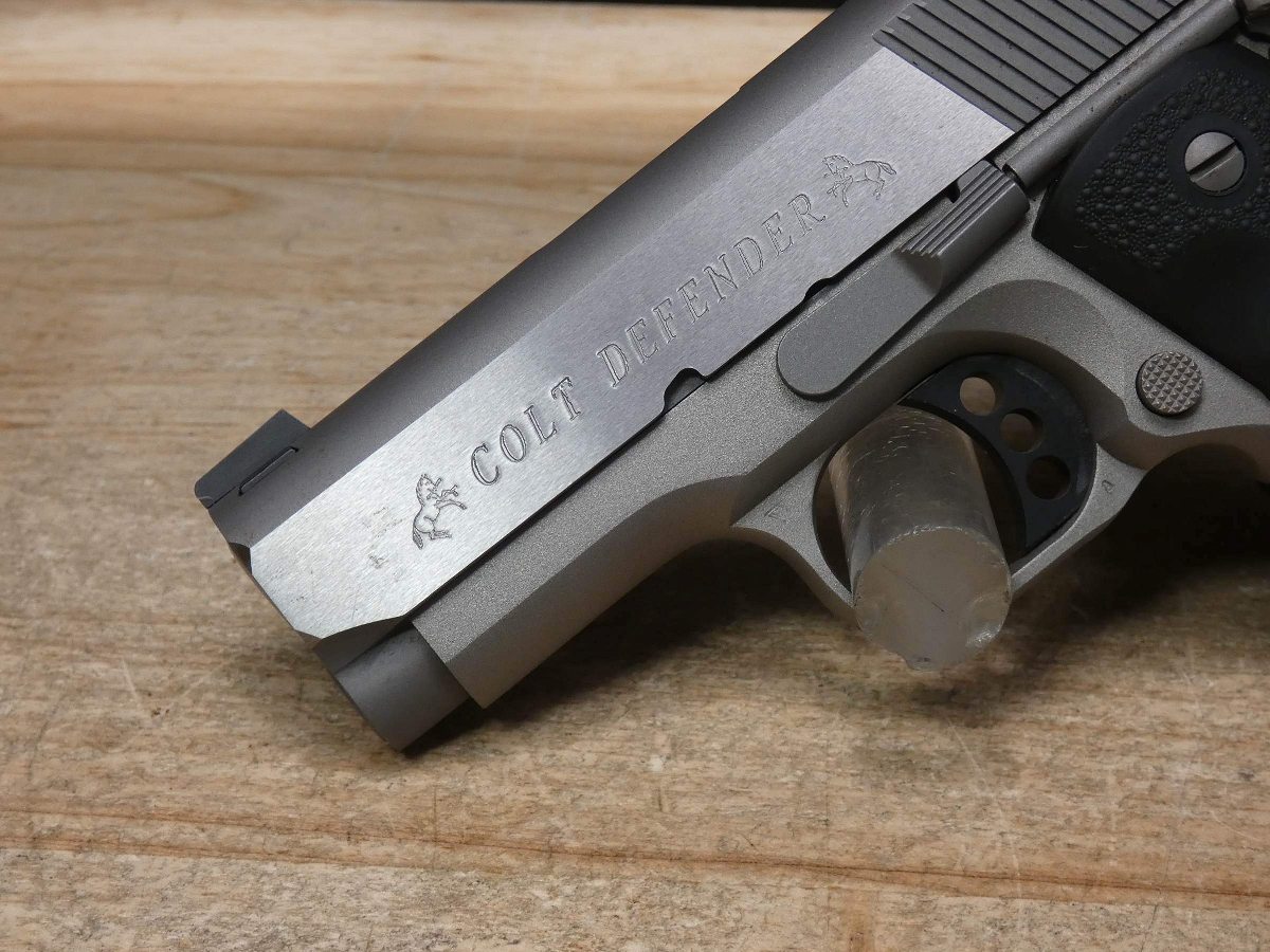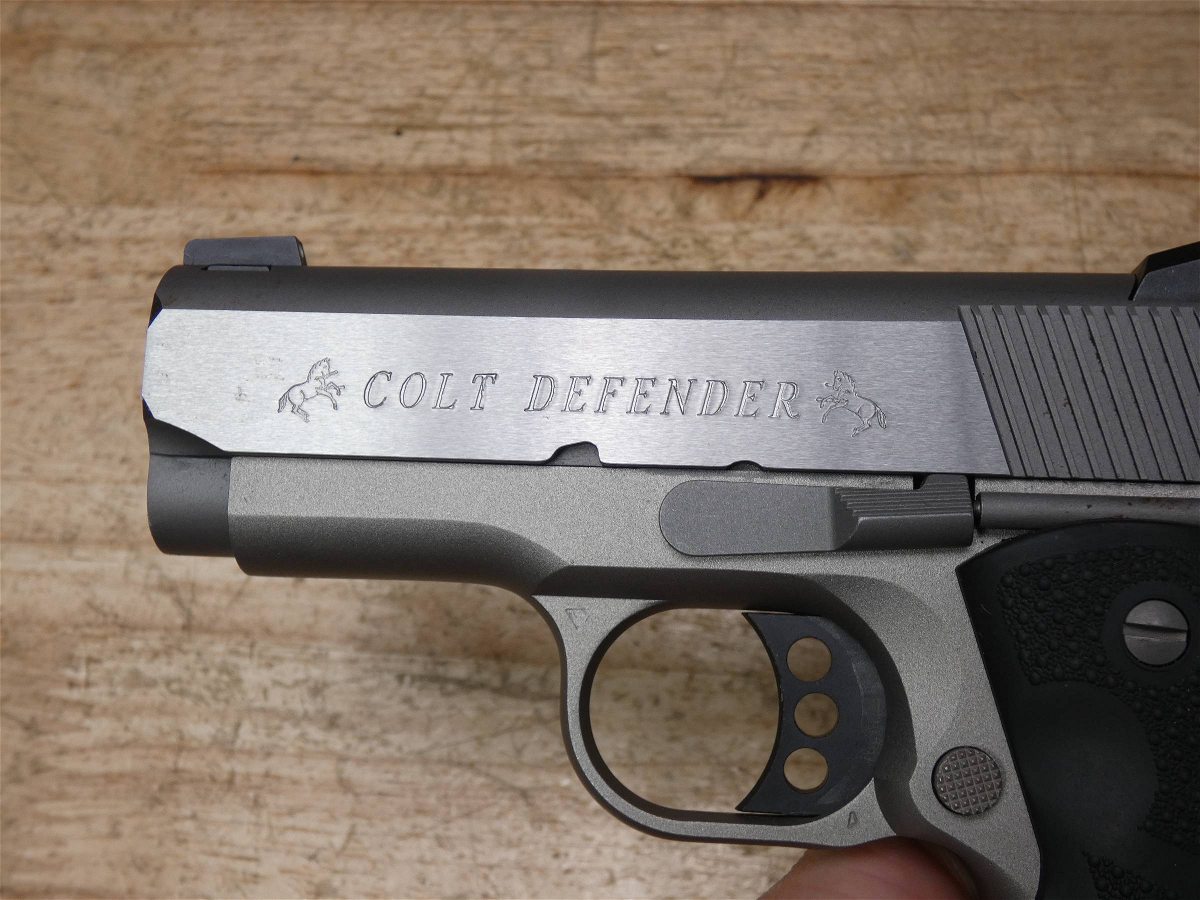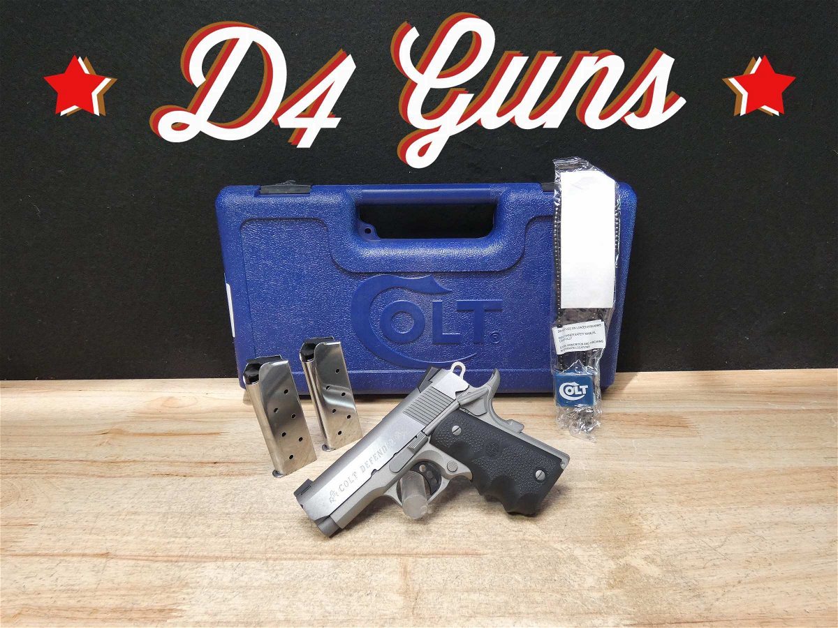 For sale is a Colt Defender Lightweight Model 0 SS Cerakote Stainless Finish semi-auto pistol in .45 ACP. Serial number- DR69123. This pistol includes the original box, two magazines, a manual, and more! With a Colt Upswept Beavertail Grip Safety, this pistol will provide an exceptional hold and quick target acquisition. The Colt Defender is an accurate and reliable workhorse able to withstand the rigors of everyday carry and numerous trips to the range. V2-E1 Barrel Length: 3.25 Bore condition: Good