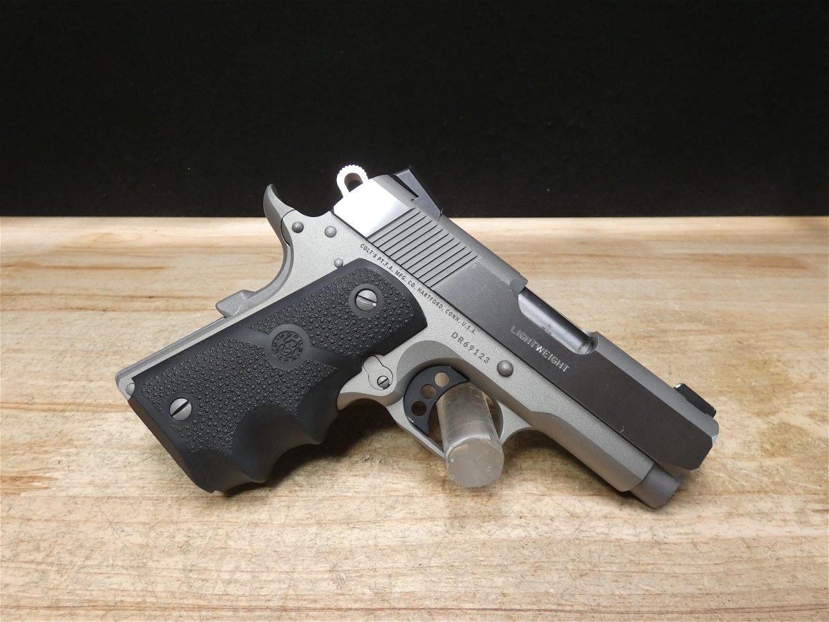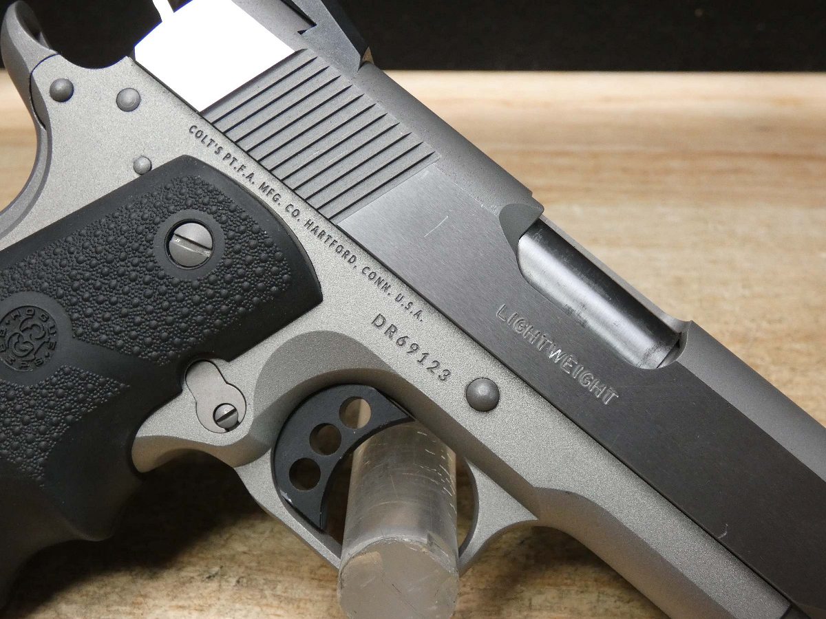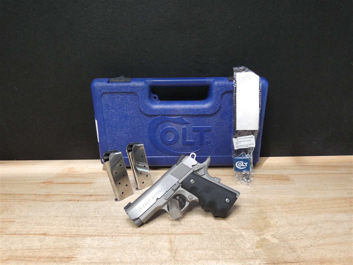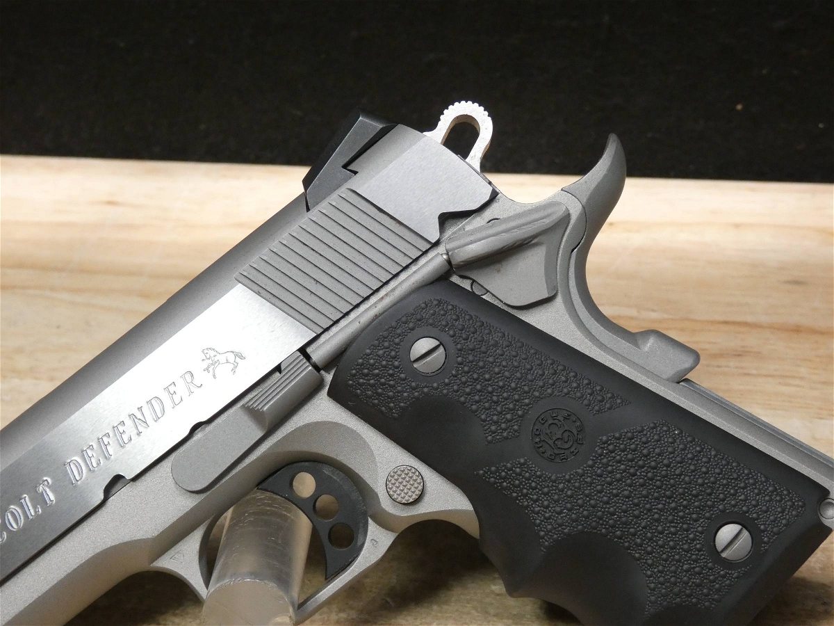 For sale is a Colt Defender Lightweight Model 0 SS Cerakote Stainless Finish semi-auto pistol in .45 ACP. Serial number- DR69123. This pistol includes the original box, two magazines, a manual, and more! With a Colt Upswept Beavertail Grip Safety, this pistol will provide an exceptional hold and quick target acquisition. The Colt Defender is an accurate and reliable workhorse able to withstand the rigors of everyday carry and numerous trips to the range. V2-E1 Barrel Length: 3.25 Bore condition: Good