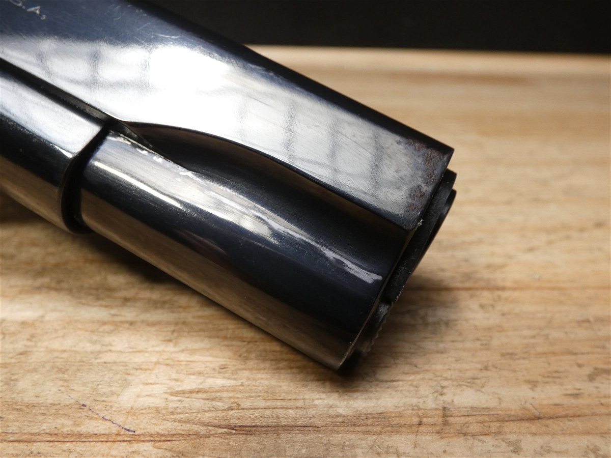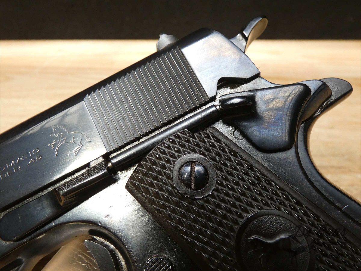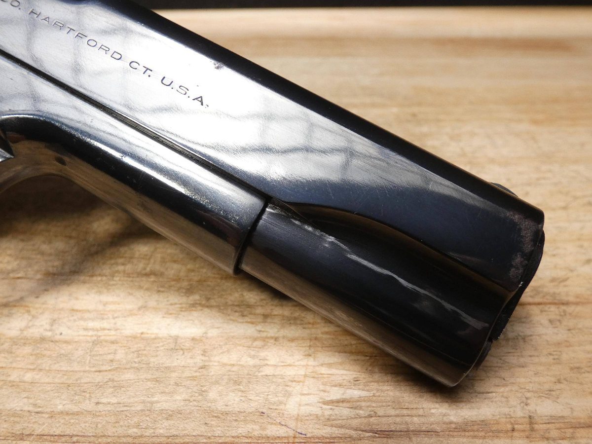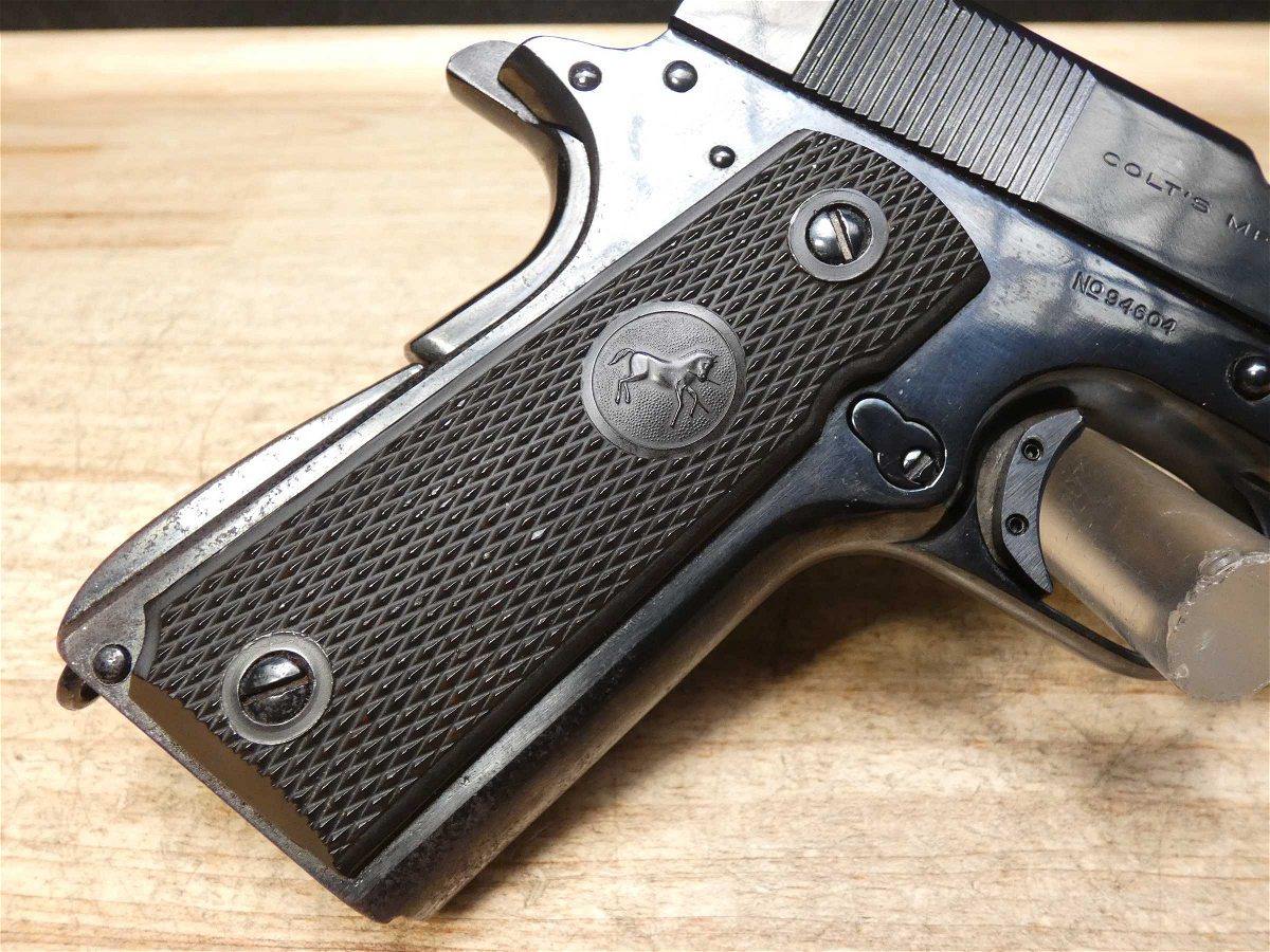For sale is a Colt Model 1911 semi-automatic pistol in .45 ACP. Serial number- 94604. This Colt Model 1911 is in good condition and comes with 1 magazine. The magazine is stamped "S" for Scoville which places it as a time period correct magazine! PLEASE NOTE: The frame is from an original Colt 1911 Military WWI Model and the slide is from a later Colt Government Model making this mismatched. It also appears it may have been refinished at some point but we are uncertain. The frame's serial number dates back to a 1914 manufacture date. The M1911, also known as the Colt 1911, or the Colt Government, is a single-action, semi-automatic, magazine-fed, recoil-operated pistol chambered for the .45 ACP cartridge. The U.S. military procured around 2.7 million M1911 and M1911A1 pistols during its service life. The pistol served as the standard-issue sidearm for the United States Armed Forces from 1911 to 1985. It was widely used in World War I, World War II, the Korean War, and the Vietnam War. The 1911 is generally viewed as one of the finest combat pistols ever designed and the first successful self-loading pistol. 1911 was designed by American firearms inventor John Browning and is the oldest service pistol in the world, still used in over 25 nations for over 100 years; it has proven itself to be one of the most popular and timeless handguns ever made. V2-F3 Barrel Length: 5 Bore condition: Excellent