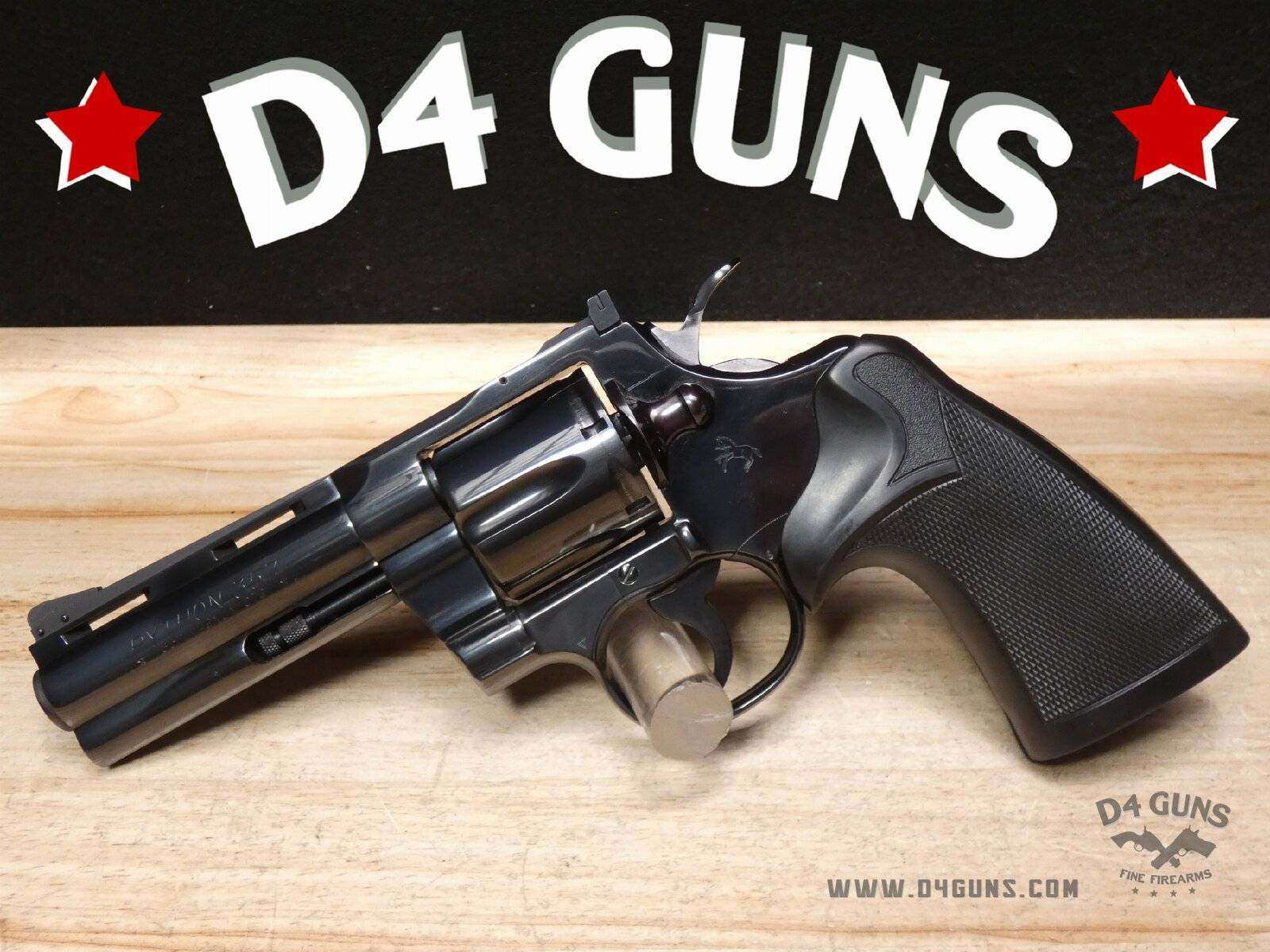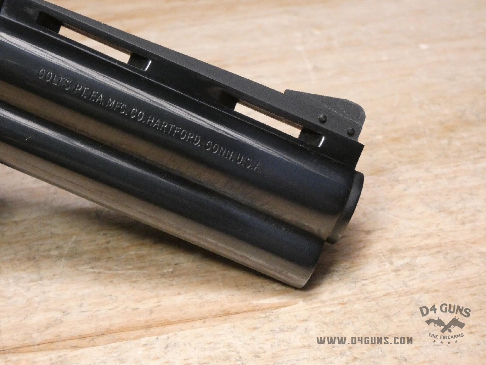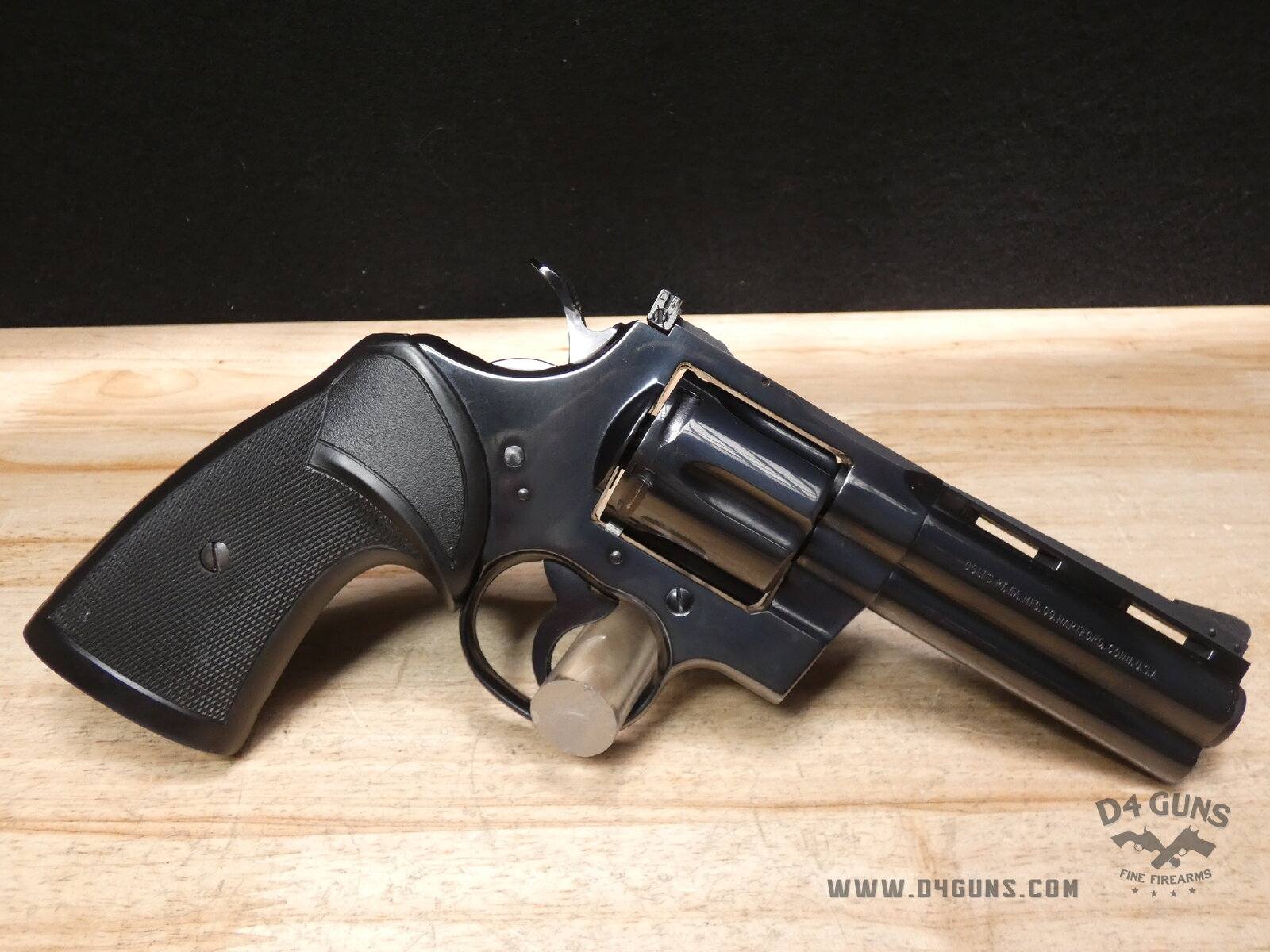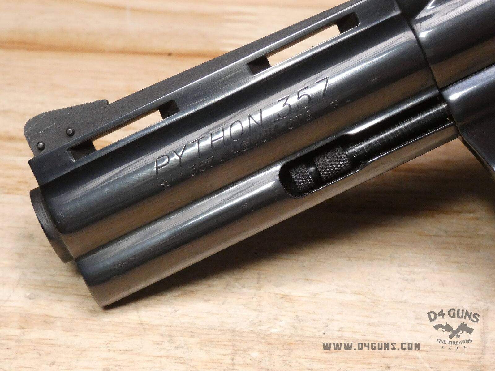 Built on Colt’s large I-frame. Pythons have a reputation for accuracy, smooth trigger pull, and a tight cylinder lock-up. Some firearm collectors and writers such as Jeff Cooper, Ian V. Hogg, Chuck Hawks, Leroy Thompson, Scott Wolber, Renee Smeets, and Martin Dougherty have described the Python as the finest production revolver ever made. V2-D2 Barrel Length: 4 Bore condition: Good Year Manufactured: 1973