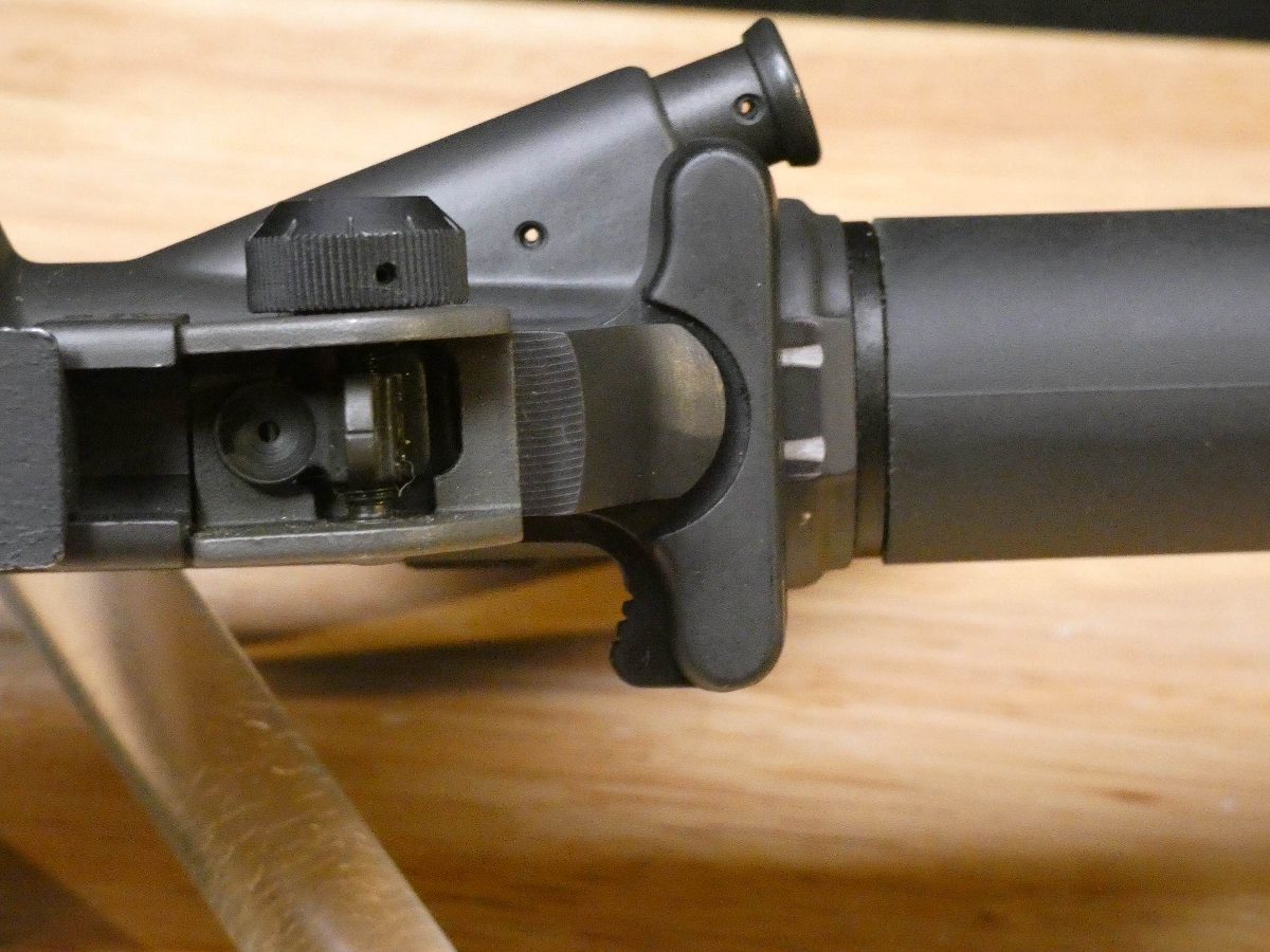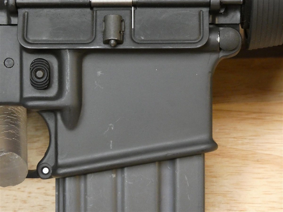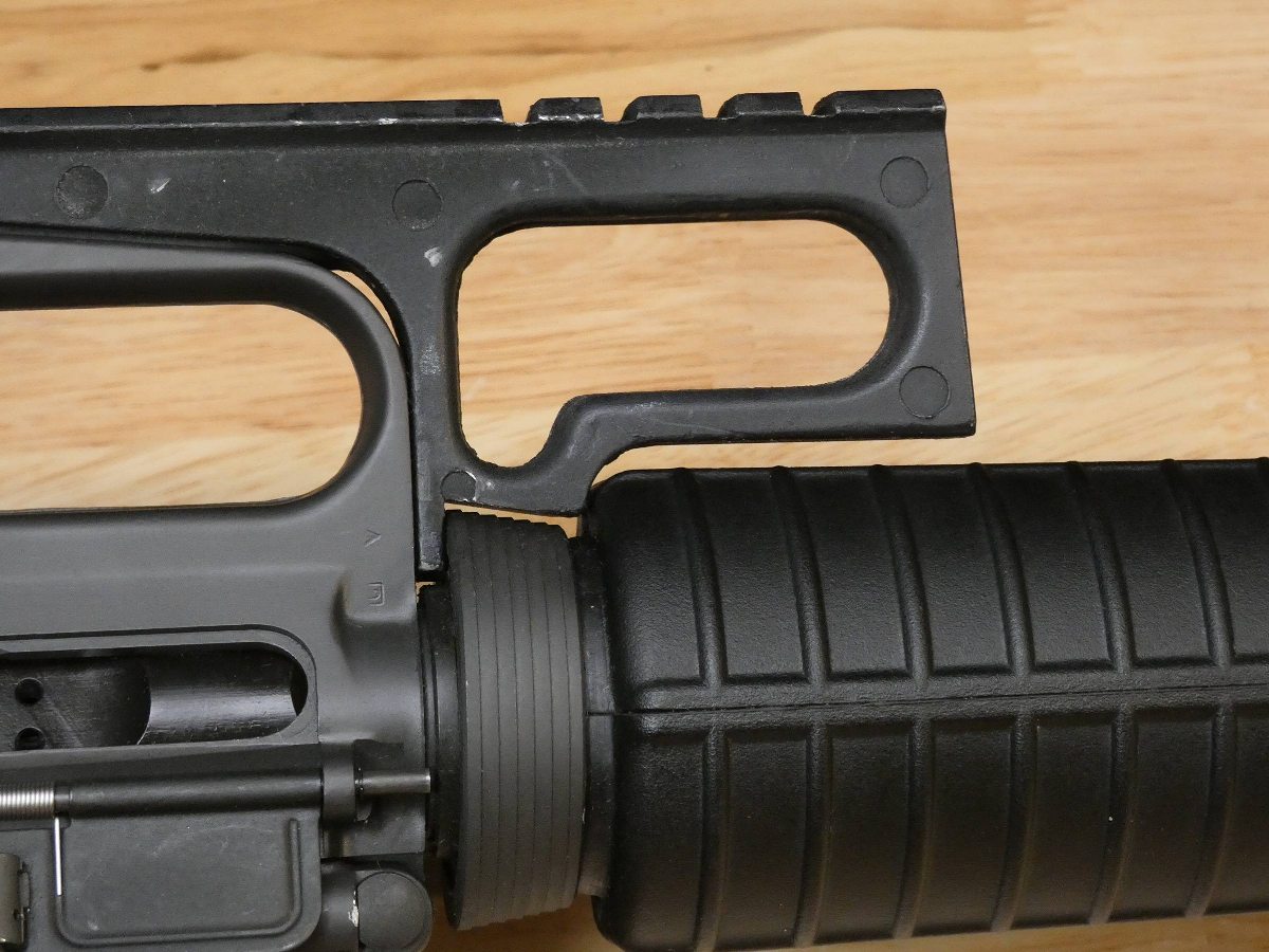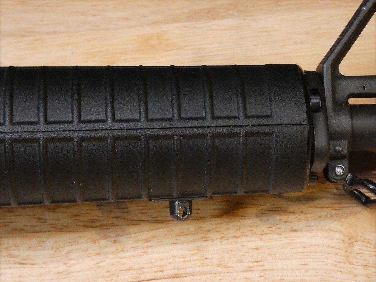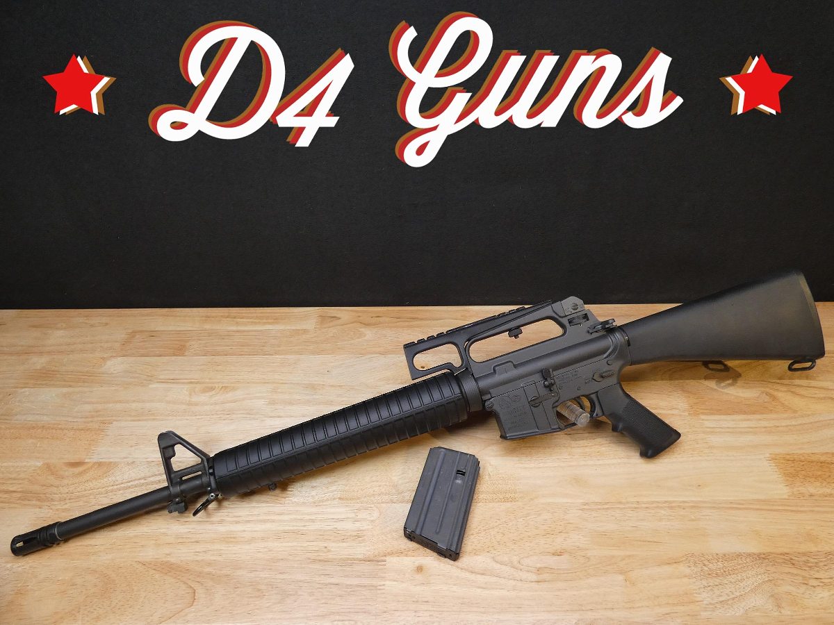 For sale is a Colt Sporter Competition Match HBAR Pre-Ban semi-automatic rifle in .223 Rem. Serial number- MH073932. This rifle is in great condition. It has the Standard post front and adjustable two-leaf rear peep sights, 20 inch Heavy Competition HBAR barrel with a 1/7 twist, standard markings on the lower receiver, correct A2 pattern upper receiver with deflector, forward assist, checkered grip, and fixed buttstock with a checkered trapdoor buttplate. This model also features a bayonet lug and a Picatinny mount on the carry handle. Made in the 1980s and early 1990s, production discontinued after the 90s Assult Rifle Ban. Pre-Ban AKs and ARs are now highly desired. V2-L1 Barrel Length: 20 Bore condition: Good