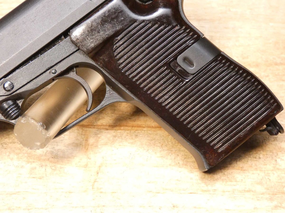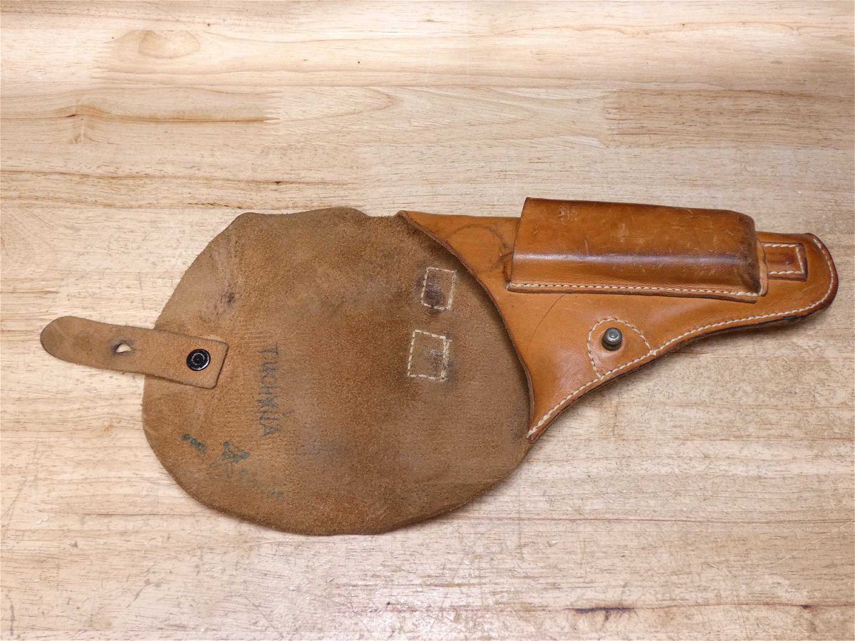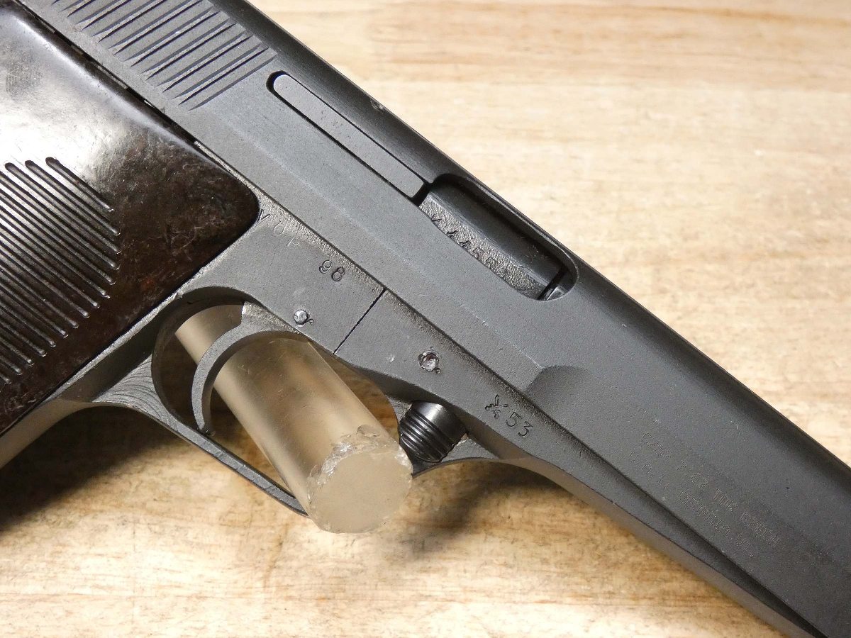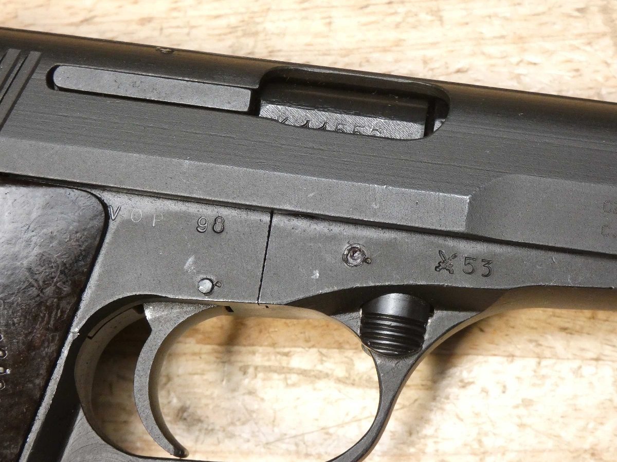 For sale is a CZ-52 semi-auto pistol in 7.62×25mm Tokarev. Serial number- K11556. Includes two magazines and a holster. The CZ 52 pistol is a roller-locked short recoil-operated, detachable box magazine-fed, single-action, semi-automatic pistol chambered for the 7.62×25mm Tokarev cartridge (the gun was originally designed for 9 mm Luger caliber but due to political pressures had to be redesigned for the Soviet then standard pistol cartridge). PLEASE NOTE: The barrel looks to have some pitting. V2-I3 Barrel Length: 4.5 Bore condition: Poor