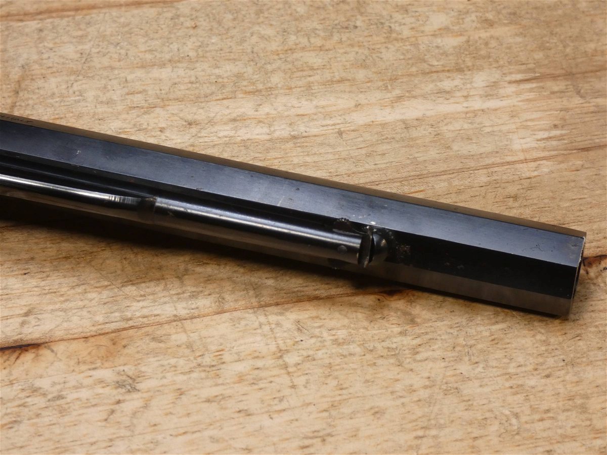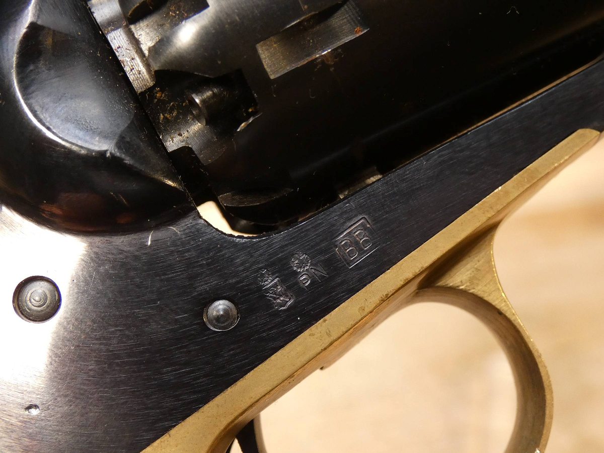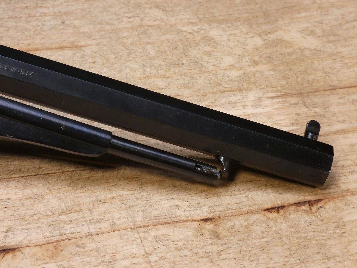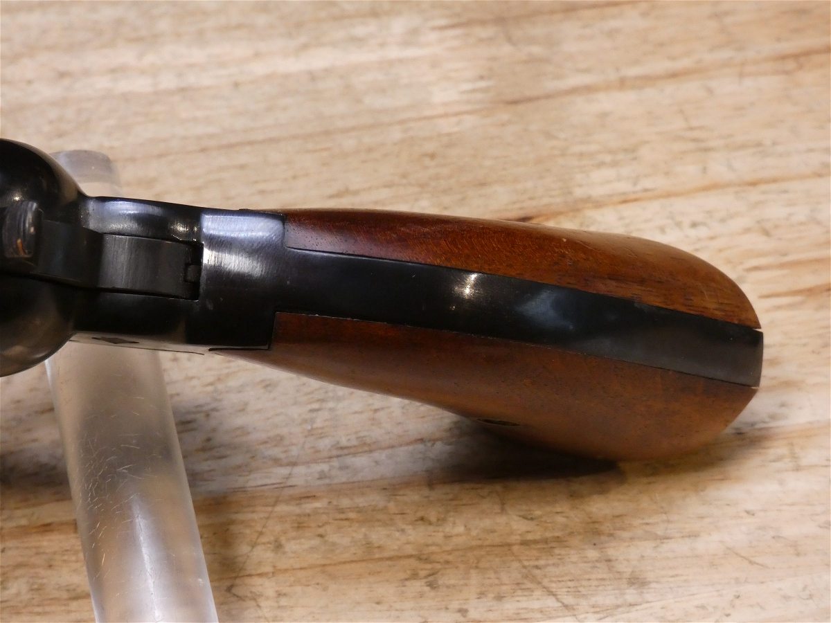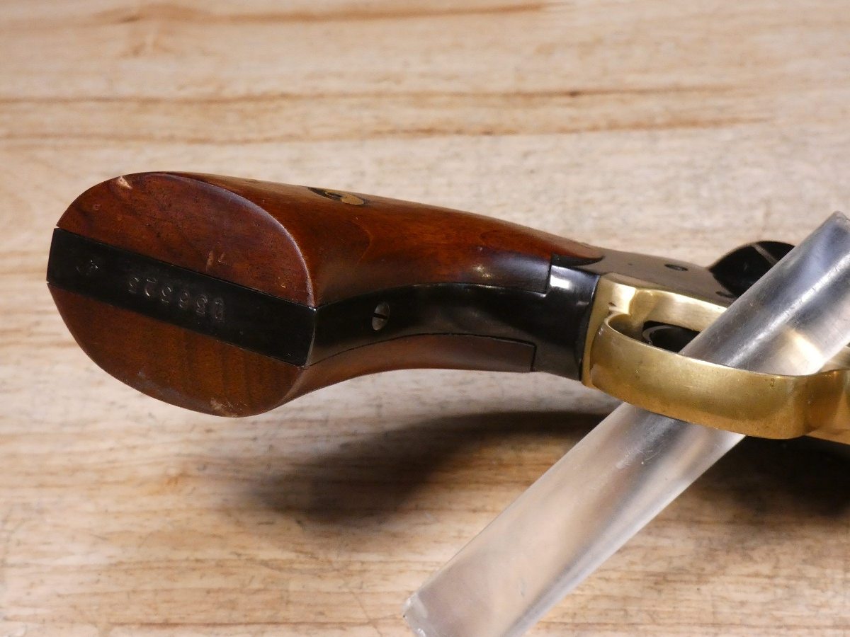 For sale is a Pietta 1858 single-action revolver in .44 black powder. Serial number – 136323. Mfg. 1992. PLEASE NOTE – The Loading lever latch is broken and will not close all the way as seen in the pictures. The Remington Model 1858 was one of the most powerful and rugged single-action revolvers of its day. Easily removable, replaceable cylinders made reloading extremely fast. The highly realistic Pietta Model 1858 New Army .44-Caliber Black Powder Revolver delivers that same power with its blued steel construction, octagonal barrel and walnut grips. V2-F3 Barrel Length: 8 Bore condition: Good Year Manufactured: 1992