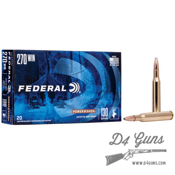 Federal Power-Shok .270 Win – 150gr – Soft Point Round Nose – 20 Rounds Per Box- MFG PART #270B – UPC: 029465084363. Power-Shok is Federal's proven ammunition line with low costs in mind. Proven, simple soft point designs are inexpensive, accurate, and effective.