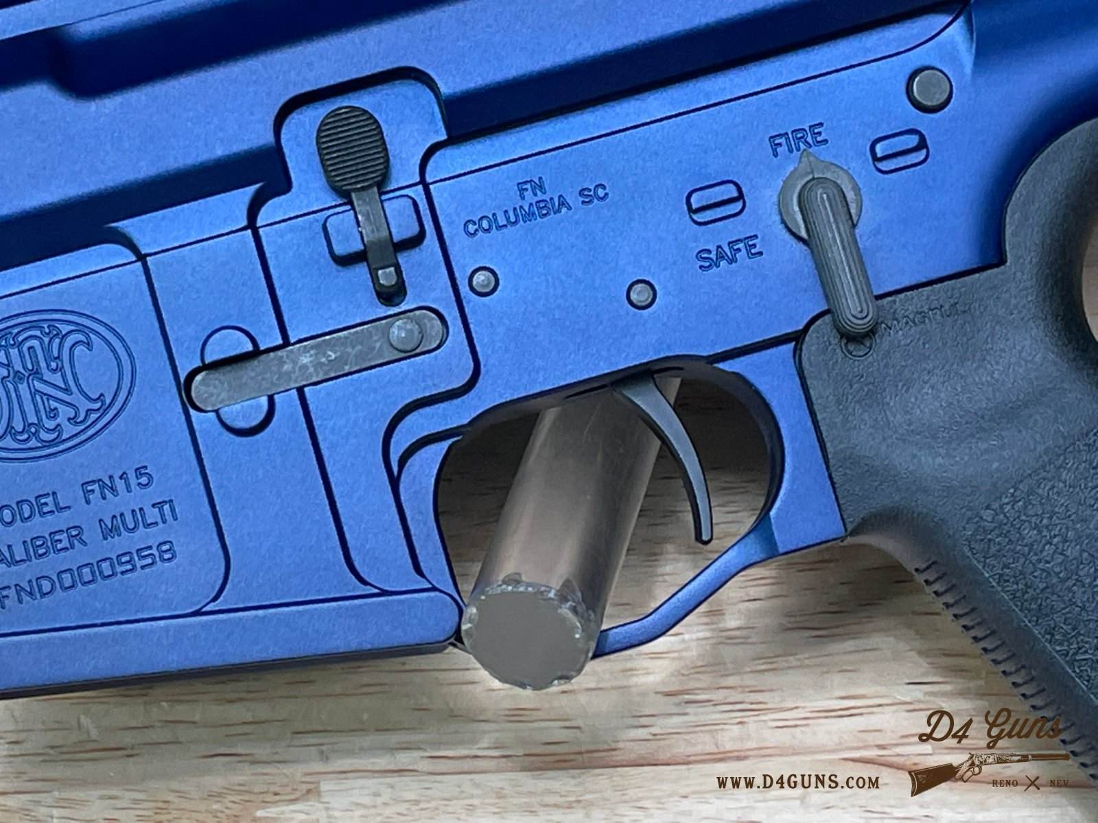 For sale is a FN FN-15 semi-automatic rifle in 5.56. Serial number-FND000958. This rifle is in great condition and comes with the original case, and (1) magazine. The combination of battle-proven durability and competition-tested performance has given rise to the FN 15 Competition. The near custom-built rifle, tested on the firing lines of the 2015 3-Gun Nation Finals, features an 18-inch alloy-steel, cold hammer-forged and chrome-lined match grade barrel with SureFire ProComp-556 muzzle break make for a very stable and flat-shooting rifle. The Mega Arms 16-inch rail system with M-LOK, Magpul MOE furniture and Timney Competition single-stage trigger provide the added real estate and quick-breaking trigger for more precise and accurate shooting. For the ultimate competition AR, look no further than the FN 15 Competition. V1-K1 Barrel Length: 20 Bore condition: Good