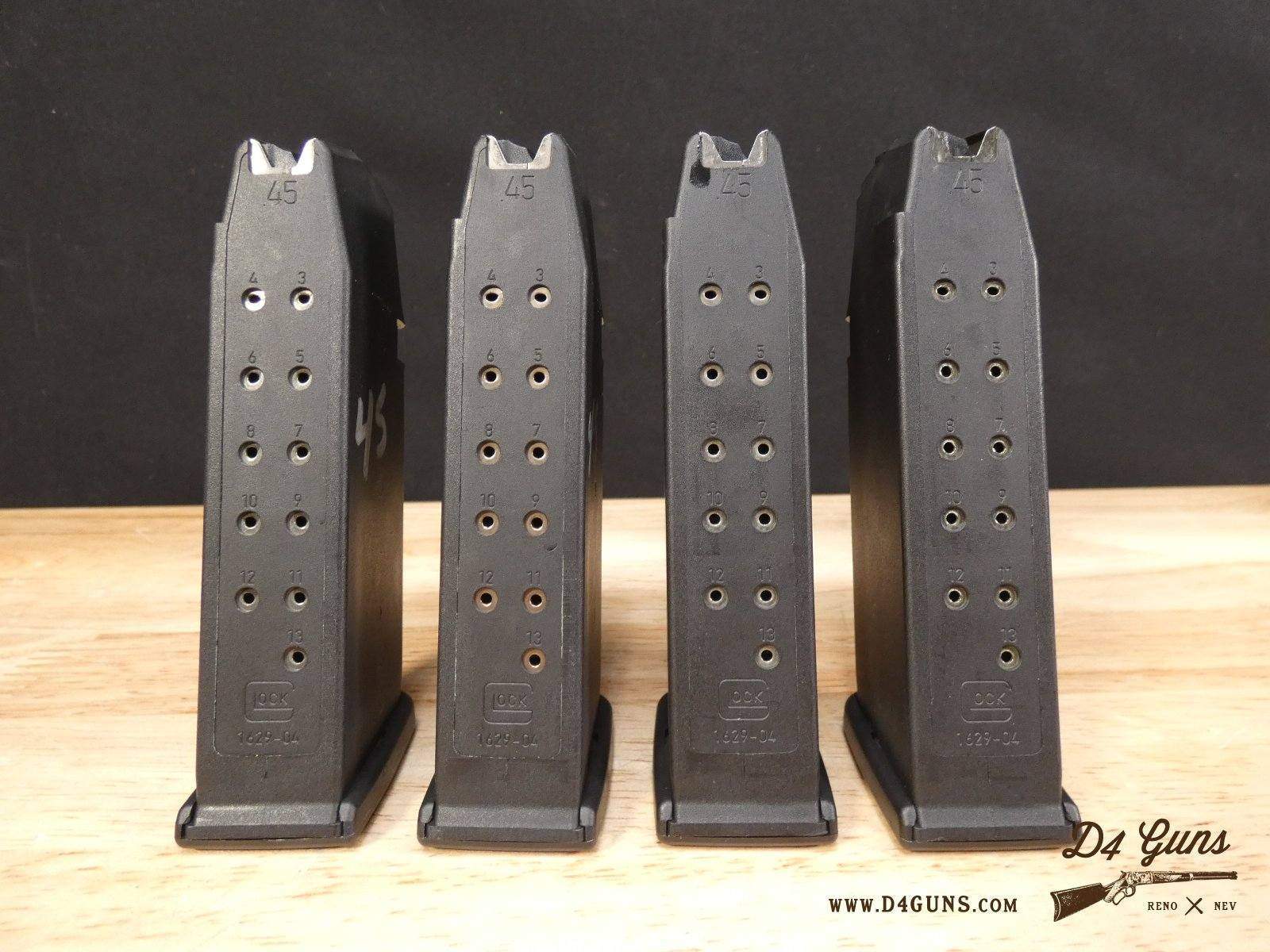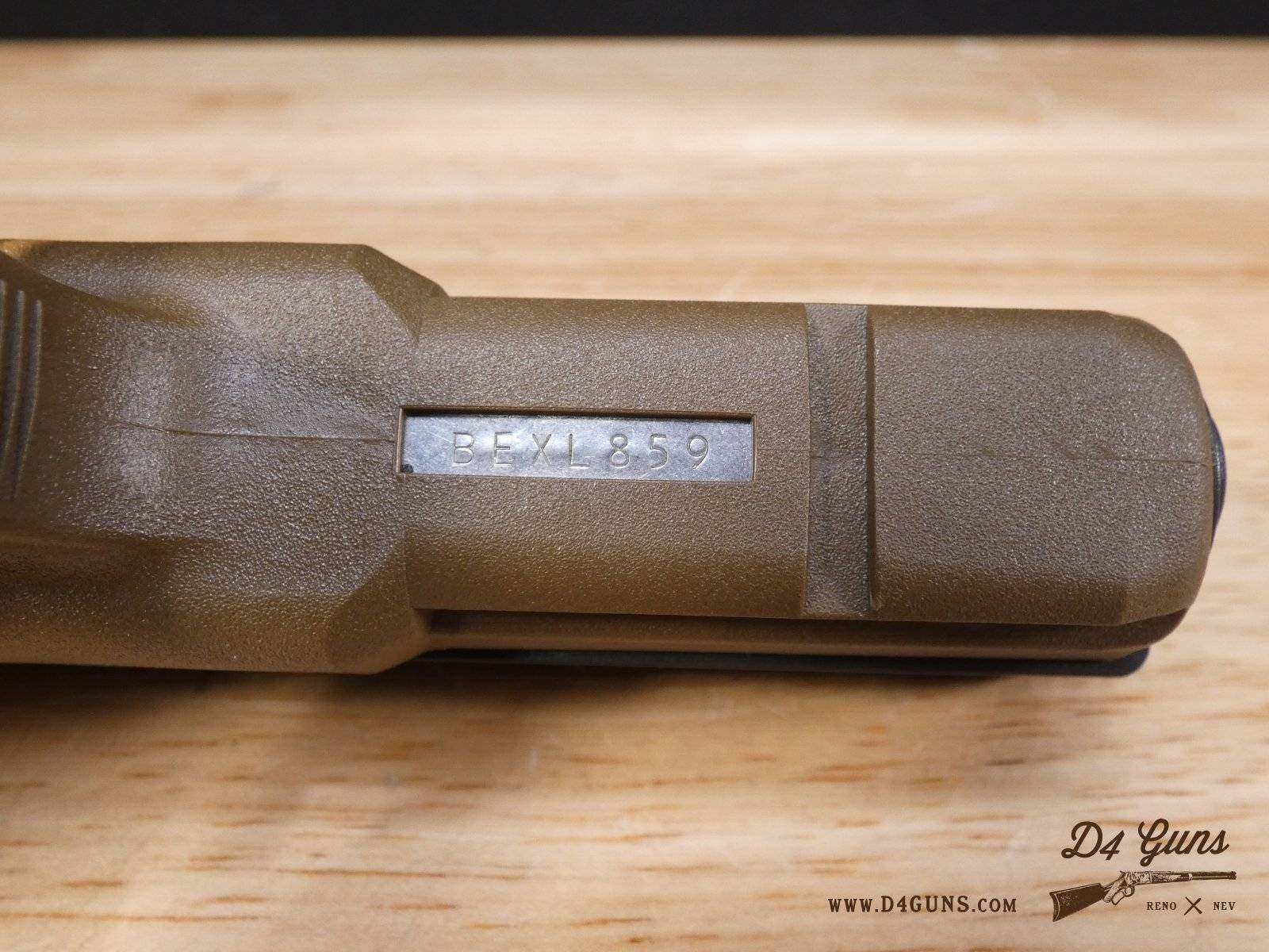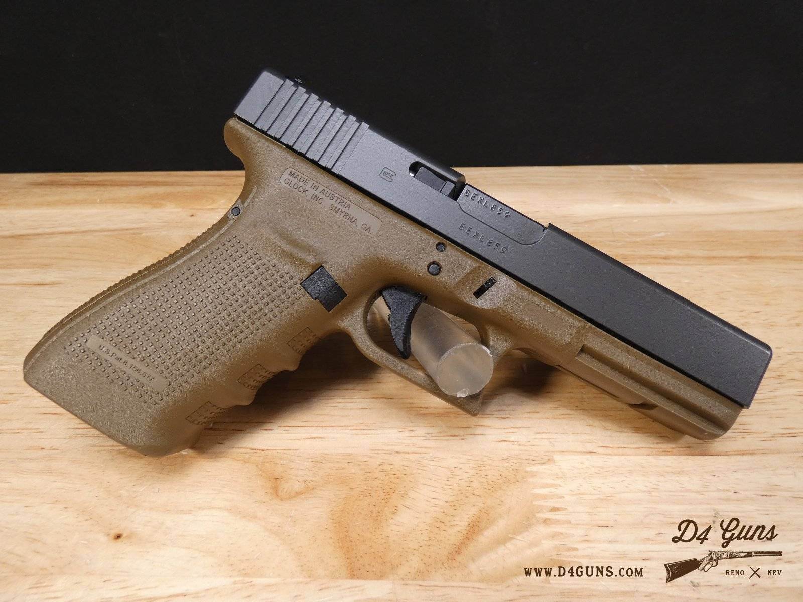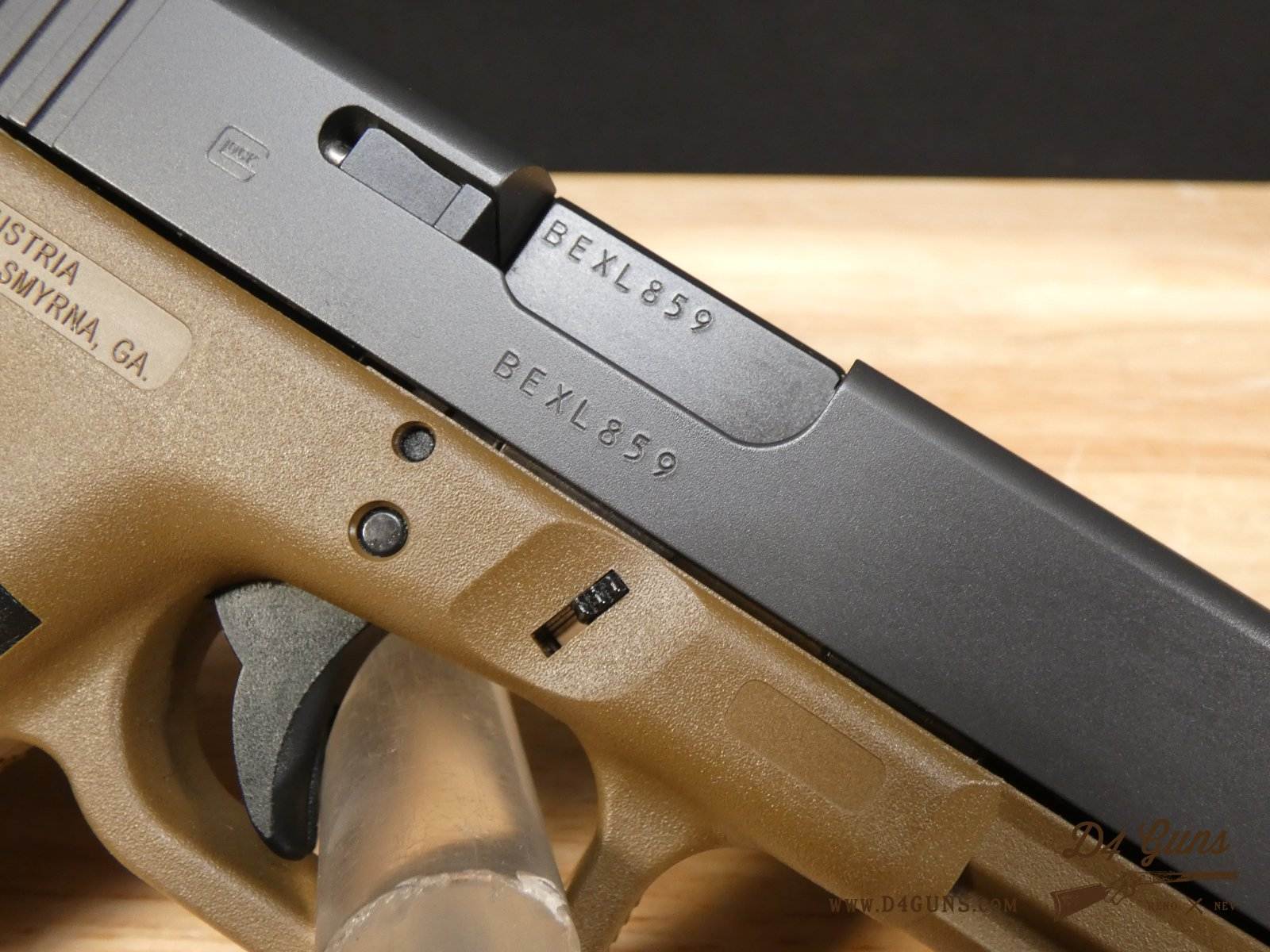 For sale is a Glock 21 Gen 4 semi automatic pistol in .45 ACP. Serial number- BEXL859. This G21 is in excellent condition and features a flat dark earth finish. Comes with four 13 round magazines and the original hardcase. Glock pistols incorporate a number of features intended to enhance reliability in adverse conditions, such as utilizing advanced metal coatings, slide guides instead of true frame rails, and an unusual cocking mechanism wherein the trigger is partially responsible for cocking the striker. For maintenance, the pistol disassembles into five main groups: the barrel, slide, frame, magazine, and recoil-spring assembly. Add this classic pistol to your collection and feel the power of owning a Glock 21, bid before time runs out. V2-E1 Barrel Length: 4.5 Bore condition: Excellent