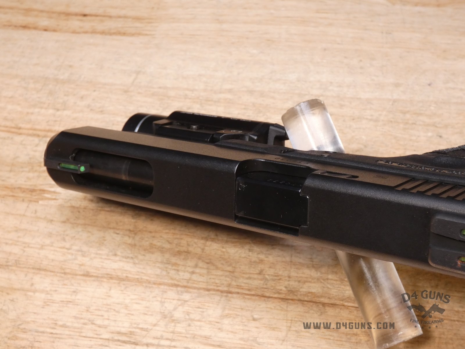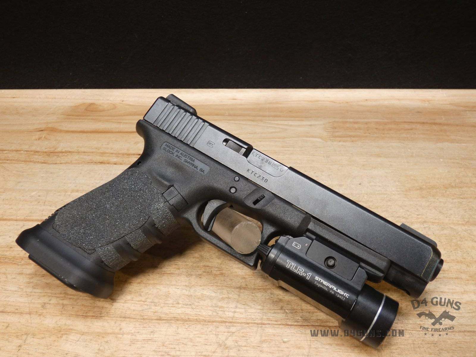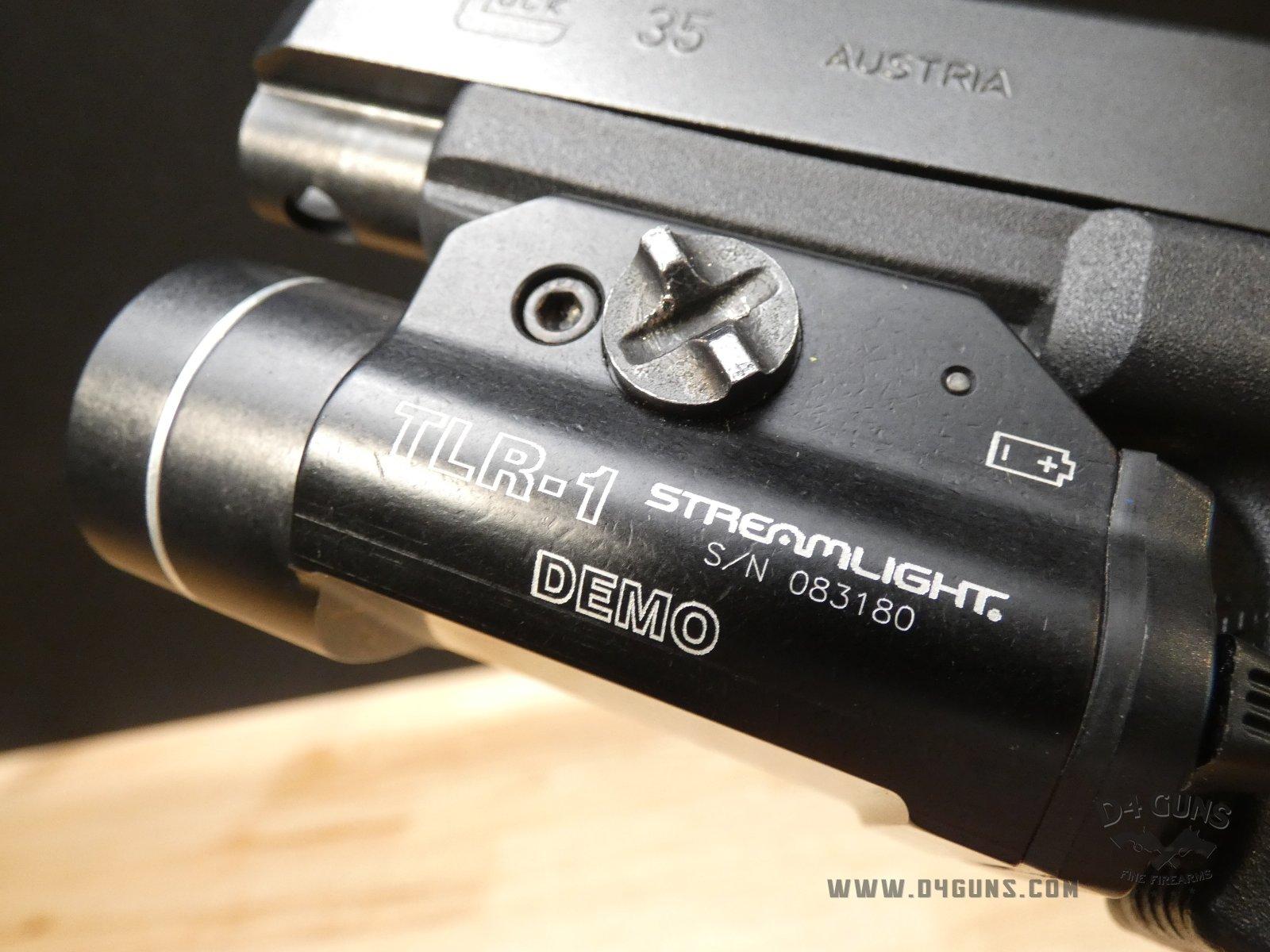 Up for grabs is a Glock 35 Gen3 semi-automatic pistol in .40 S&W. Serial number – KTC230. This pistol is in great condition and comes with a magazine, and a Streamlight TLR-1 flashlight. Please Note: The light is marked DEMO and is very dull. We would assume it just needs new batteries. With its extended barrel and extra long line of sight, the GLOCK 35 allows accurate hit patterns even during rapid firing. This has made the GLOCK 35 a widespread model among members of the practical shooting community. The G35 dominates the Limited Class of competitive shooting sports worldwide. V2-C1 Barrel Length: 5.25 Bore condition: Good