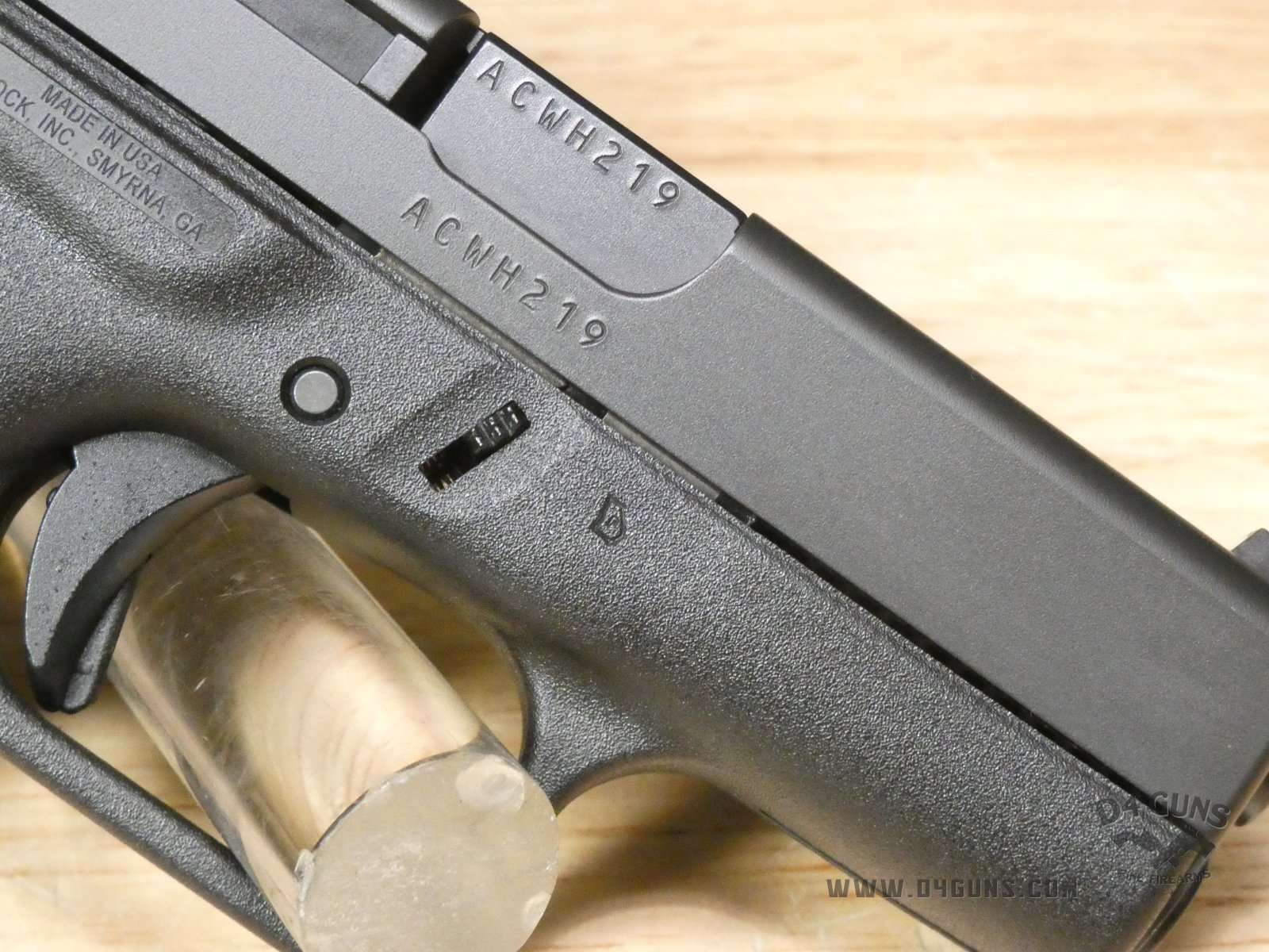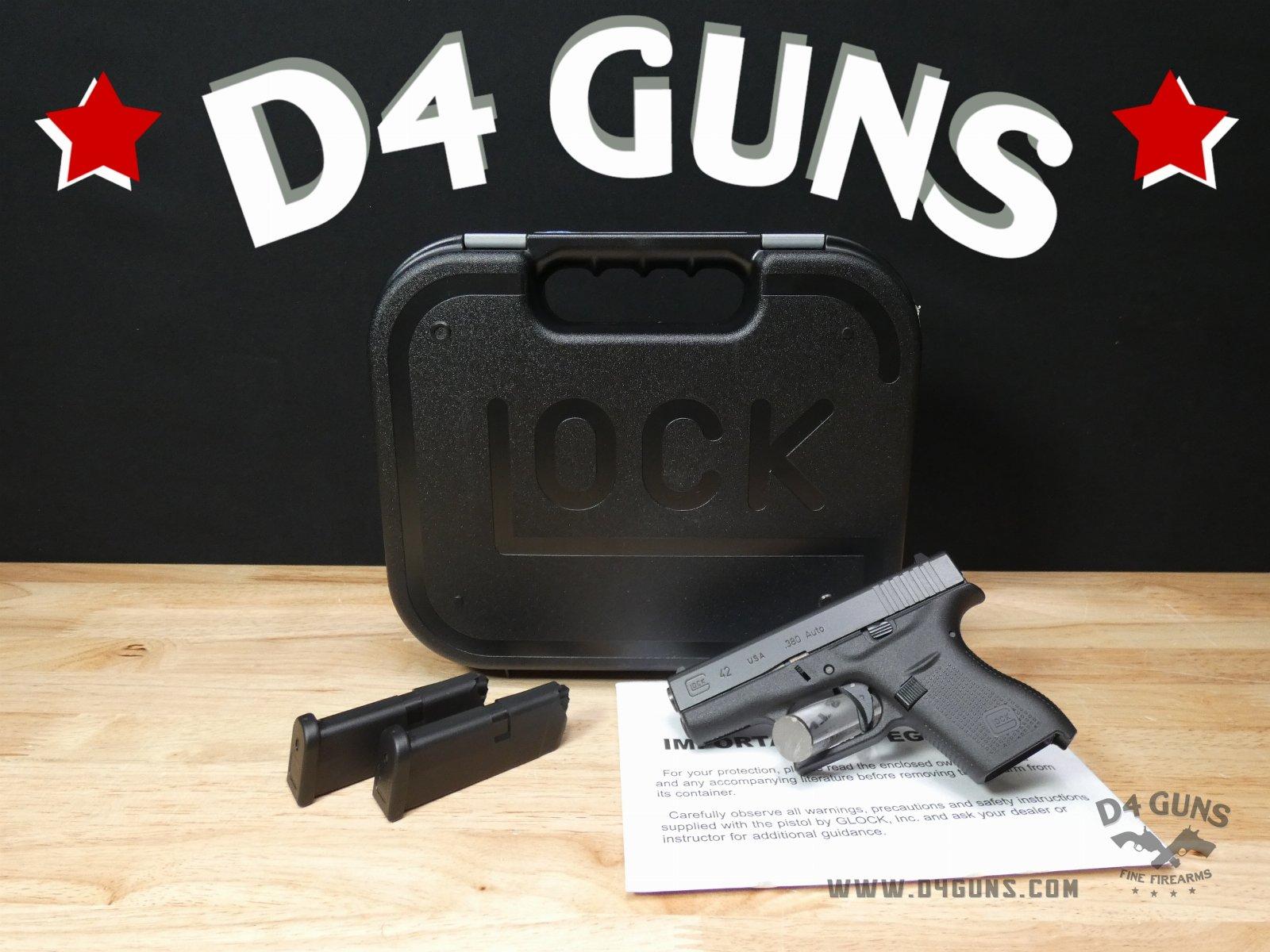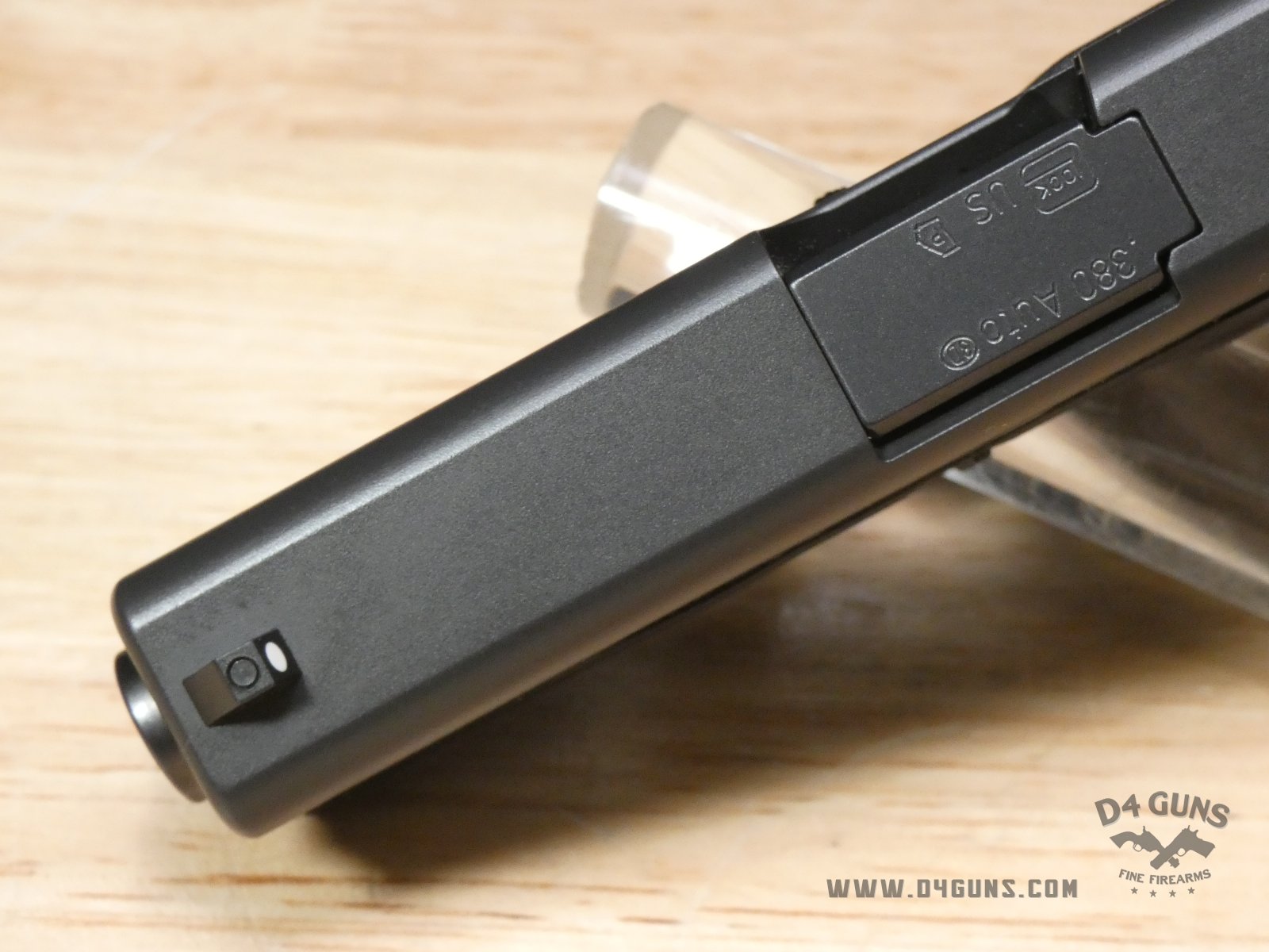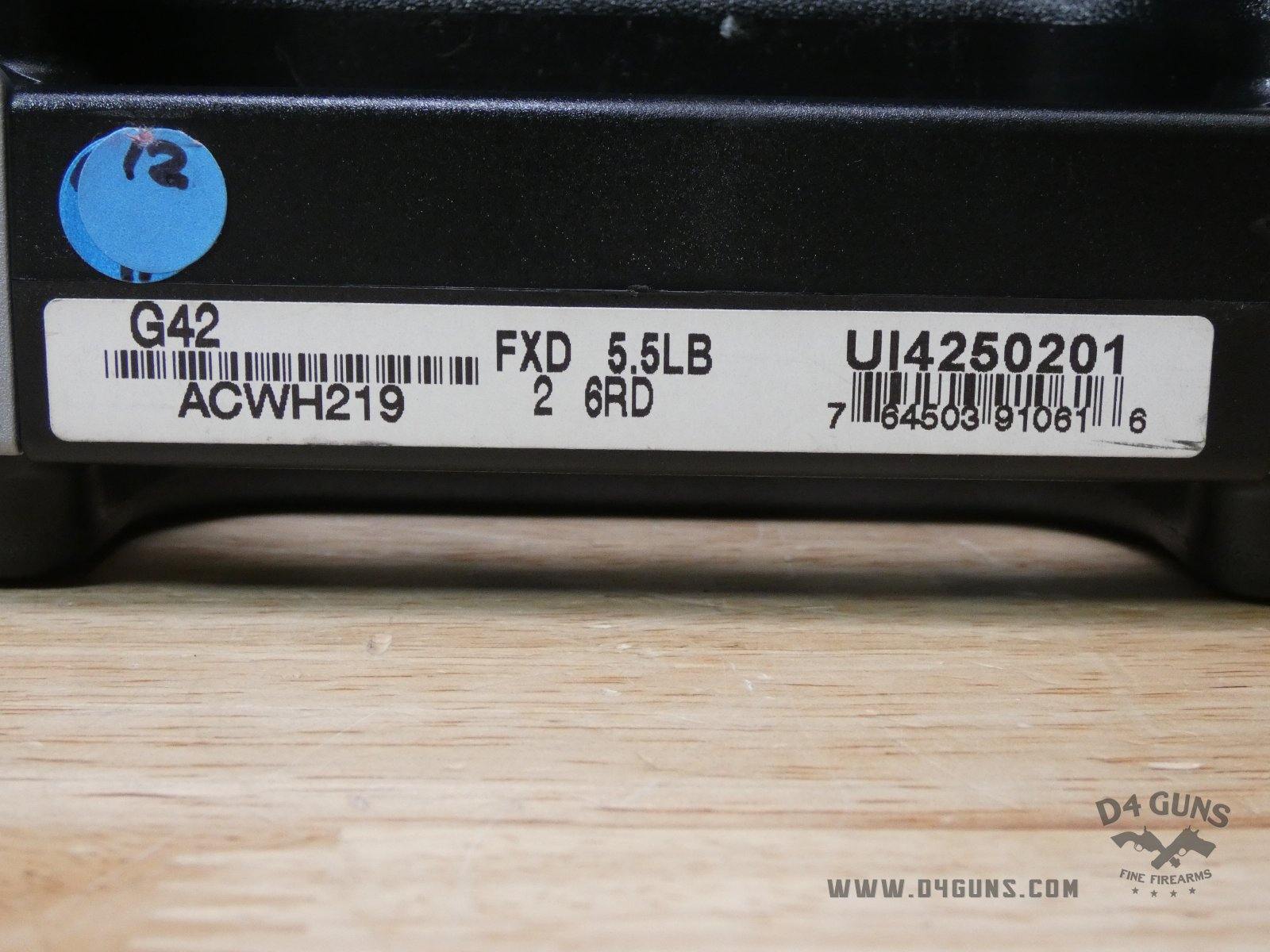 Ready for a new home is a Glock 42 semi-automatic pistol in 380 ACP. Serial number-ACWH219. This pistol is in great condition and comes with the case, paperwork, and 2 magazines. Built-in the U.S. and released in 2014, the G42 is Glock’s smallest pistol to date. This striker-fired, subcompact pistol is truly the "baby" of all Glocks. With an empty weight of under 14 ounces and ultra-compact frame size, the G42 is truly a unique carry option. Own your G42 today before this pistol is gone. V2-D3 Barrel Length: 3.25 Bore condition: Excellent
