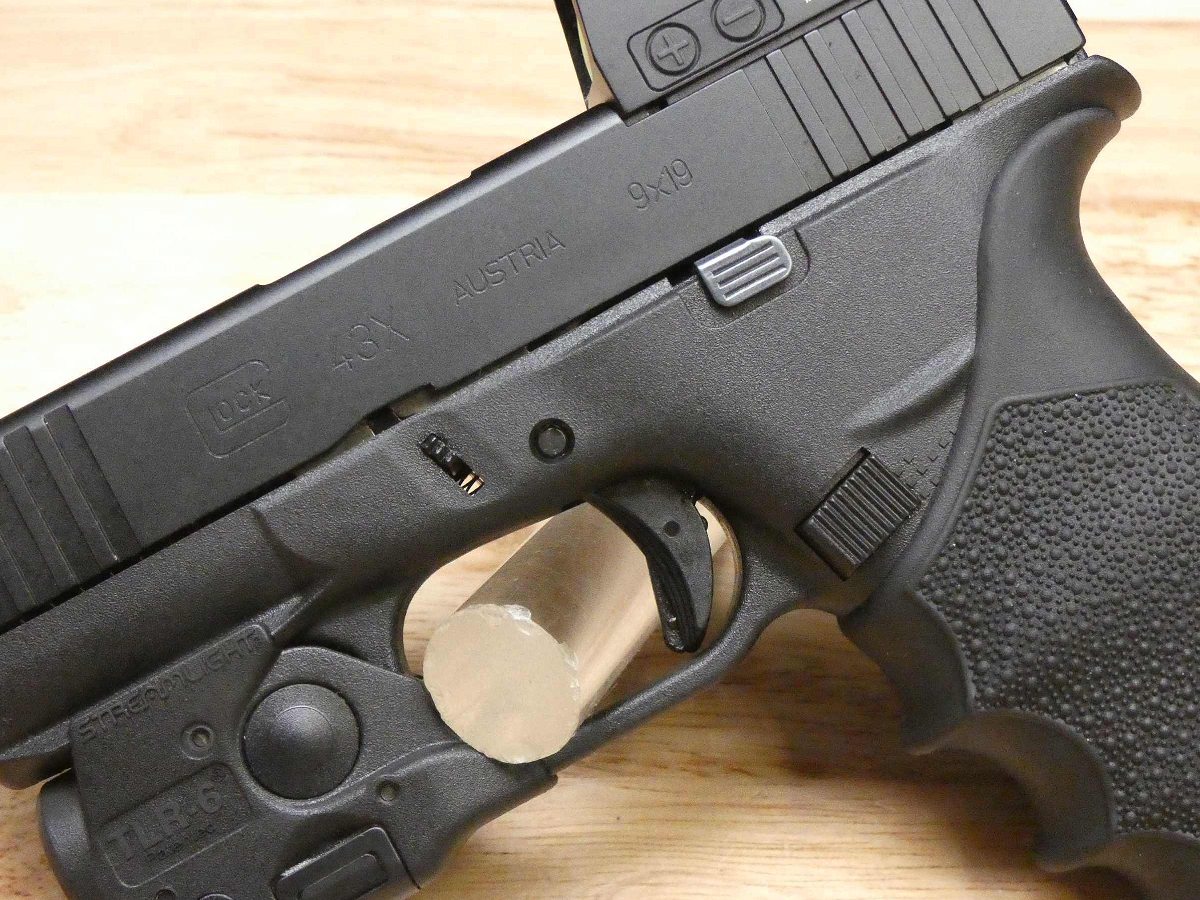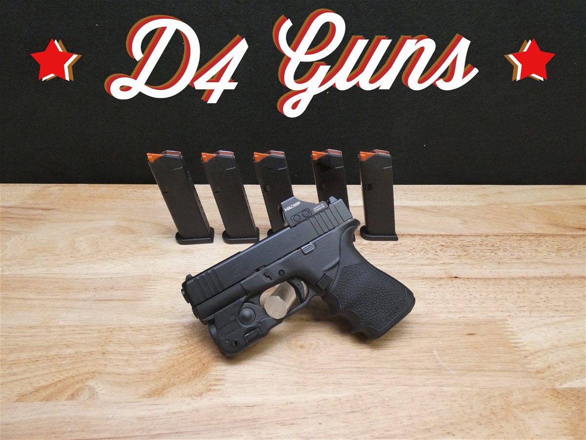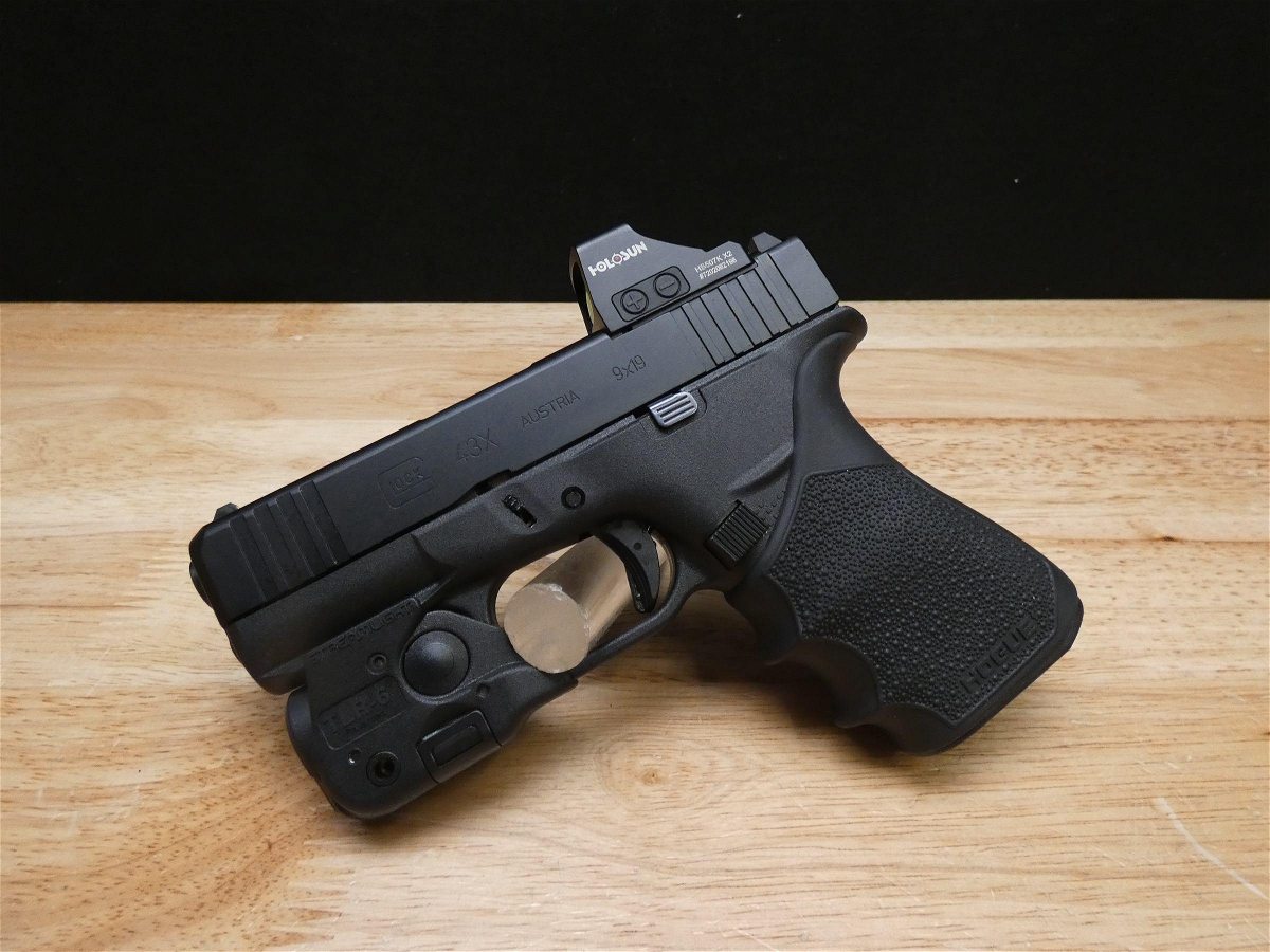 For sale is a Glock 43X MOS semi automatic pistol in 9mm. Serial number- BTYF706. This G43X MOS is in good condition and comes with (5) 10 round magazines. This 43x features a Holosun HS507K X2 Reflex Sight, a Streamlight TLR-6 Tactical Pistol Laser and Light, and a Houge HandALL Beavertail Rubber Grip Sleeve. This pistol also features a laser-etch backplate with the US flag and the word "veteran" etched into it, and "We The People" on the bottom of the pistol grip. The G43X MOS has slide cuts designed for specific micro-optics, and incorporates elements of the Slimline series such as the short trigger distance, a frame with a built-in beavertail as seen on the G43 and the G42, a reversible magazine catch. This model has the incredibly accurate, match-grade GLOCK Marksman Barrel (GMB) of the Gen5 series as well as the tough nDLC finish on the slide. The G43X MOS also features precision-milled front serrations.
