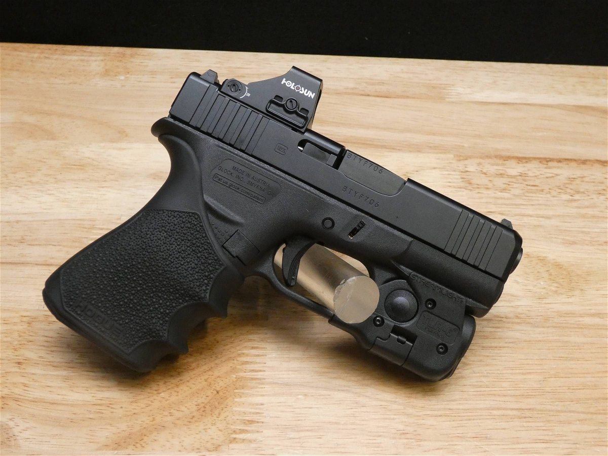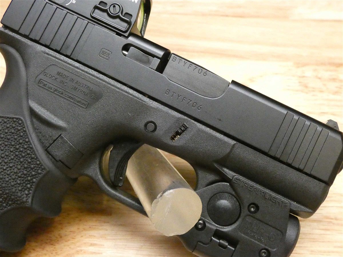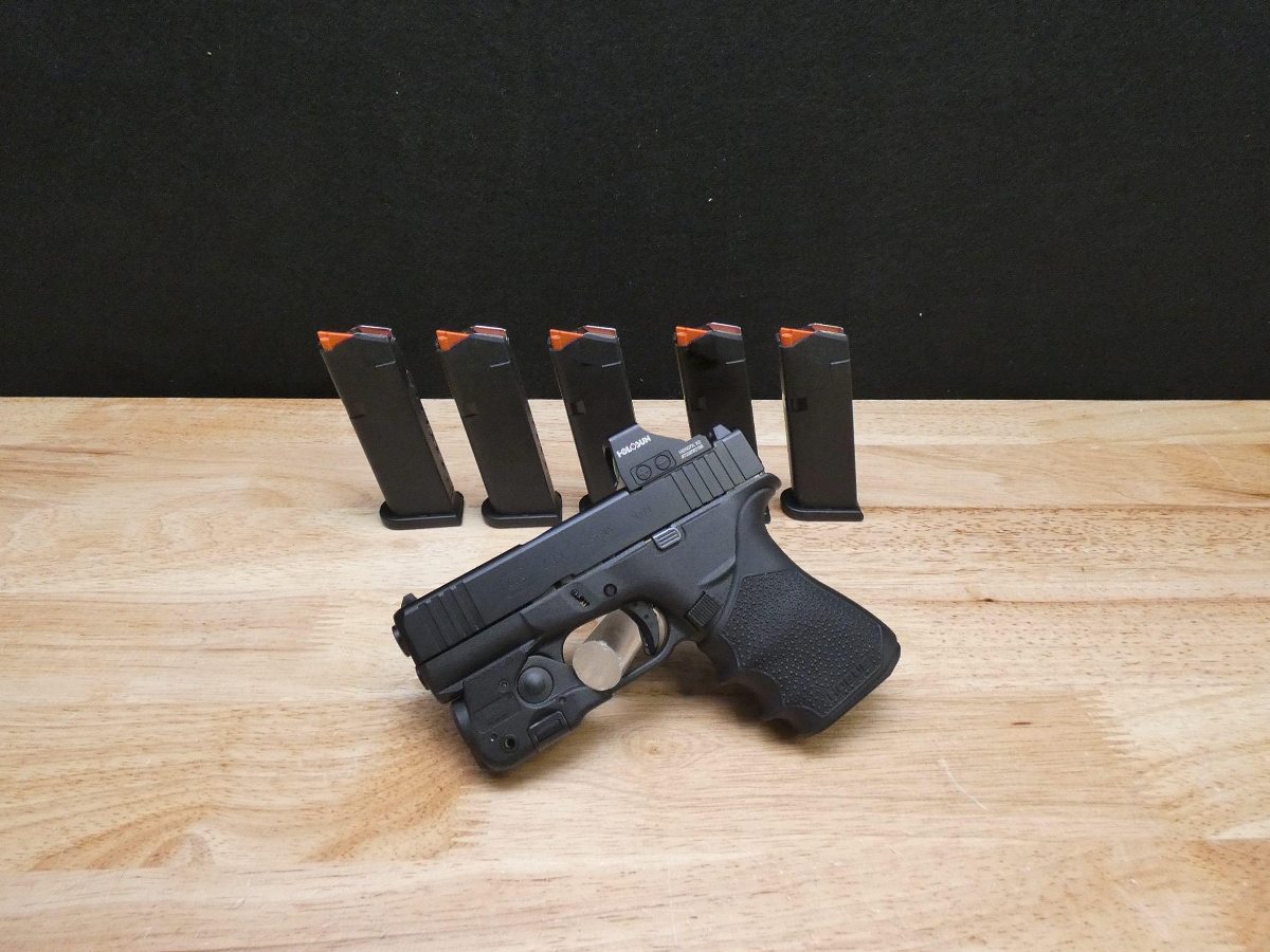 For sale is a Glock 43X MOS semi automatic pistol in 9mm. Serial number- BTYF706. This G43X MOS is in good condition and comes with (5) 10 round magazines. This 43x features a Holosun HS507K X2 Reflex Sight, a Streamlight TLR-6 Tactical Pistol Laser and Light, and a Houge HandALL Beavertail Rubber Grip Sleeve. This pistol also features a laser-etch backplate with the US flag and the word "veteran" etched into it, and "We The People" on the bottom of the pistol grip. The G43X MOS has slide cuts designed for specific micro-optics, and incorporates elements of the Slimline series such as the short trigger distance, a frame with a built-in beavertail as seen on the G43 and the G42, a reversible magazine catch. This model has the incredibly accurate, match-grade GLOCK Marksman Barrel (GMB) of the Gen5 series as well as the tough nDLC finish on the slide. The G43X MOS also features precision-milled front serrations.