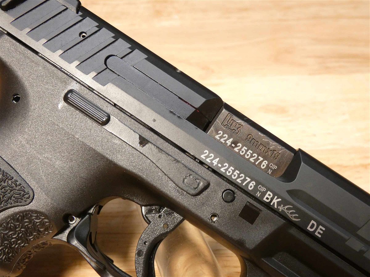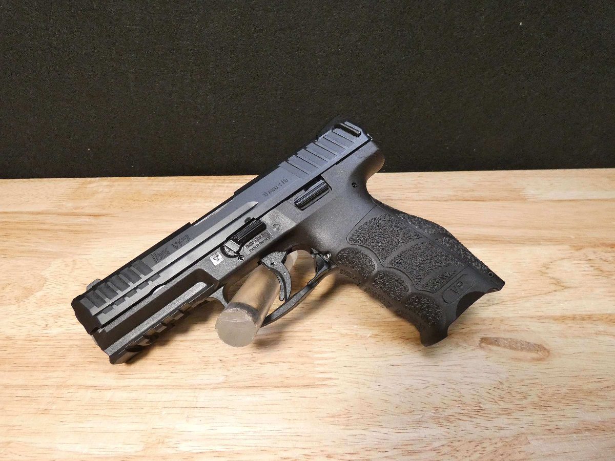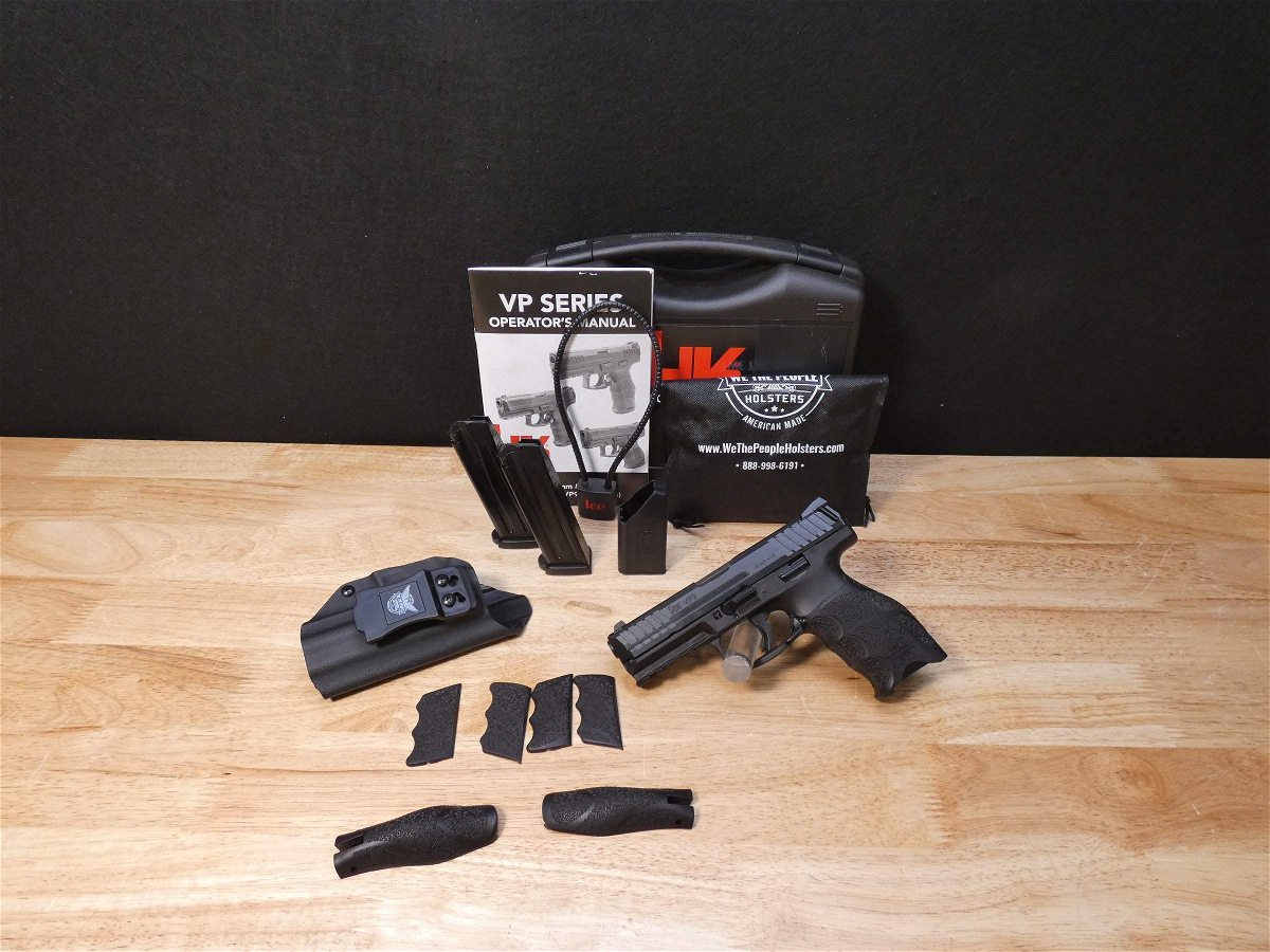 For sale is a Heckler & Koch VP9 semi automatic pistol in 9mm. Serial number- 224-255276. Manufactured in Germany in 2019. This VP9 is in excellent condition and comes with (2) 15 round magazines, original hardcase, manual, speed loader, cable lock, two extra backstraps, and two extra sets of grips. This pistol also comes with an We The People IWB kydex holster. Experience gained with the P30 hammer-fired pistol had a direct influence on the design of the VP9, but the VP9 breaks new ground with its integration of a unique striker firing system with an enhanced HK "light pull" trigger. The net result is a pistol with custom-fit ergonomics with trigger quality unequaled in any production striker fired handgun. **Please note that there are some scratches on the top of the chamber/ barrel (see photos for reference), but otherwise this VP9 is in excellent condition**