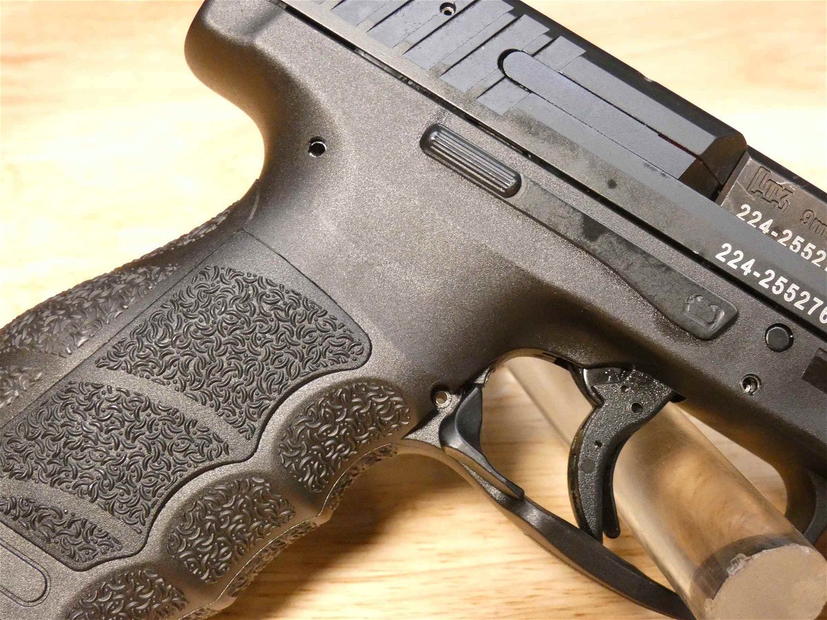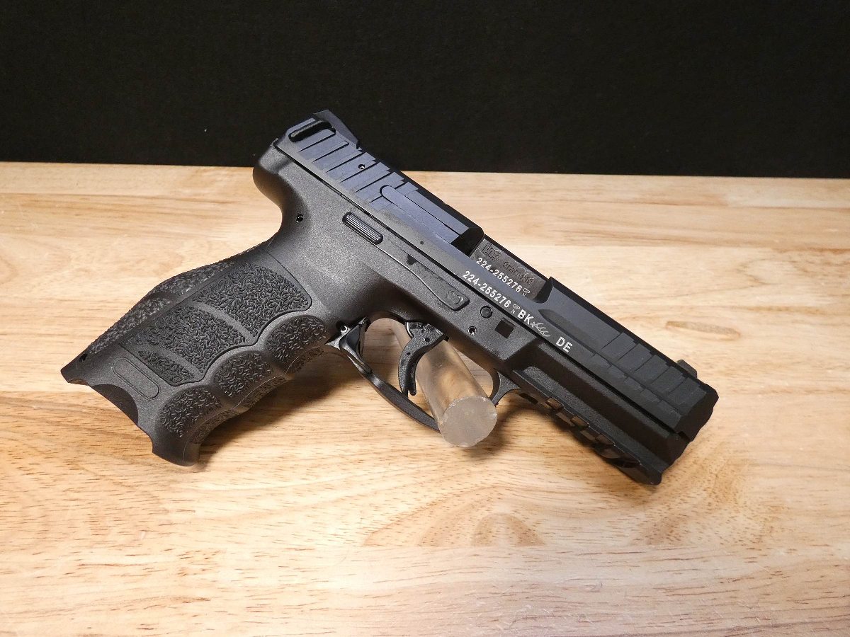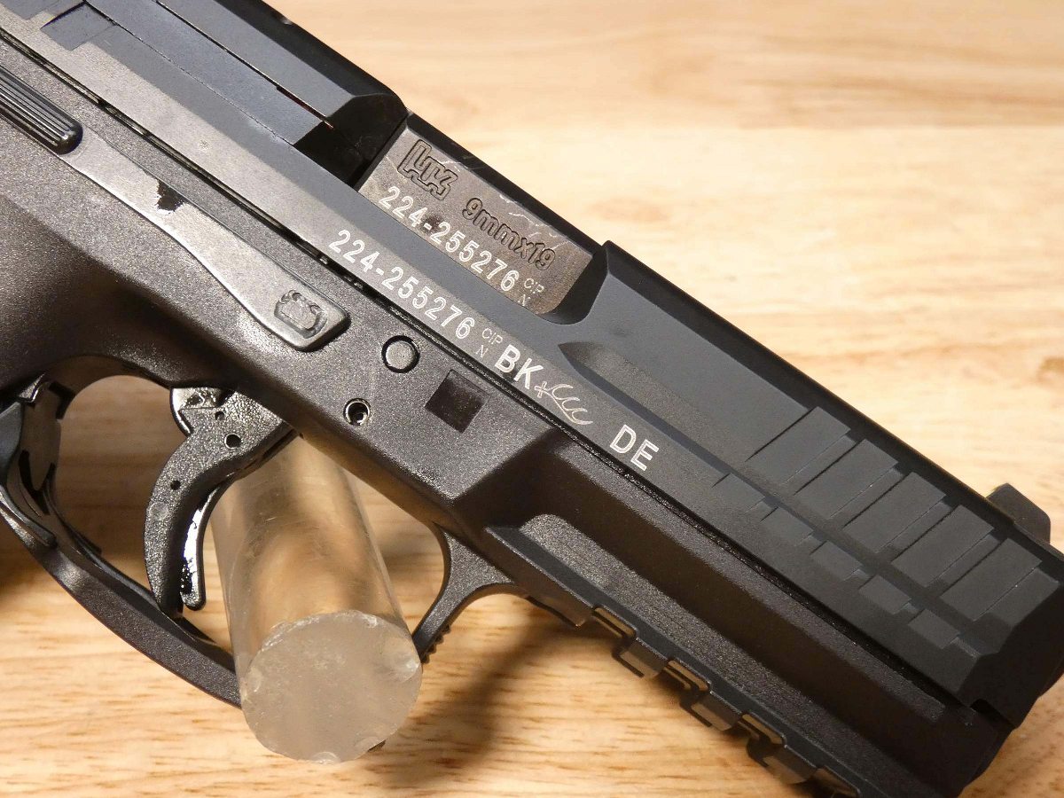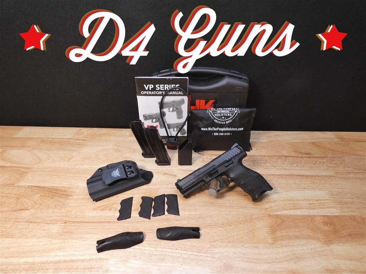 For sale is a Heckler & Koch VP9 semi automatic pistol in 9mm. Serial number- 224-255276. Manufactured in Germany in 2019. This VP9 is in excellent condition and comes with (2) 15 round magazines, original hardcase, manual, speed loader, cable lock, two extra backstraps, and two extra sets of grips. This pistol also comes with an We The People IWB kydex holster. Experience gained with the P30 hammer-fired pistol had a direct influence on the design of the VP9, but the VP9 breaks new ground with its integration of a unique striker firing system with an enhanced HK "light pull" trigger. The net result is a pistol with custom-fit ergonomics with trigger quality unequaled in any production striker fired handgun. **Please note that there are some scratches on the top of the chamber/ barrel (see photos for reference), but otherwise this VP9 is in excellent condition**