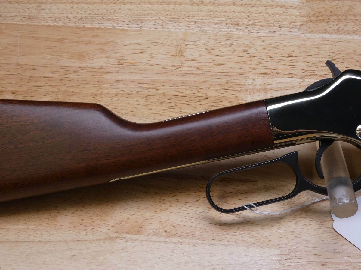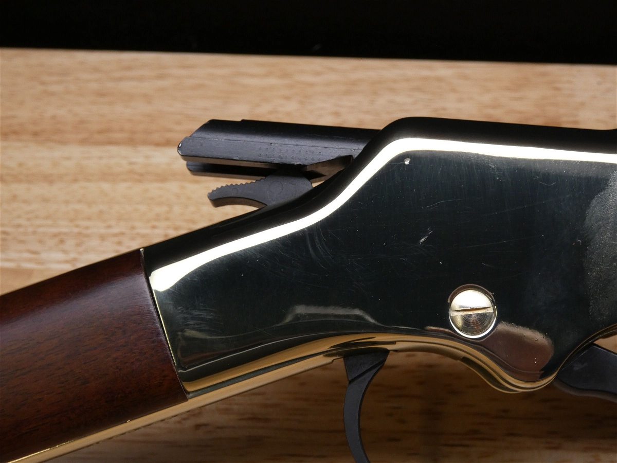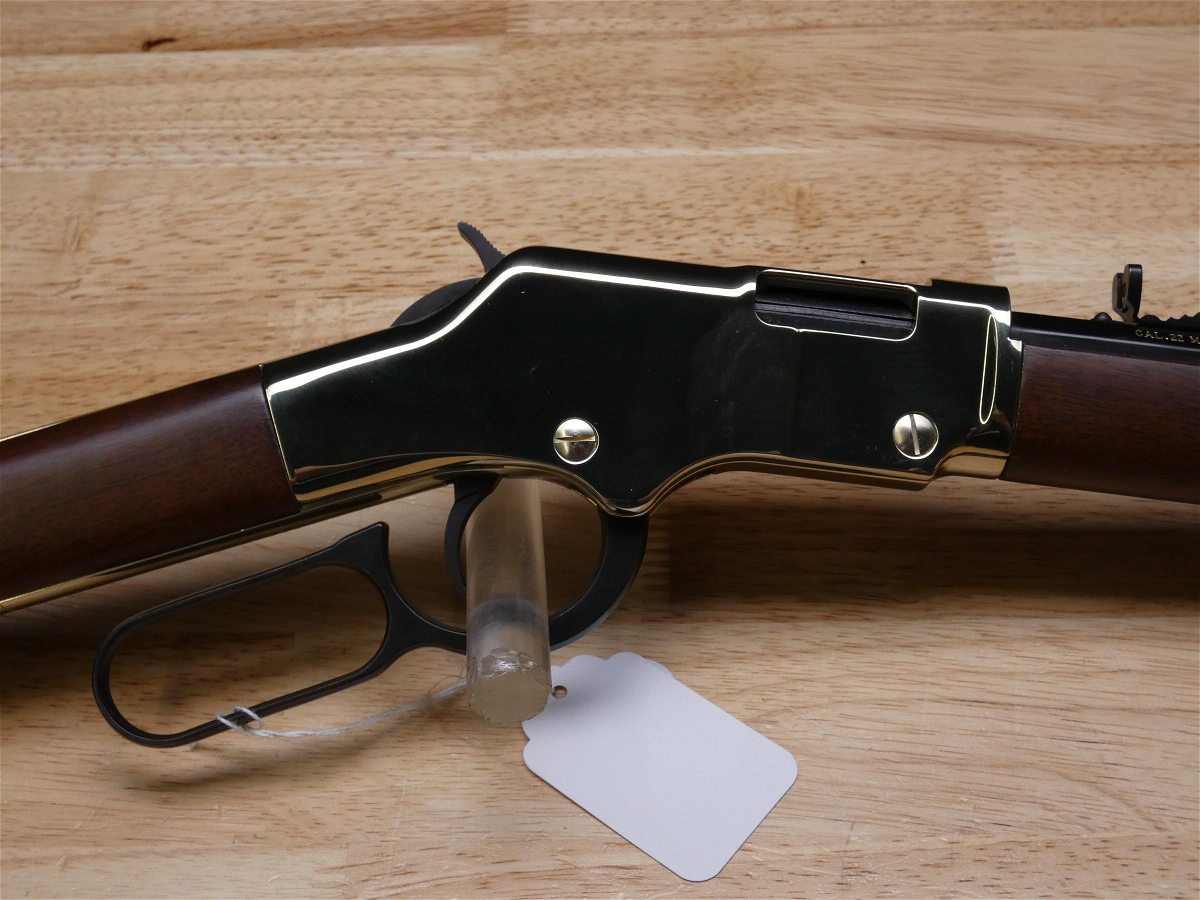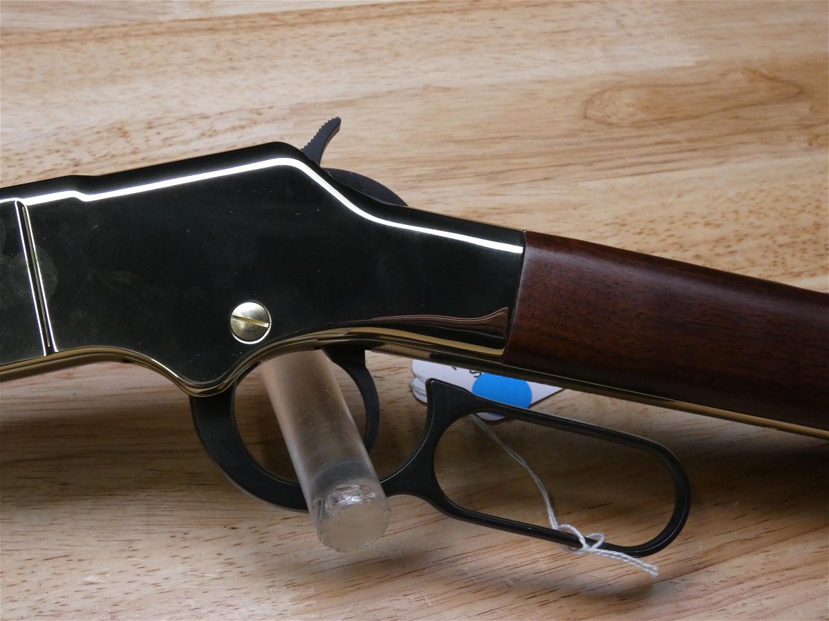 For sale is a Henry Model H004M Golden Boy lever action rifle in .22 WMR. Serial number- GB084595M. This Golden Boy is in good condition and comes with iron sights. The Henry Golden Boy is a masterpiece of fine-crafted gunsmithing. Any shooting enthusiast who closely examines one is immediately impressed with the excellent fit, finish and overall visually elegant design. The Golden Boy rifle’s awesome 20-inch blued octagonal barrel, American walnut stock, brass buttplate, and gleaming Brasslite receiver will transport you back to the wild and wooley days of America’s Old West. V2-A3 Barrel Length: 20 Bore condition: Good