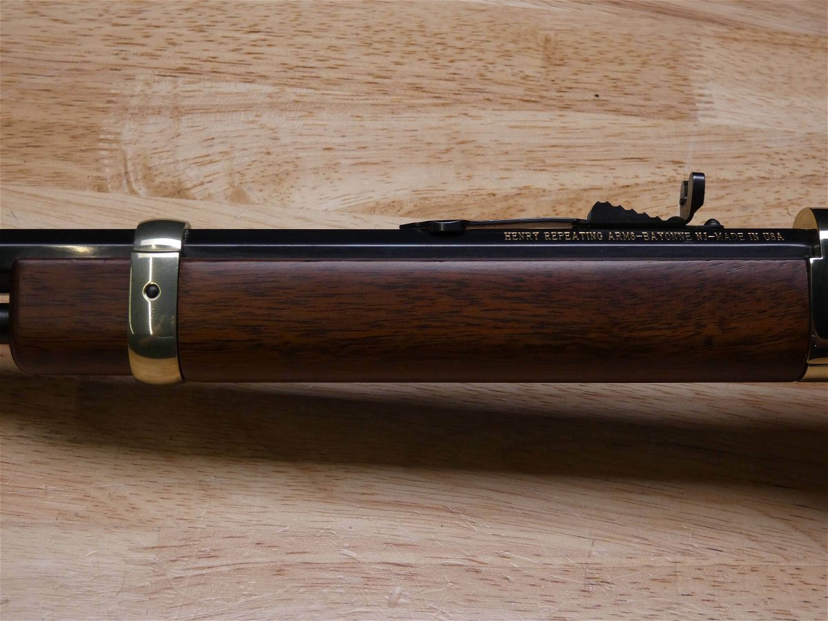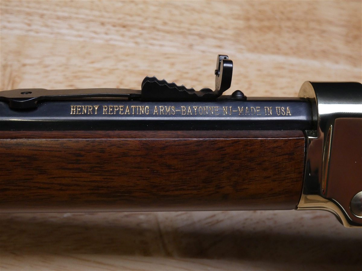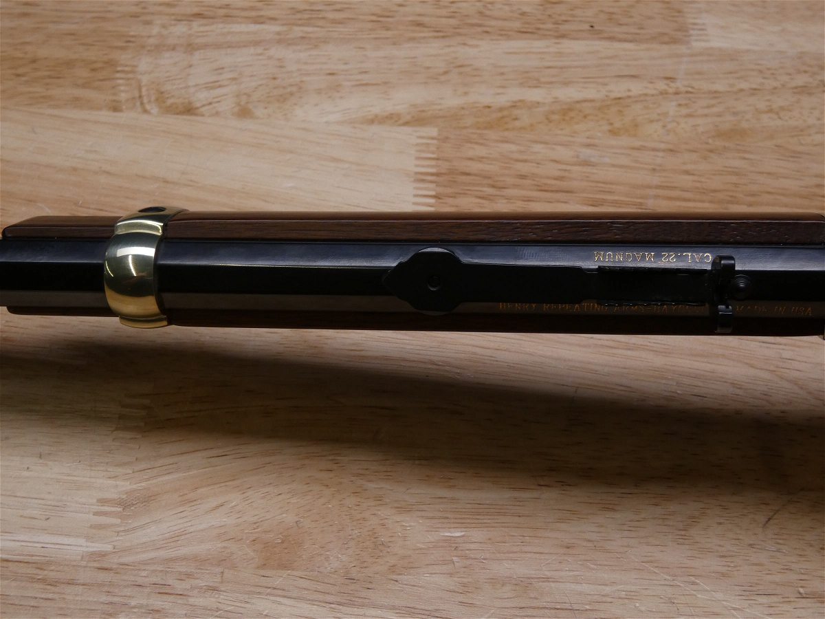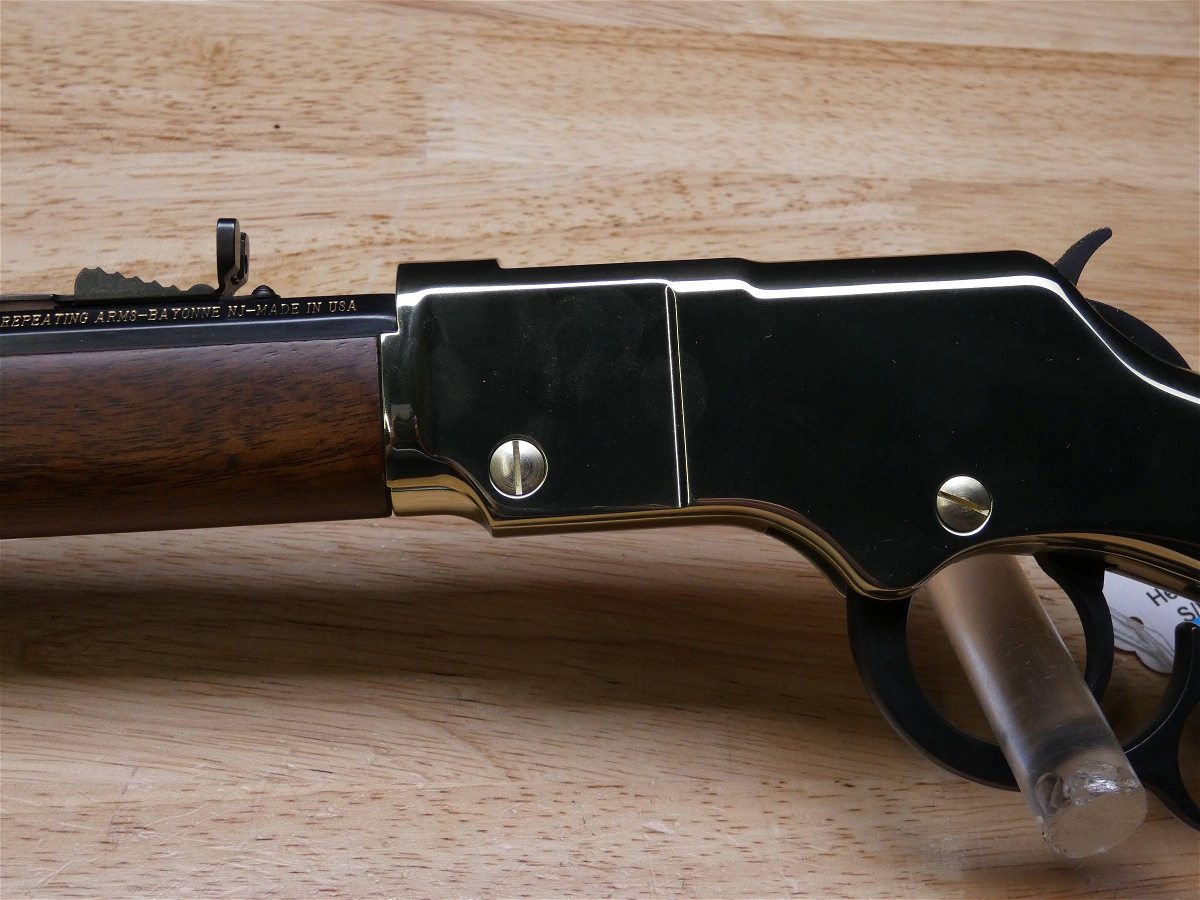 For sale is a Henry Model H004M Golden Boy lever action rifle in .22 WMR. Serial number- GB084595M. This Golden Boy is in good condition and comes with iron sights. The Henry Golden Boy is a masterpiece of fine-crafted gunsmithing. Any shooting enthusiast who closely examines one is immediately impressed with the excellent fit, finish and overall visually elegant design. The Golden Boy rifle’s awesome 20-inch blued octagonal barrel, American walnut stock, brass buttplate, and gleaming Brasslite receiver will transport you back to the wild and wooley days of America’s Old West. V2-A3 Barrel Length: 20 Bore condition: Good