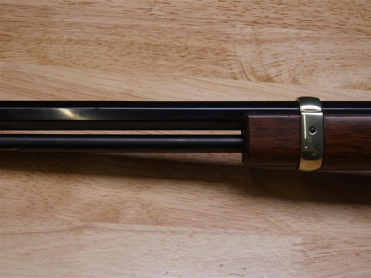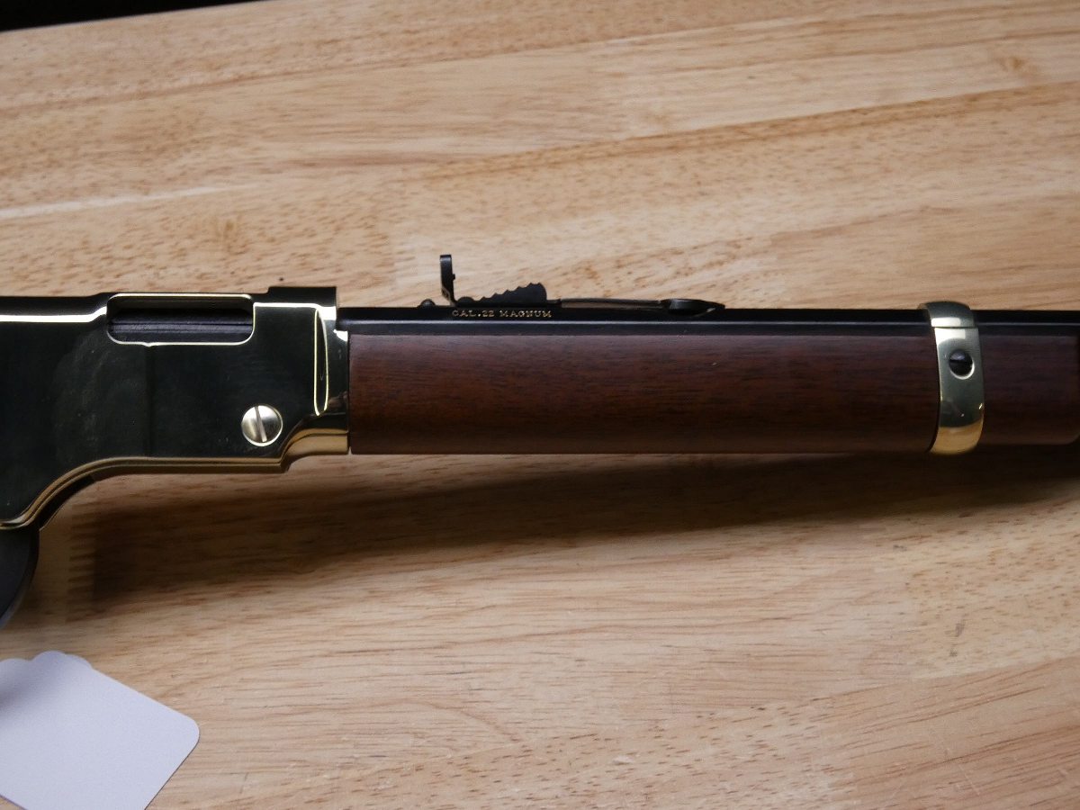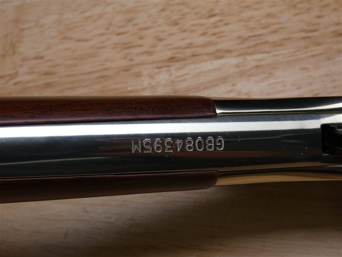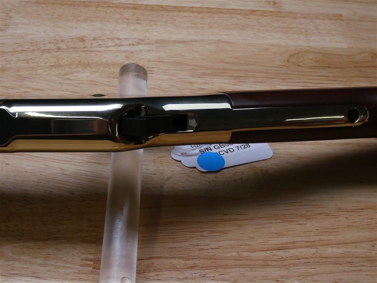 For sale is a Henry Model H004M Golden Boy lever action rifle in .22 WMR. Serial number- GB084595M. This Golden Boy is in good condition and comes with iron sights. The Henry Golden Boy is a masterpiece of fine-crafted gunsmithing. Any shooting enthusiast who closely examines one is immediately impressed with the excellent fit, finish and overall visually elegant design. The Golden Boy rifle’s awesome 20-inch blued octagonal barrel, American walnut stock, brass buttplate, and gleaming Brasslite receiver will transport you back to the wild and wooley days of America’s Old West. V2-A3 Barrel Length: 20 Bore condition: Good