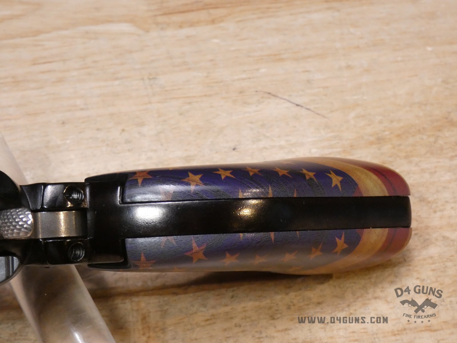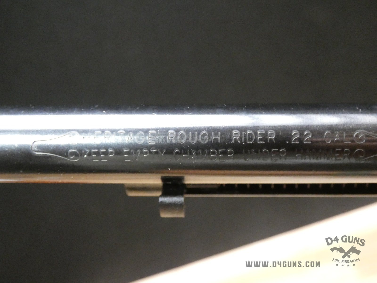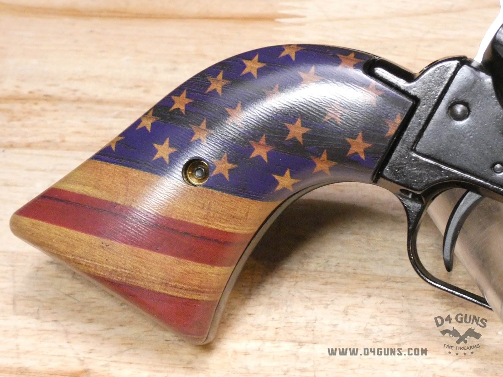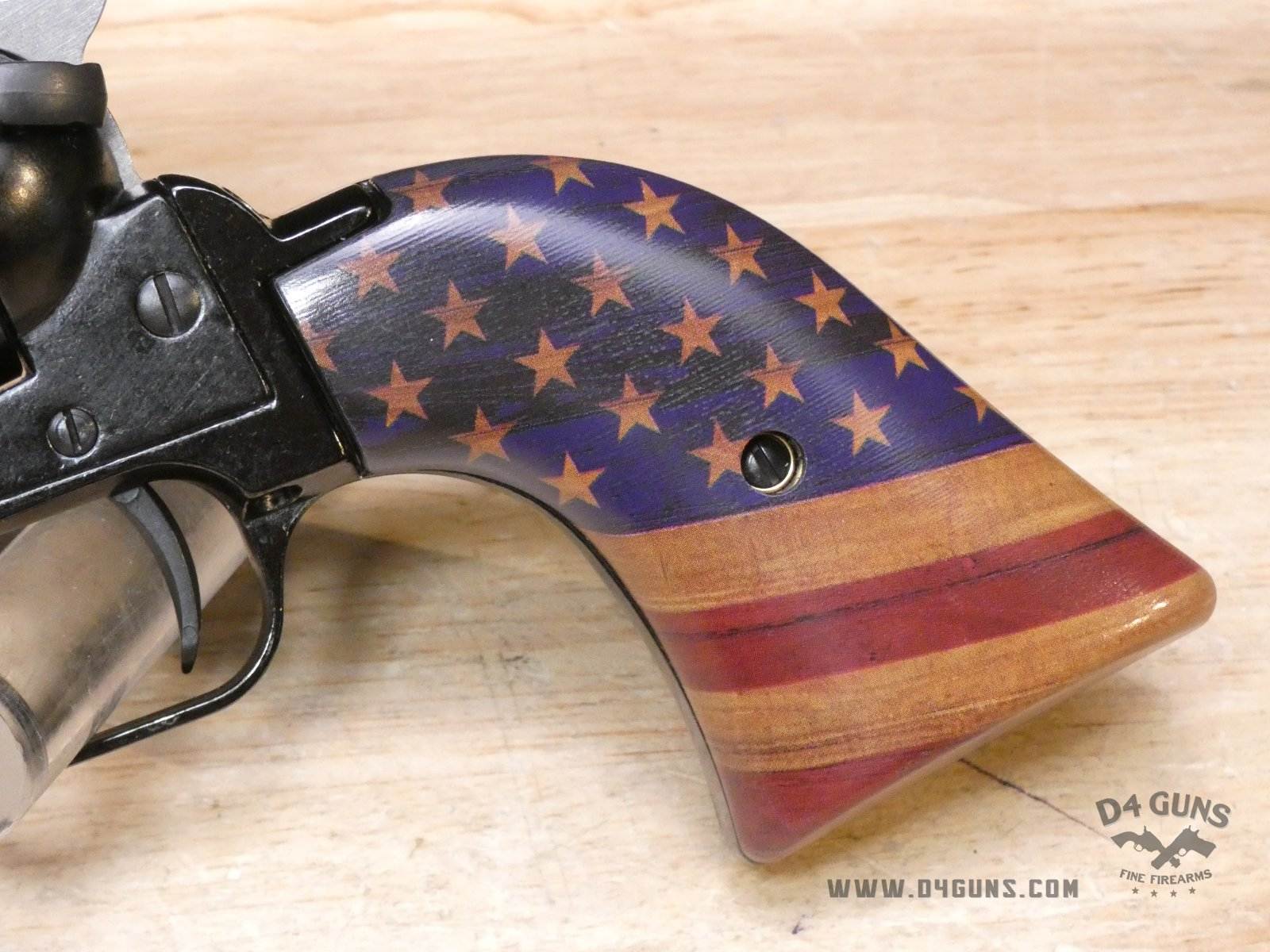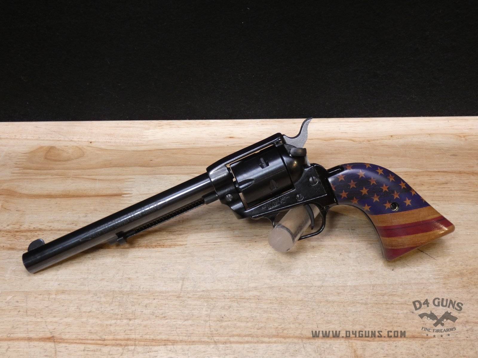 Up for grabs is a Heritage Rough Rider revolver in .22 LR . Serial number- Y72749. It includes the original box. USA American Flag Grips! Born of the traditions of the Old West, Heritage's Rough Rider Single-Action Rimfire Revolvers maintain much of the look and feel of the legendary Single-Action Army revolver in scaled-down versions. Cylinders are manufactured using precision machinery to assure accuracy and reliability. V2-F2 Barrel Length: 6.5 Bore condition: Excellent