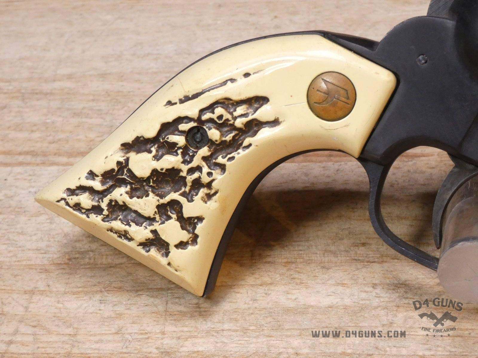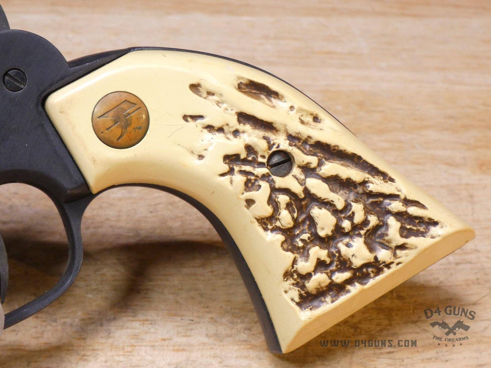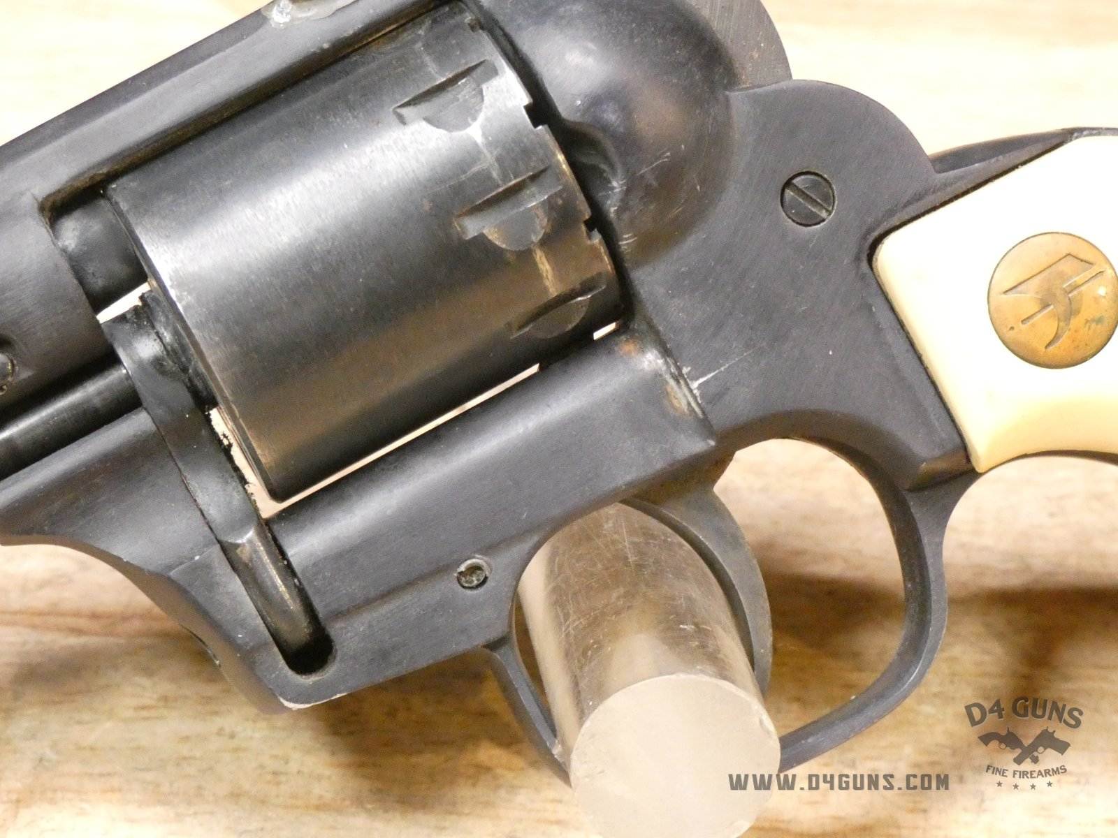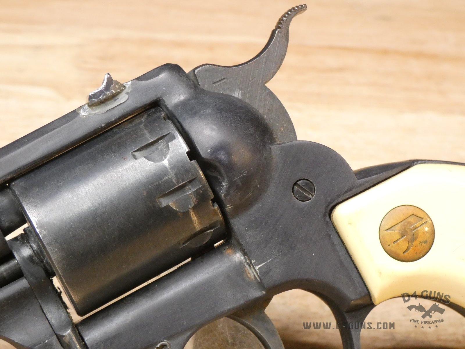 Up for grabs is a High Standard The Marshal revolver in .22 S,L,LR. Serial number – 2378388. The Marshall by High Standard (manufactured in 1971-1973). This revolver has a 9 shot cylinder for .22 S, L, or LR. It's SA or DA has a blued finish, aluminum frame, fixed sights, 5-1/2" barrel, and a square butt with stag style plastic grips. Please refer to the pictures as it appears the rear sight was welded/fixed into place. V2-J3 Barrel Length: 5.5 Bore condition: Good