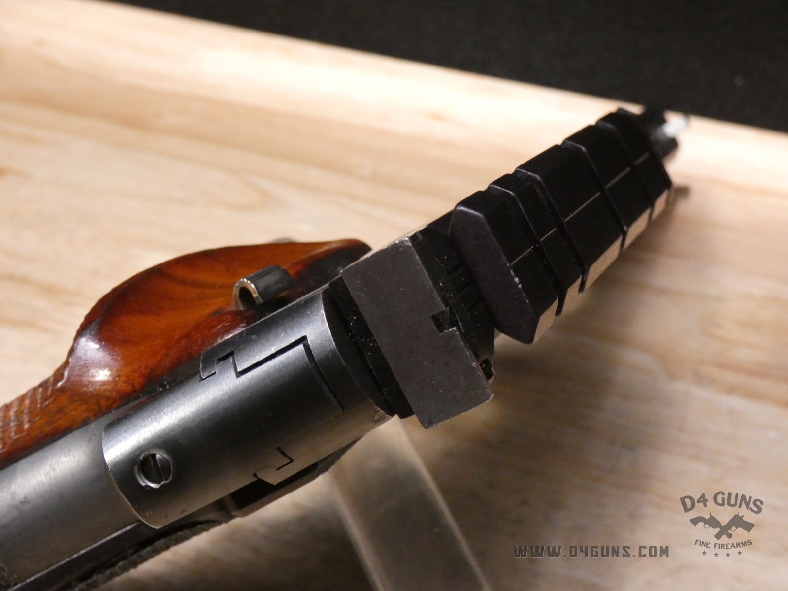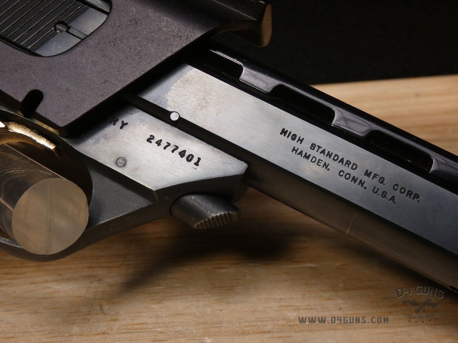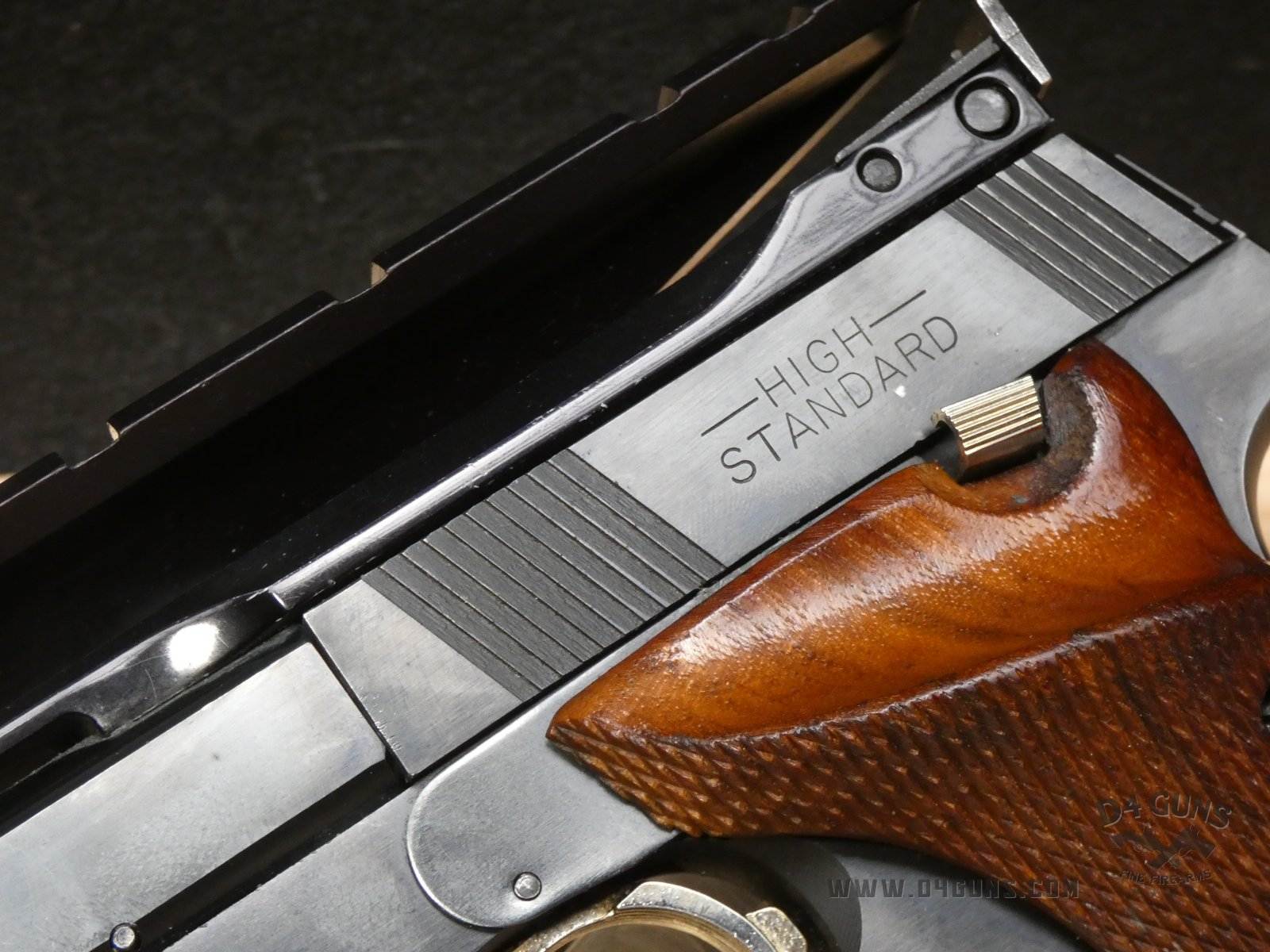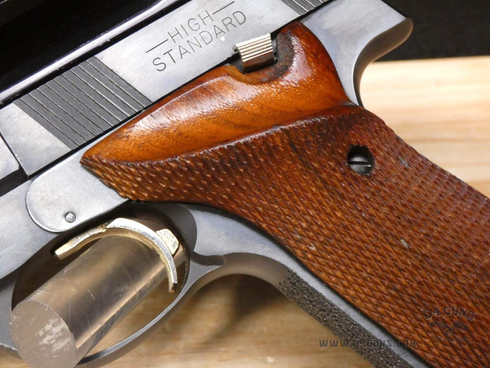 Up for grabs is a High Standard The Victor semi-automatic pistol in .22LR. Serial number-2477401. This pistol is in great condition and comes with (2) magazines. Features an optic rail. Left side of the grip is original and the right is replaced with a stippled flat grip, gold trigger, adjustable rear sight and vented rib slide. V2-H2 Barrel Length: 4.5 Bore condition: Good
