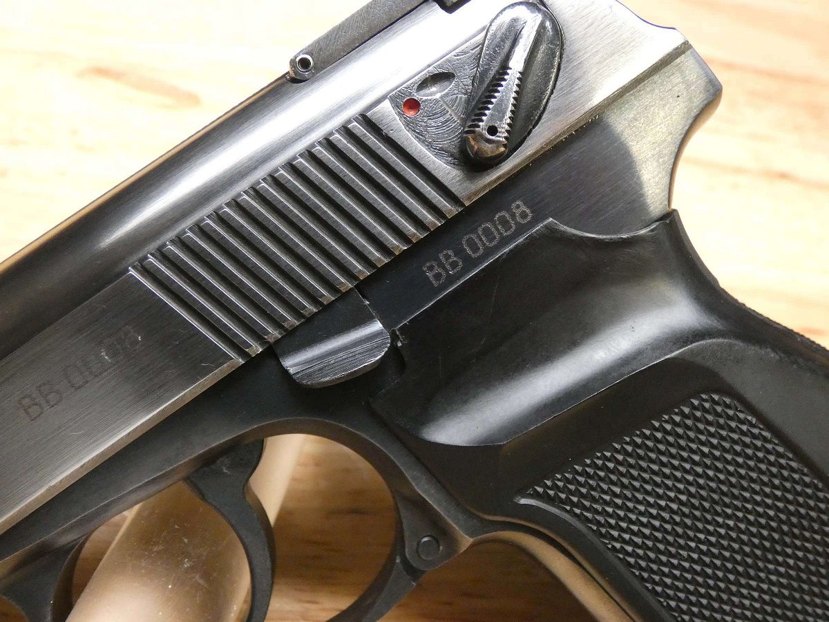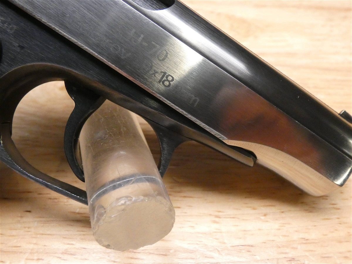For sale is an Imez IJ-70 semi-automatic pistol 9x18mm Makarov. Serial number-BB0008. This pistol is in great condition and comes with two magazines. The IJ-70 pistol has a fixed barrel, a plus for accuracy. It is a conventional double-action/single-action semi-automatic pistol with a hammer drop safety. This pistol would be an excellent addition to a COMBLOC Cold War-era pistol collection or as an adventurous concealed carry option. V2-J3 Barrel Length: 3.6 Bore condition: Excellent