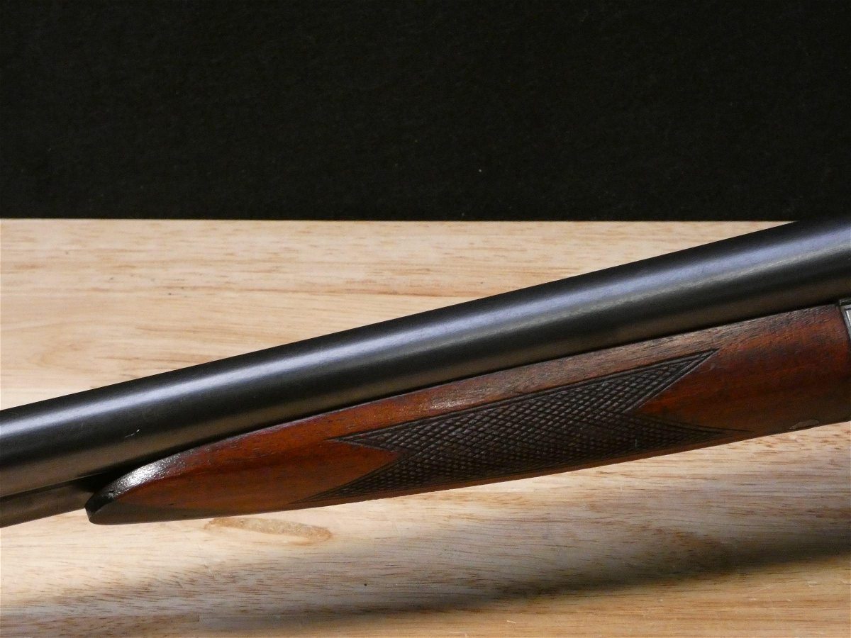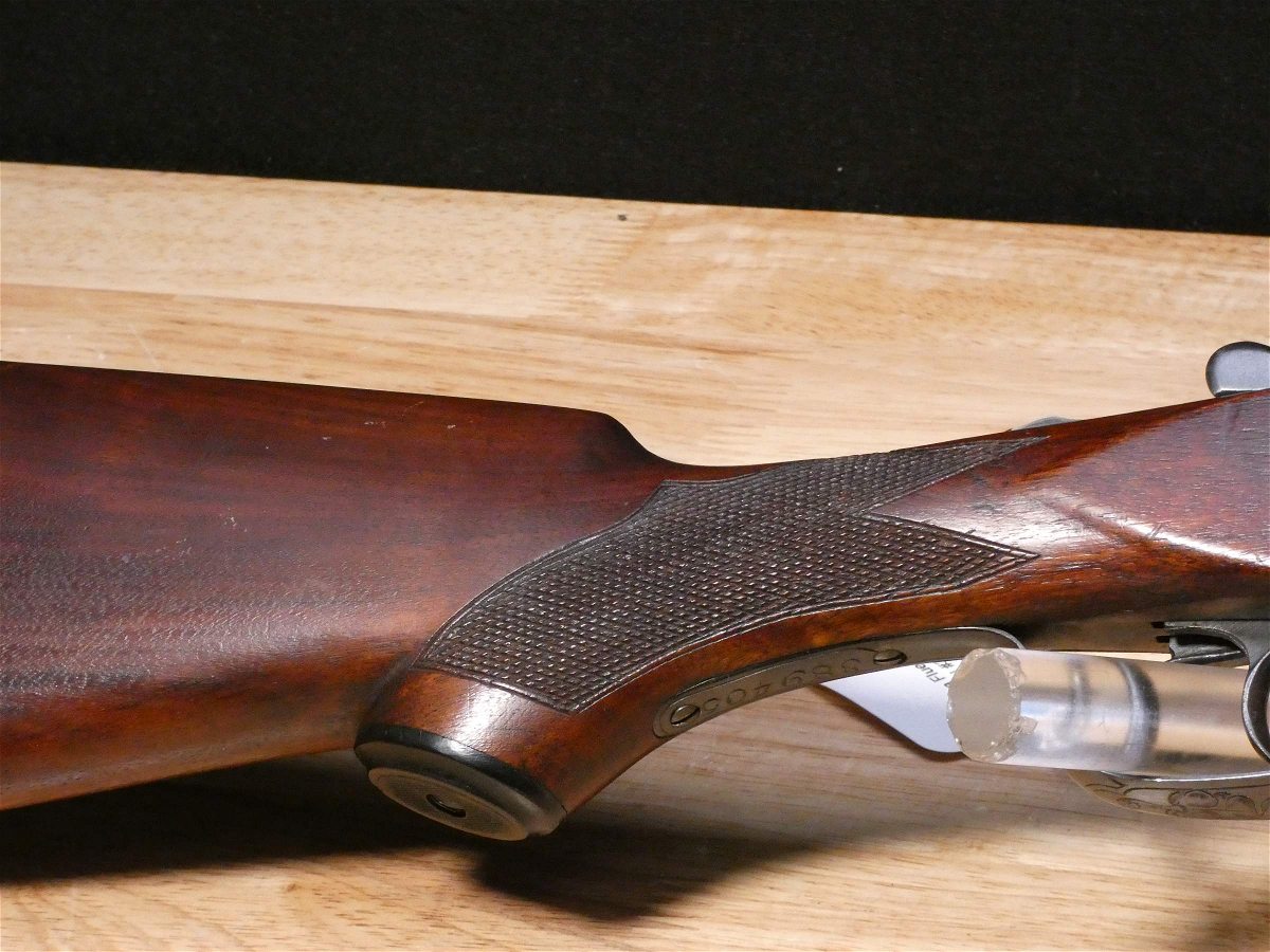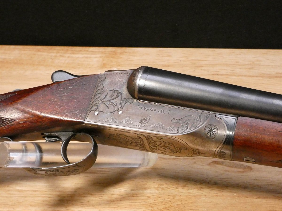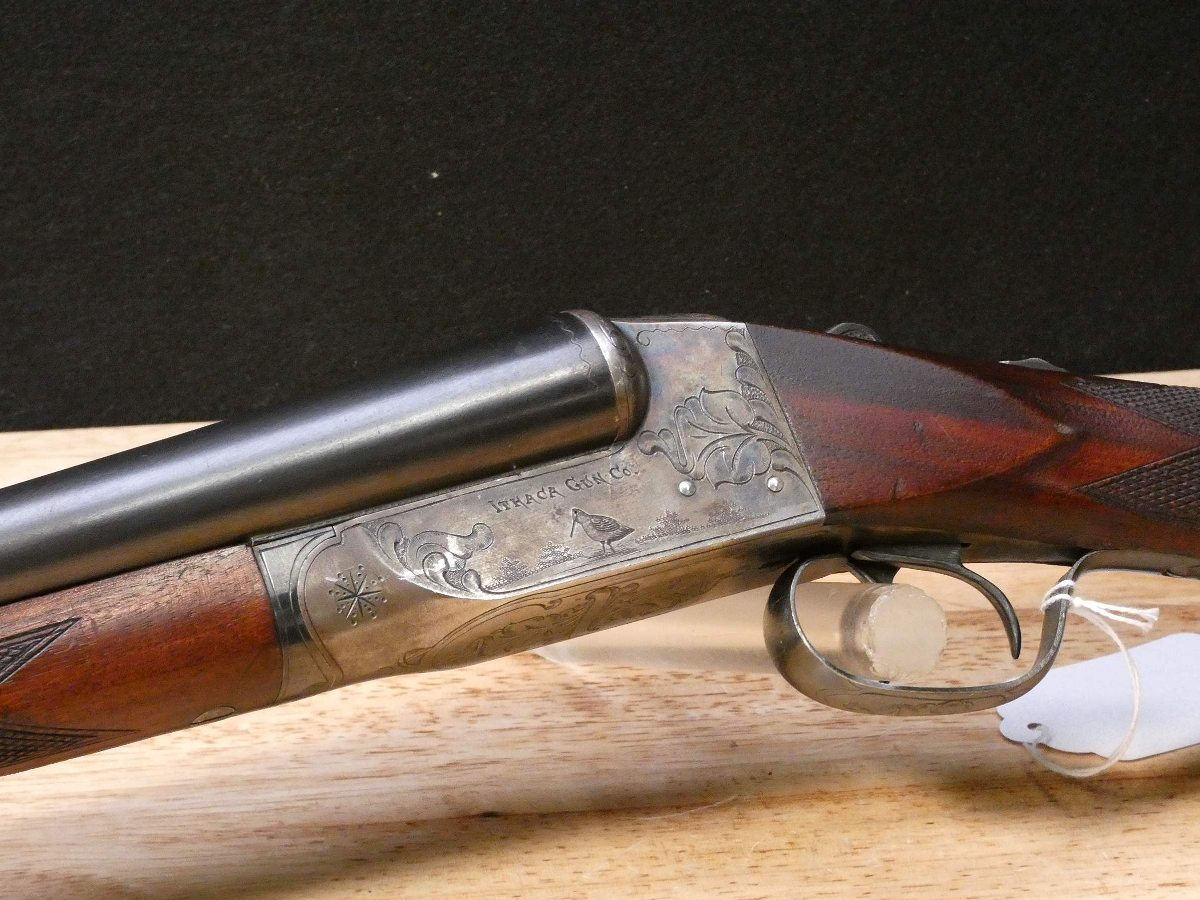 For sale is an Ithaca Flues Grade 2 double-barrel shotgun in 12ga. Serial number- 389405. Mfg. 1924. Has extractors. Full and Mod fixed chokes. Double trigger. All SNS are matching! It is in excellent condition for it age. the bore is in excellent condition as well! This gun features the full pistol grip buttstock with the Grade 2 checkering pattern and receiver engraving. The Ithaca Flues is the all-time best-selling American double gun. Ithaca’s Flues model SxS shotguns were introduced in 1908 and made until 1926. In all, about 223,000 of them were built – making the Flues one of the most popular double-barrel shotguns ever made in America. V2-A1 Barrel Length: 30 Bore condition: Excellent Year Manufactured: 1924