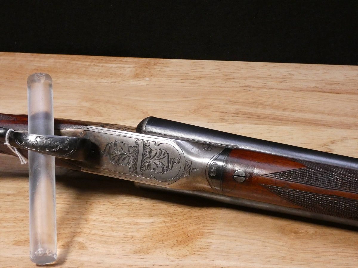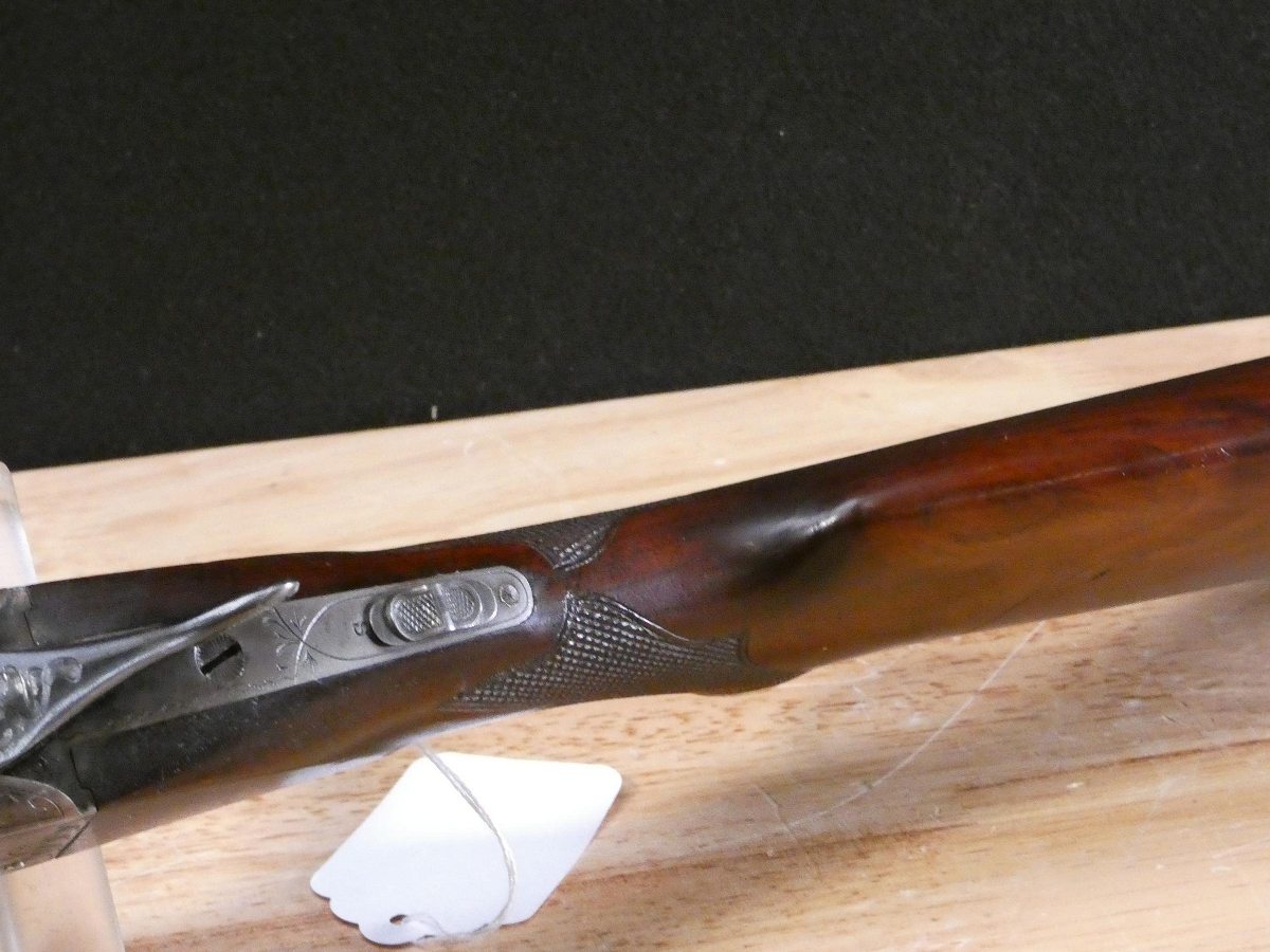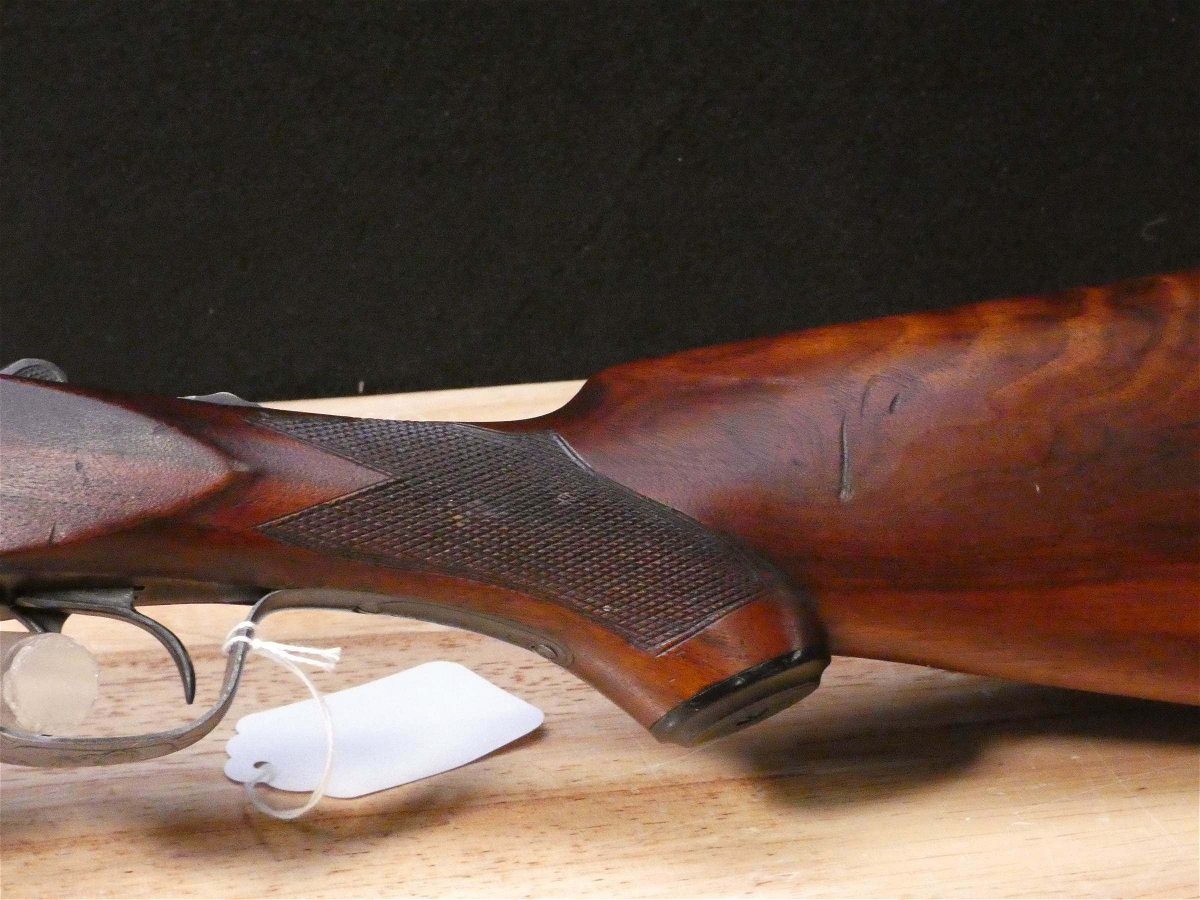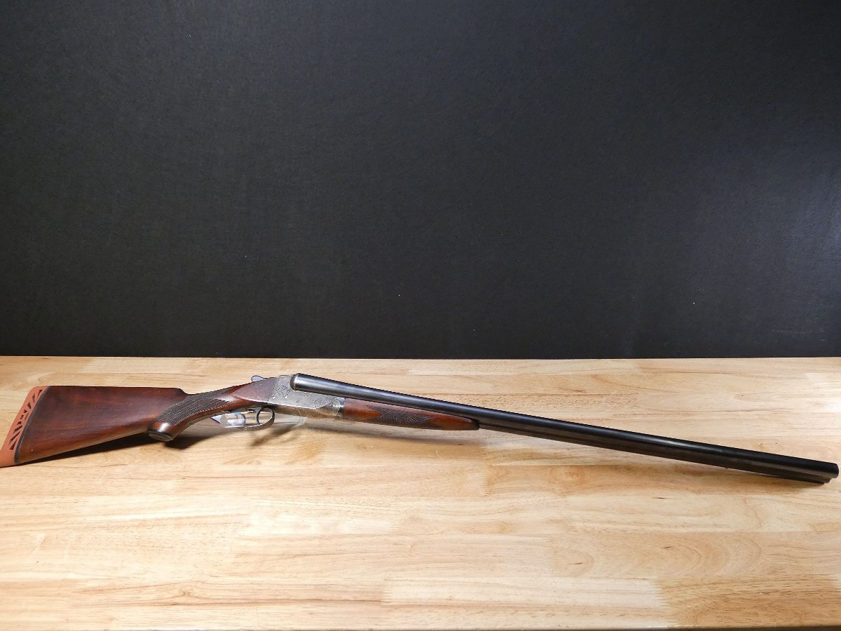 For sale is an Ithaca Flues Grade 2 double-barrel shotgun in 12ga. Serial number- 389405. Mfg. 1924. Has extractors. Full and Mod fixed chokes. Double trigger. All SNS are matching! It is in excellent condition for it age. the bore is in excellent condition as well! This gun features the full pistol grip buttstock with the Grade 2 checkering pattern and receiver engraving. The Ithaca Flues is the all-time best-selling American double gun. Ithaca’s Flues model SxS shotguns were introduced in 1908 and made until 1926. In all, about 223,000 of them were built – making the Flues one of the most popular double-barrel shotguns ever made in America. V2-A1 Barrel Length: 30 Bore condition: Excellent Year Manufactured: 1924