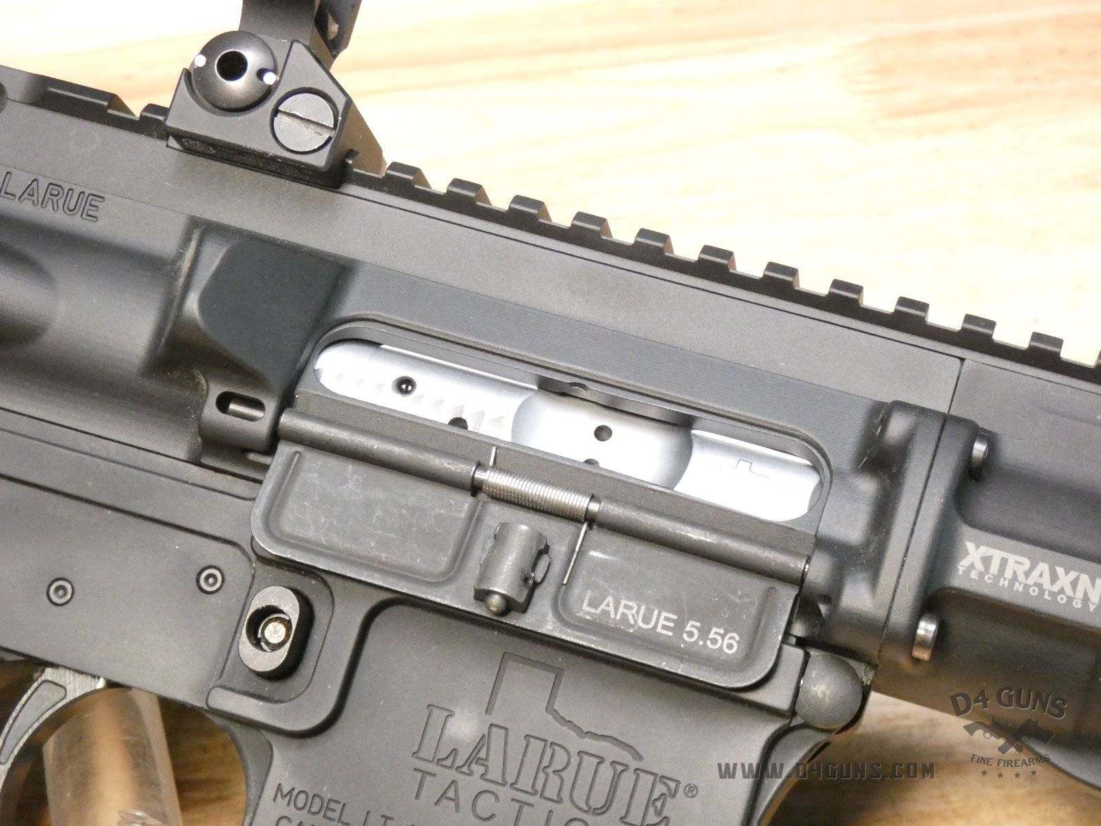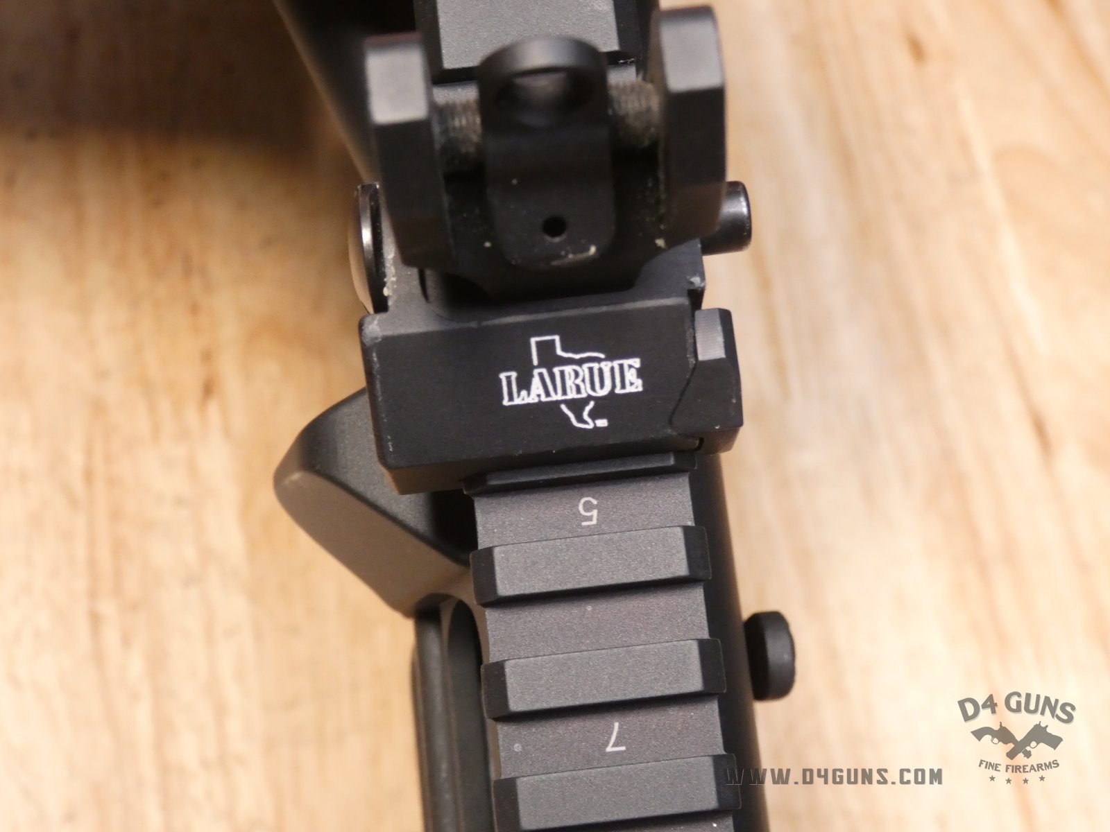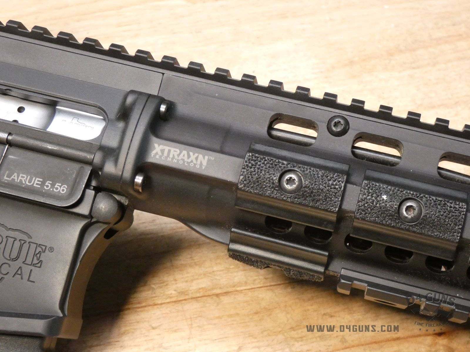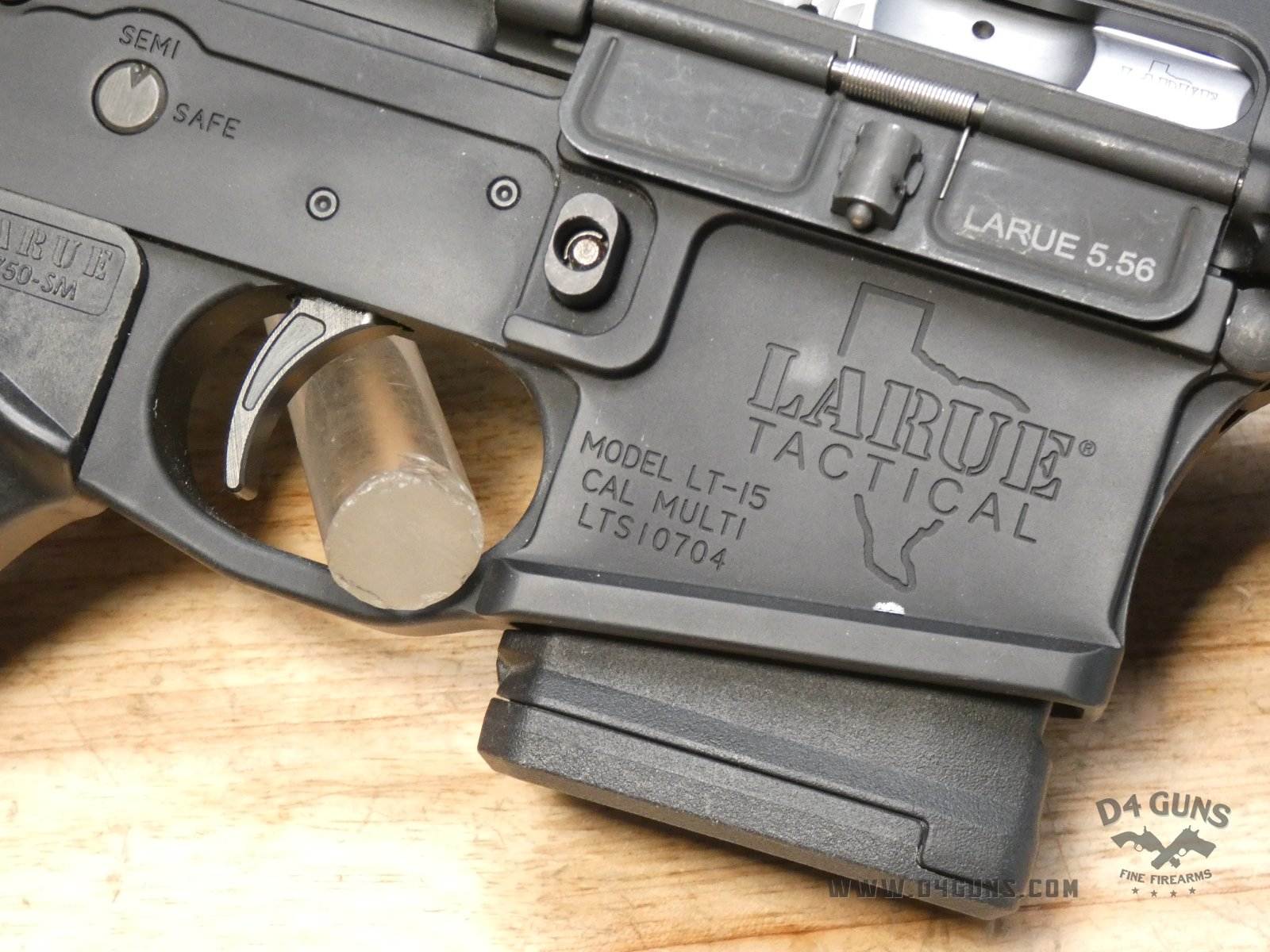 Up for grabs is a Larue Tactical LT-15 semi-automatic rifle in 5.56. Serial number-LTS10704. This rifle is in great condition and comes with a hardcase, manual, (1) magazine, bipod and buffer spring. Features an XTRAXN Technology handguard with grip panels, Larue iron sights, R.A.T 6-position stock. PLEASE note this gun features a bullet button. V1-K2 Barrel Length: 17 Bore condition: Good
