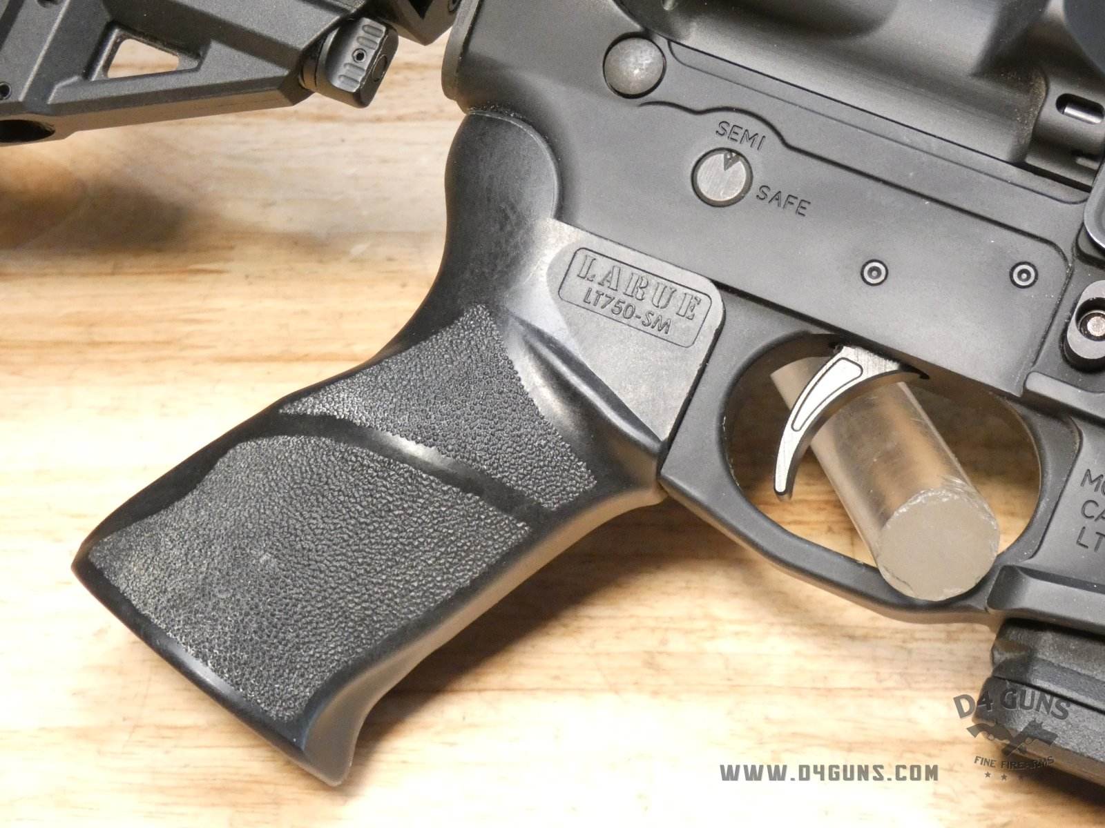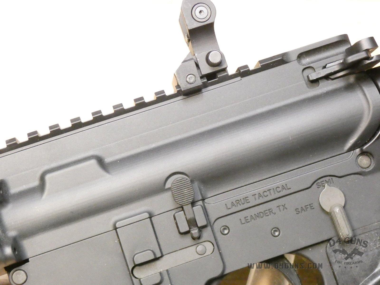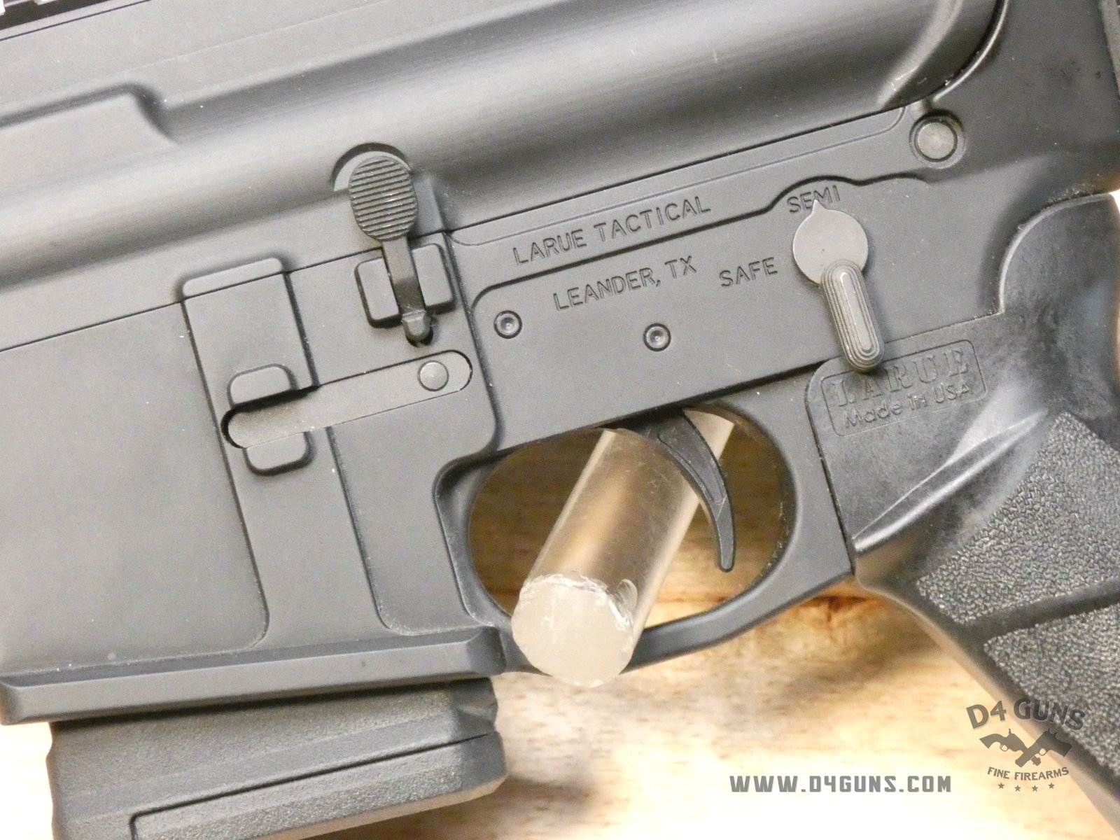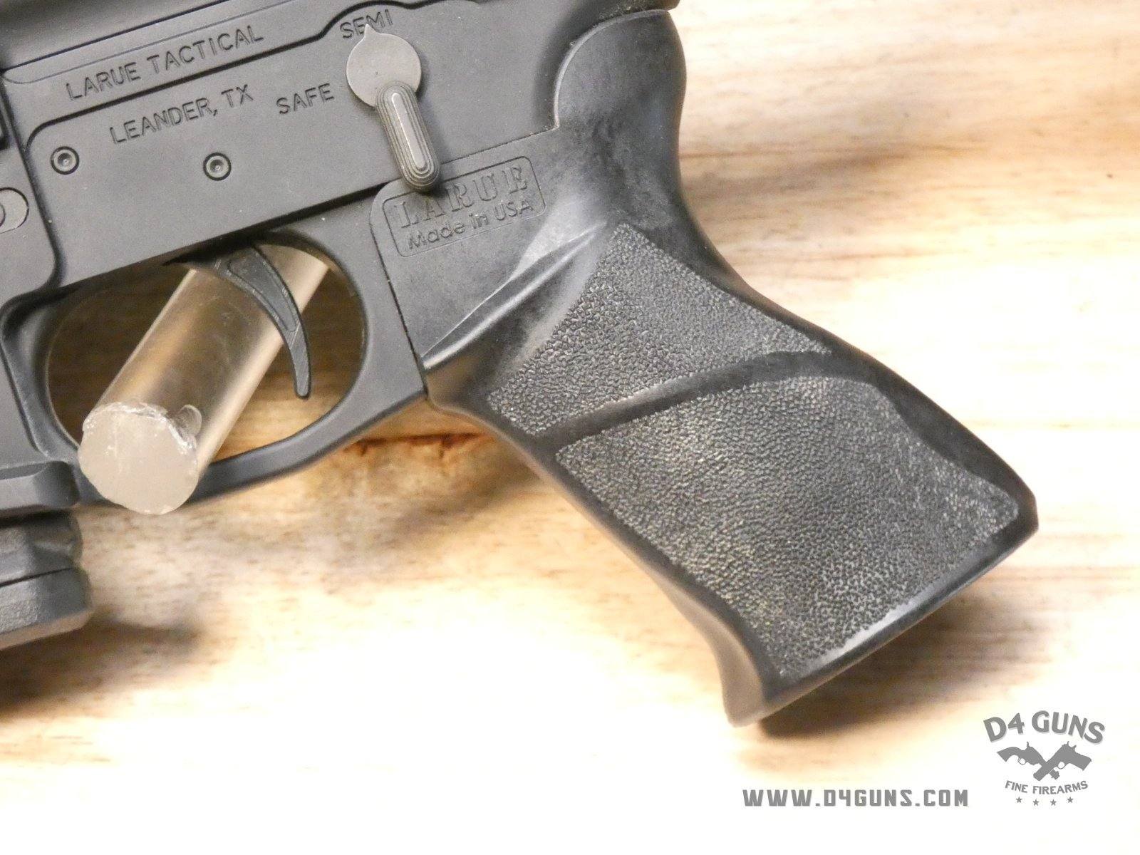 Up for grabs is a Larue Tactical LT-15 semi-automatic rifle in 5.56. Serial number-LTS10704. This rifle is in great condition and comes with a hardcase, manual, (1) magazine, bipod and buffer spring. Features an XTRAXN Technology handguard with grip panels, Larue iron sights, R.A.T 6-position stock. PLEASE note this gun features a bullet button. V1-K2 Barrel Length: 17 Bore condition: Good
