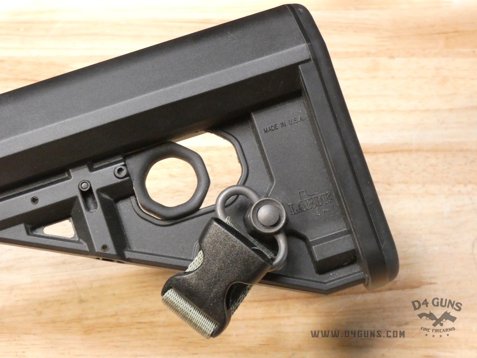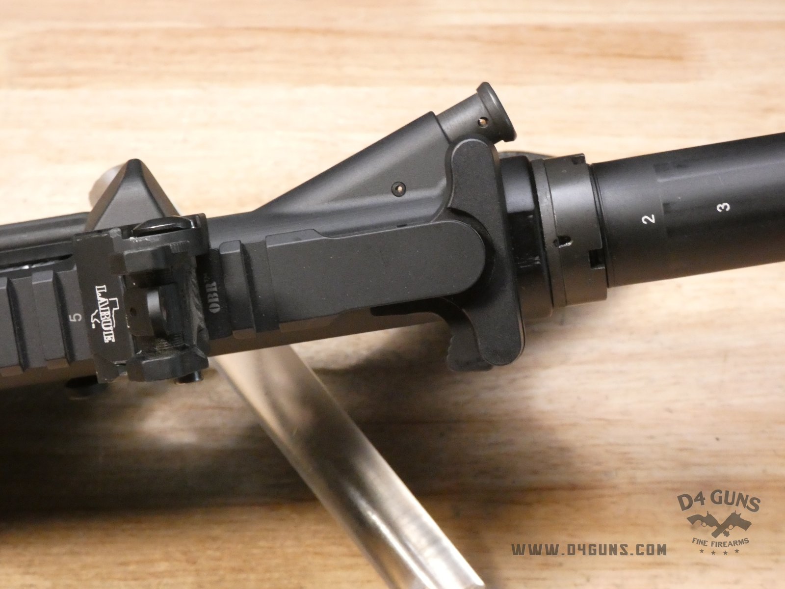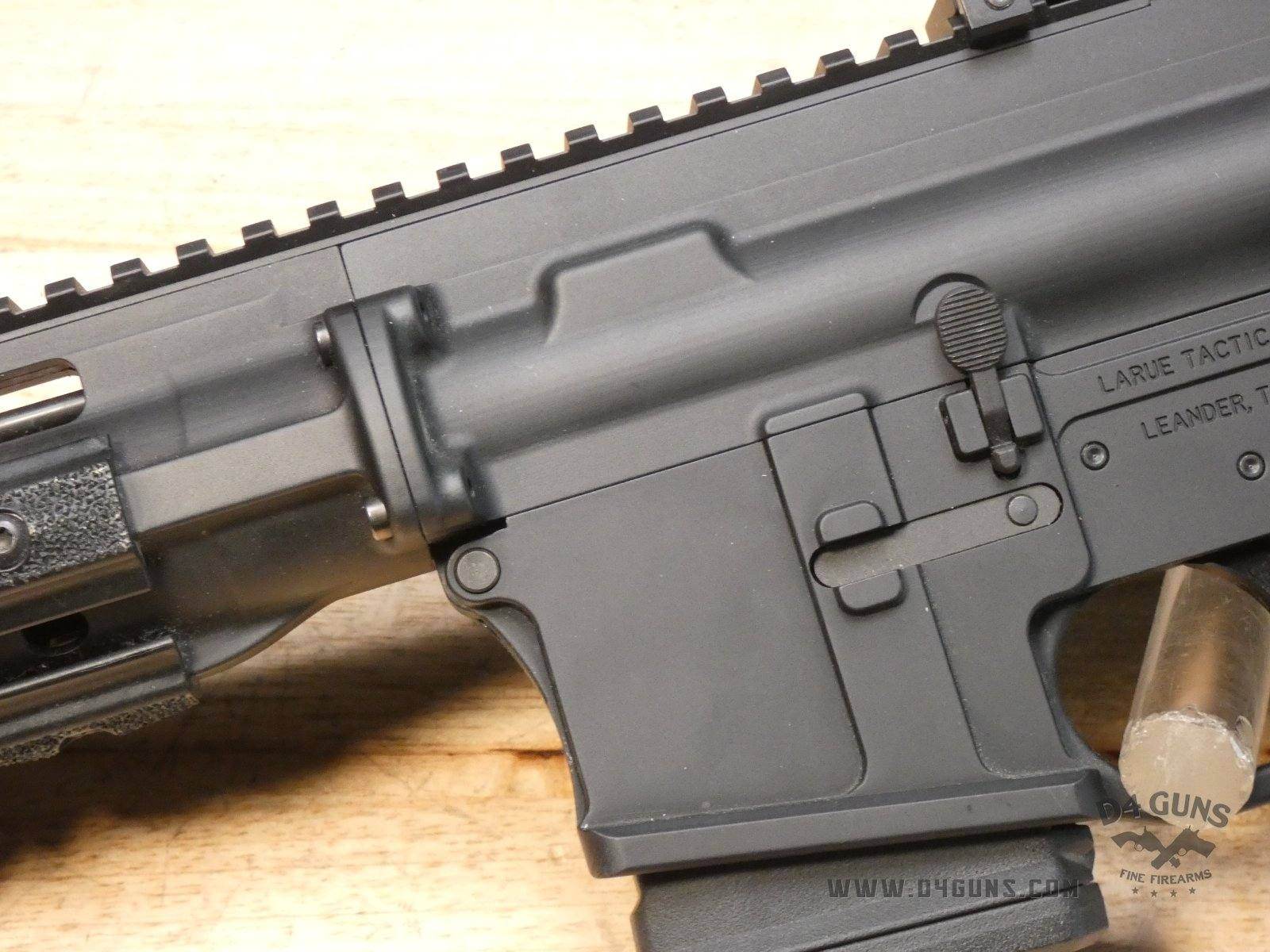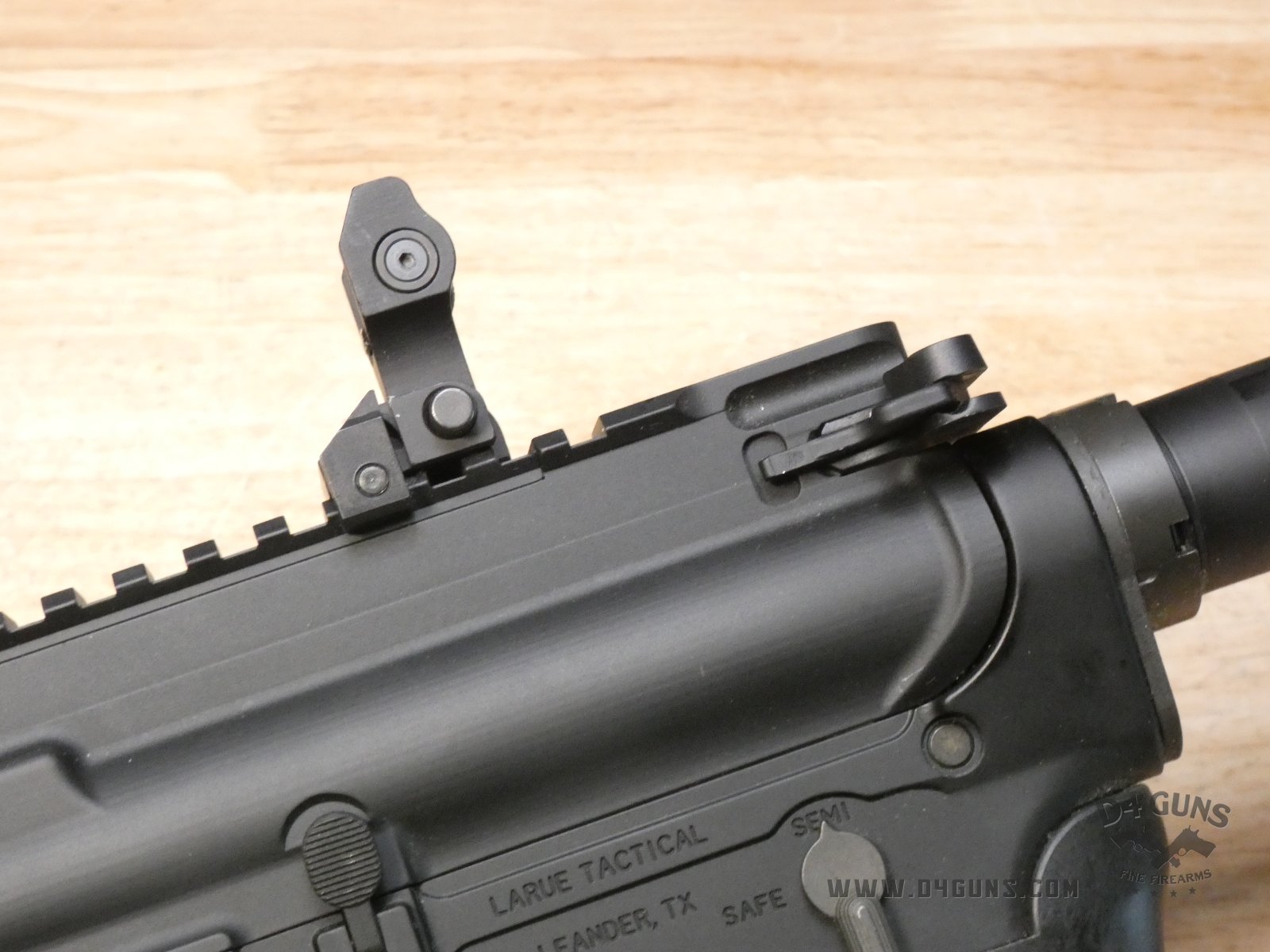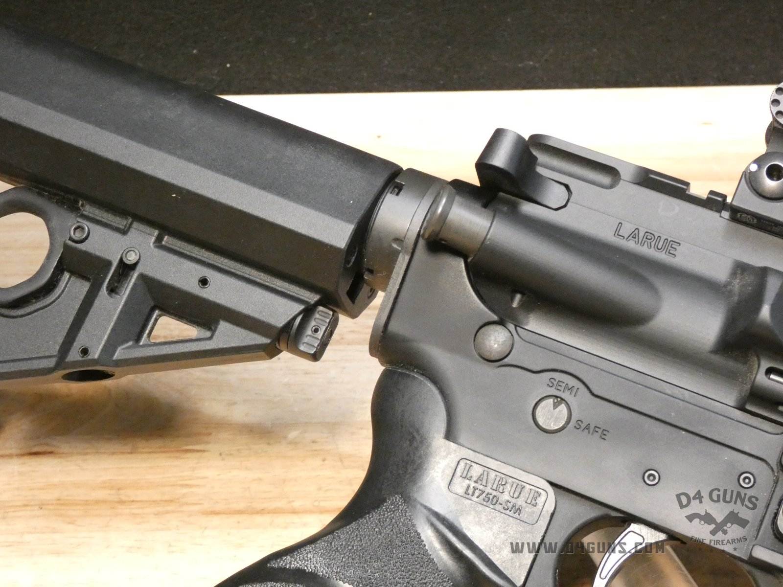 Up for grabs is a Larue Tactical LT-15 semi-automatic rifle in 5.56. Serial number-LTS10704. This rifle is in great condition and comes with a hardcase, manual, (1) magazine, bipod and buffer spring. Features an XTRAXN Technology handguard with grip panels, Larue iron sights, R.A.T 6-position stock. PLEASE note this gun features a bullet button. V1-K2 Barrel Length: 17 Bore condition: Good