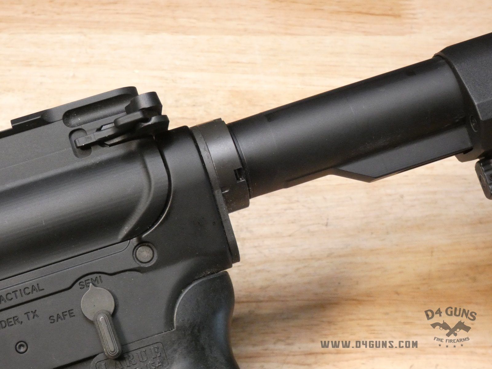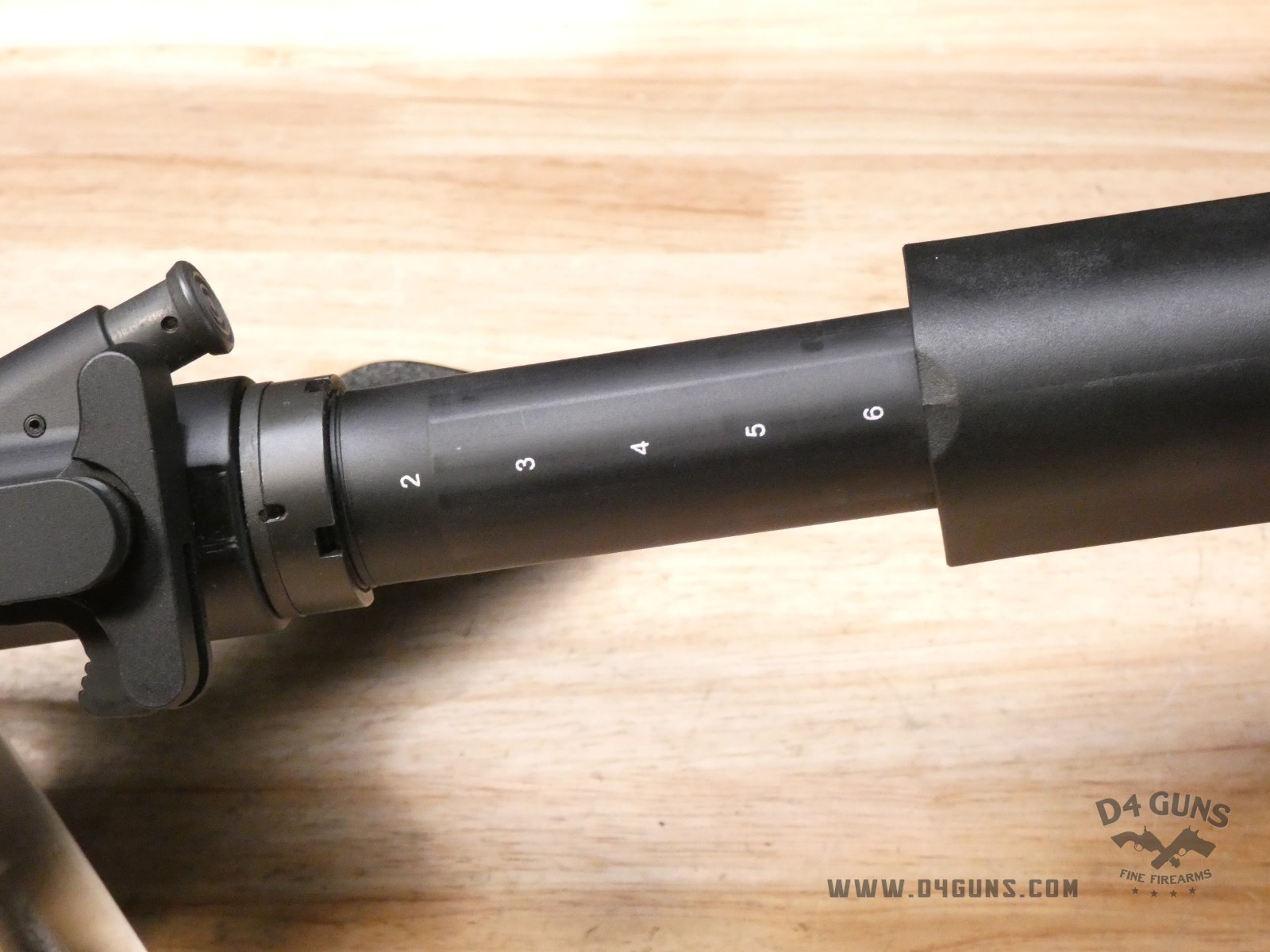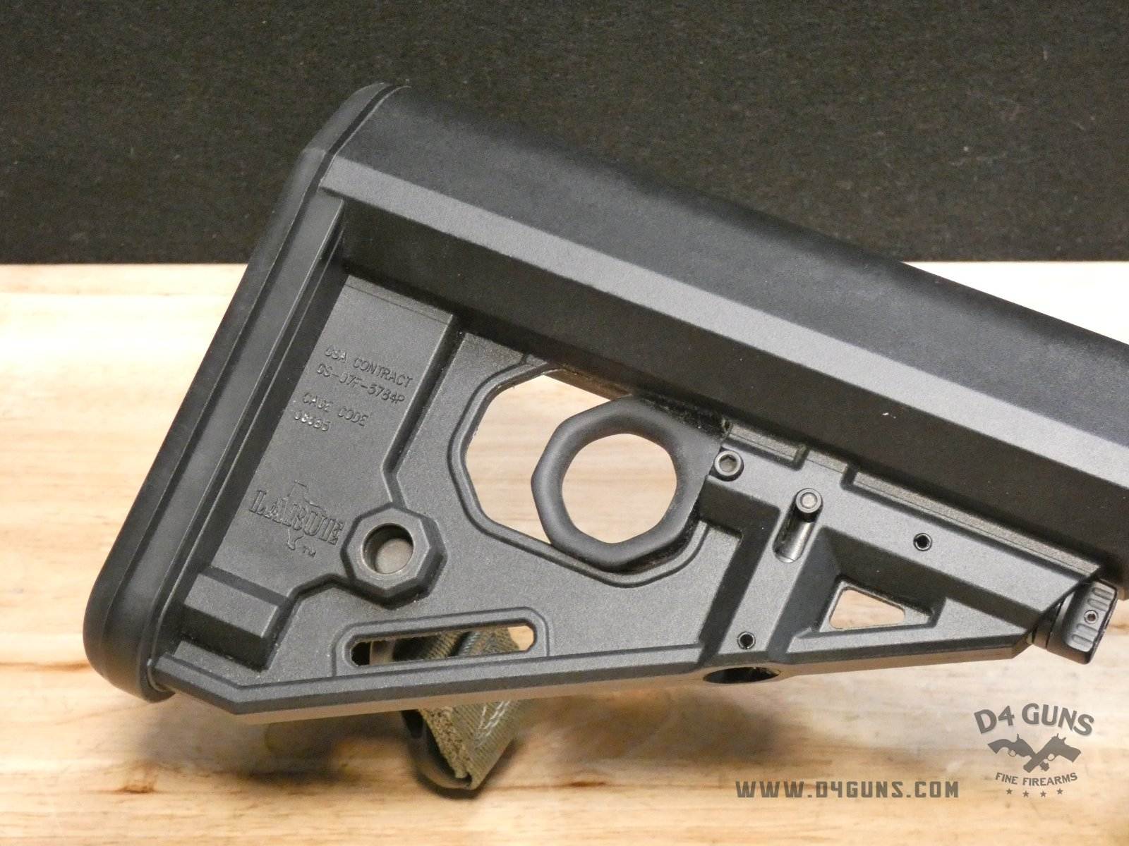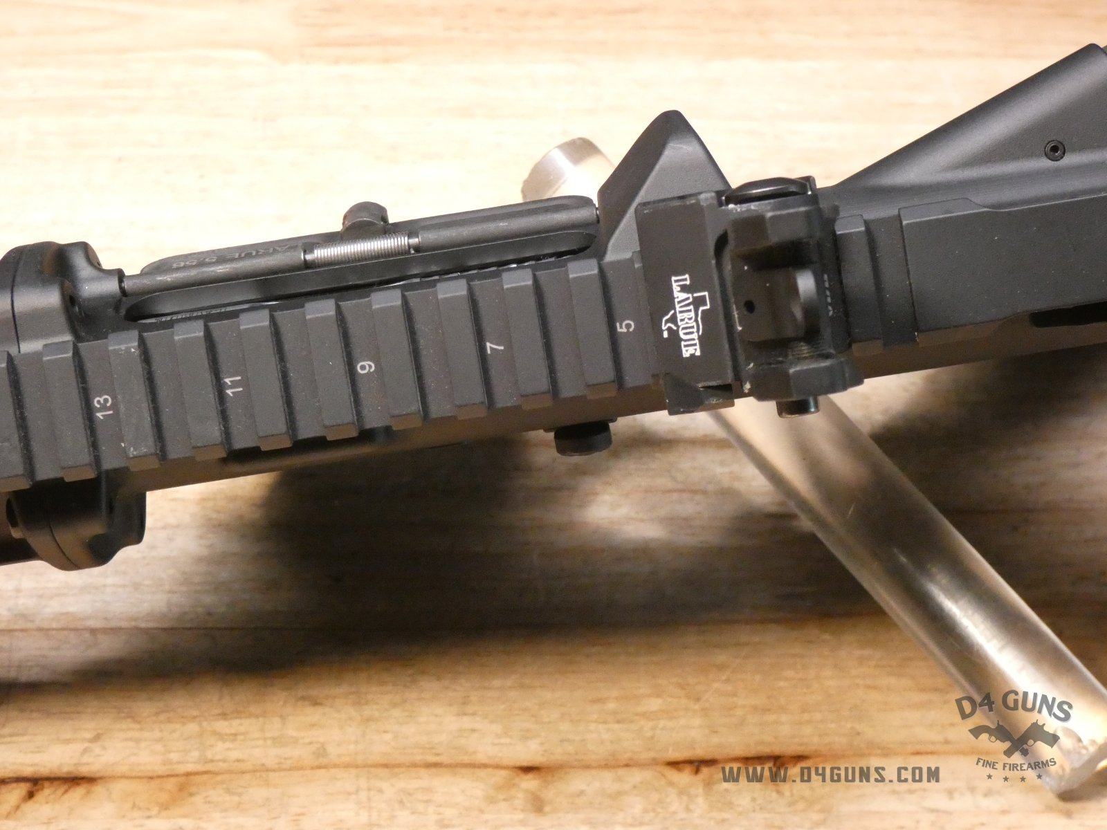 Up for grabs is a Larue Tactical LT-15 semi-automatic rifle in 5.56. Serial number-LTS10704. This rifle is in great condition and comes with a hardcase, manual, (1) magazine, bipod and buffer spring. Features an XTRAXN Technology handguard with grip panels, Larue iron sights, R.A.T 6-position stock. PLEASE note this gun features a bullet button. V1-K2 Barrel Length: 17 Bore condition: Good