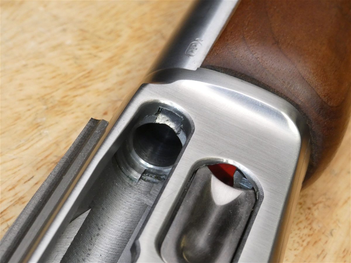 For sale is a Stainless Marlin Model 1895GS Guide Gun lever-action rifle in .45/70 Govt. Serial number- MR07586B. It is in excellent condition. The venerable big–game–dropping performance of the 45–70 Gov’t. is now available in a compact gun that weighs only 7 lbs. It features an 18½" inch barrel and a straight grip stock for fast pointing. For corrosion resistance, the Model 1895GS comes with all major metal parts machined from stainless steel. V2-K1 Barrel Length: 18.5 Bore condition: Excellent