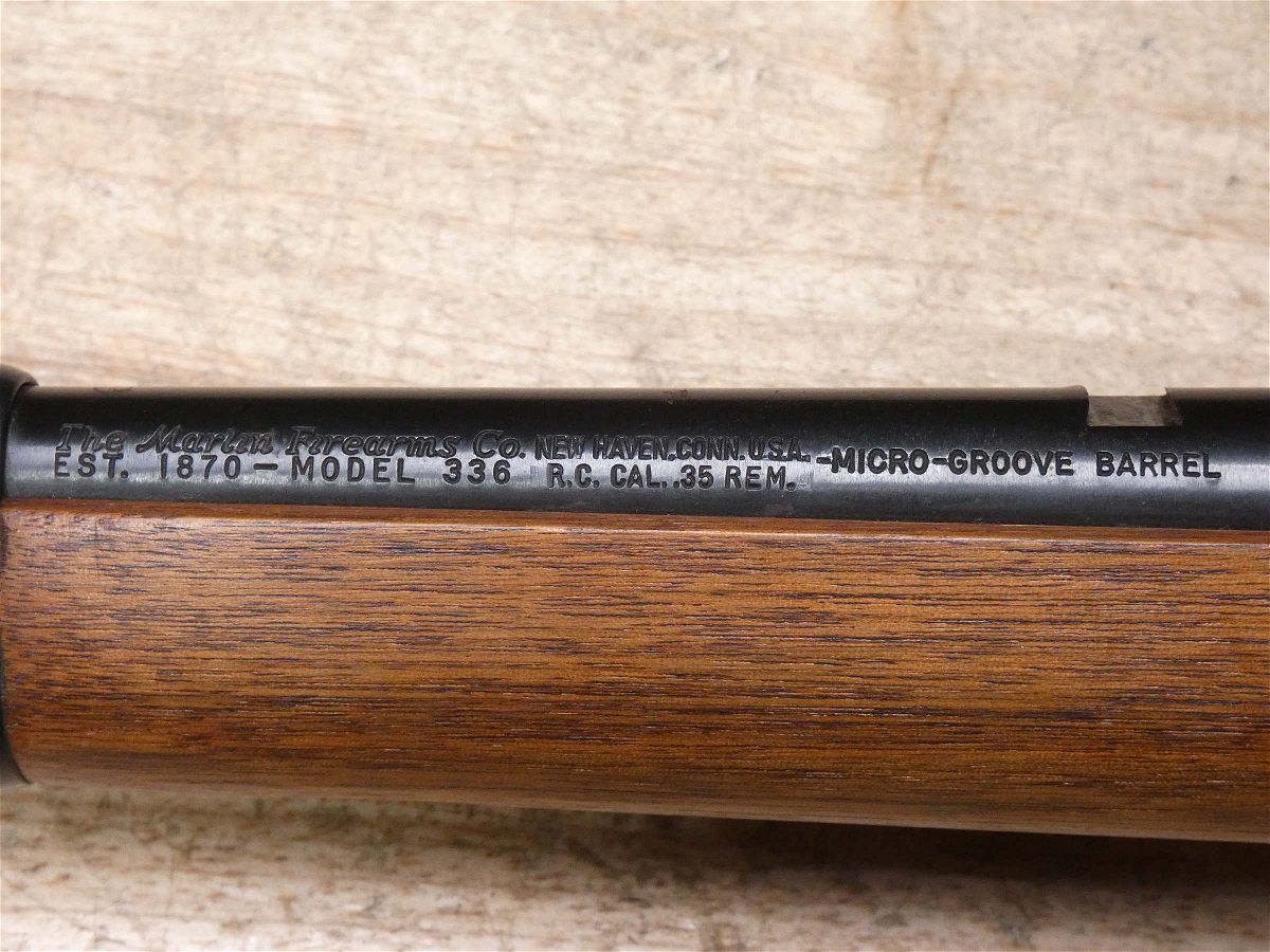For sale is a Marlin Model 336 lever-action rifle in .35 Remington. Serial number- T3817. This rifle features a 20" barrel with the "JM" stamp indicating manufacture by the original Marlin Firearms team. The T prefix to the serial number indicates this 336 was manufactured in 1960. First introduced in 1948 by Marlin Firearms, the Marlin 336 is one of the most popular lever-action rifles ever made. The Model 336 embodies Marlin’s dedication to dependability, pinpoints accuracy, and good looks. This rifle ranks up there with other iconic guns like the Winchester Model 1894, the Winchester Model 70, and the Remington Model 700. As a result, hunters have taken countless deer, elk, bear, and feral hogs with this great little rifle over the years. PLEASE NOTE: There is significant rust present on the tip of the barrel and some minor rust present in the bore. There is NO rear sight present. V1-A1 Barrel Length: 20 Bore condition: Fair Year Manufactured: 1960