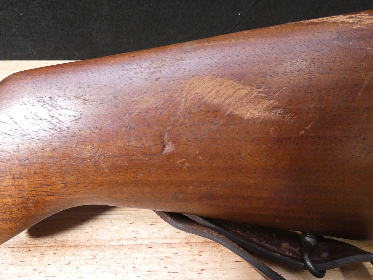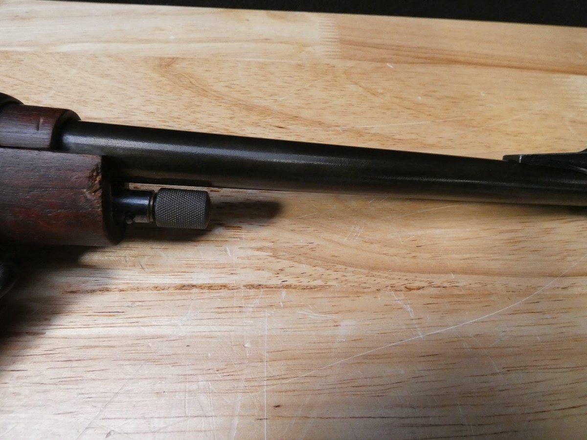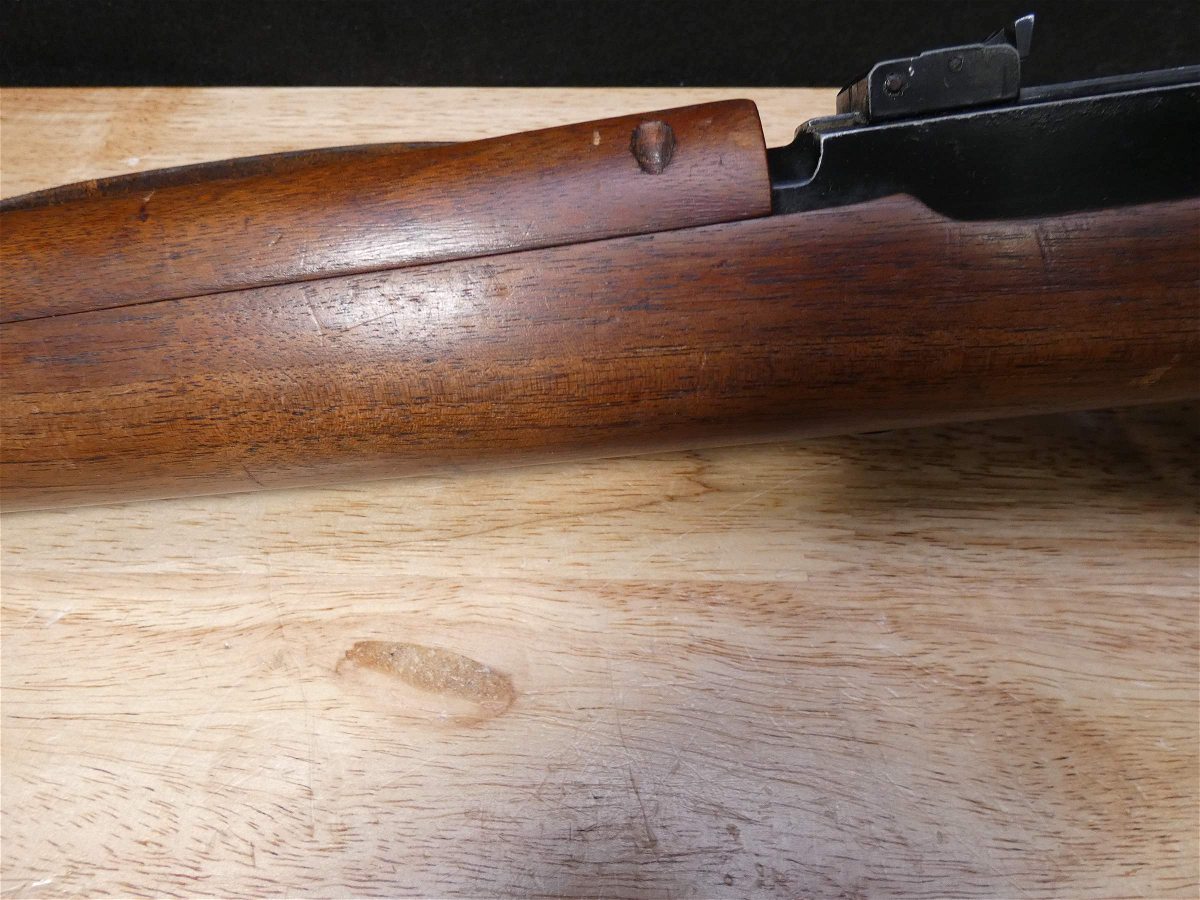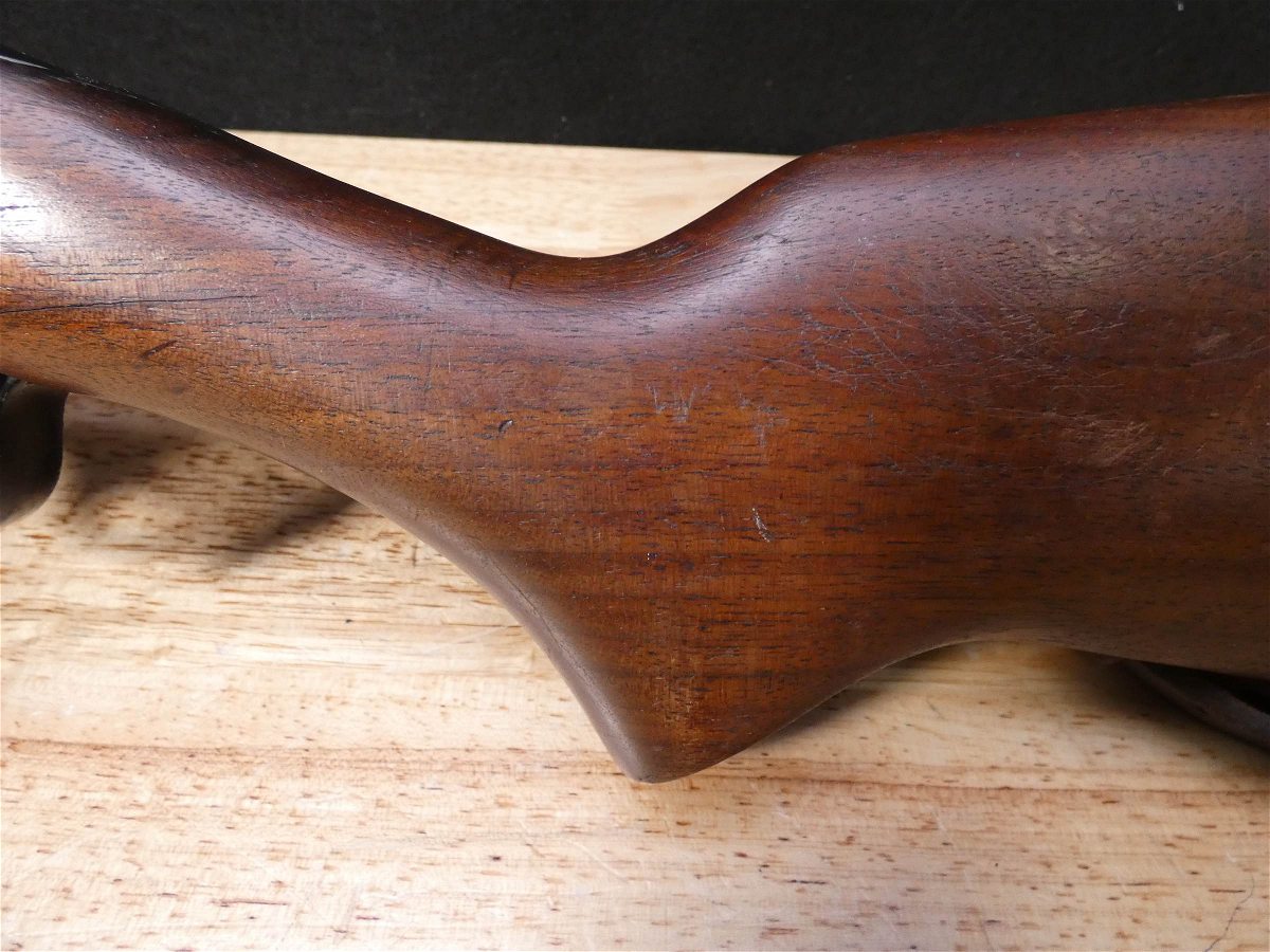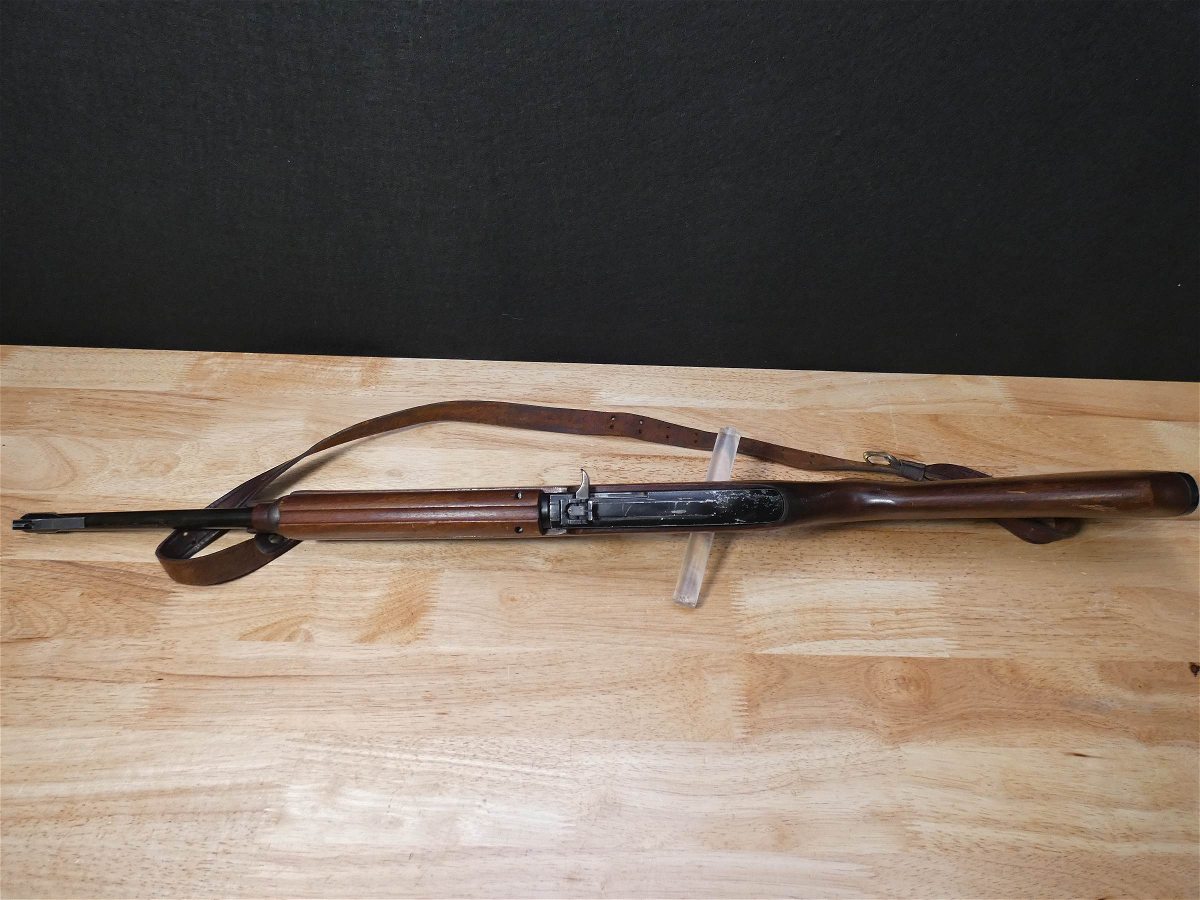 For sale is a Marlin Model 99M1 semi automatic rifle in .22 LR. Serial number- N/A. While the Model 99 series was typical of what you'd expect of a standard .22 rifle of the period, the Model 99M1 was instead styled to resemble the US Army M1 carbine, with an eighteen-inch barrel, handguard, barrel band, nine-shot tubular magazine even with the end of the stock, and receiver sight mounted on the scope grooves. An excellent trainer rifle with style! Please note that there is heavy finish wear on the wood stock and on most metal areas. Please refer to the photos. V2-A2 Barrel Length: 18 Bore condition: Good