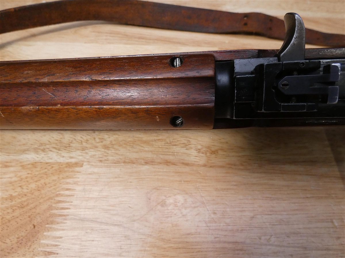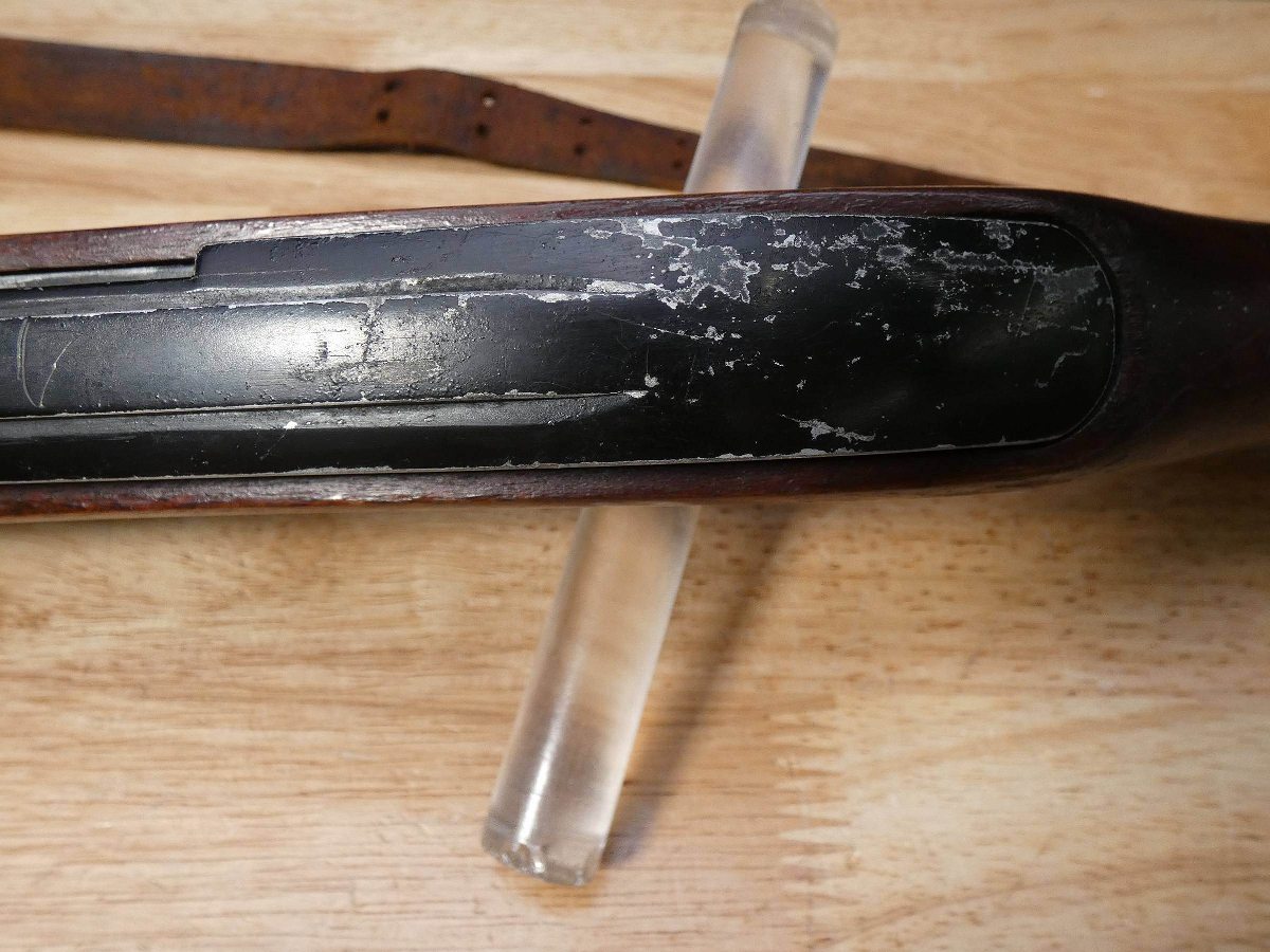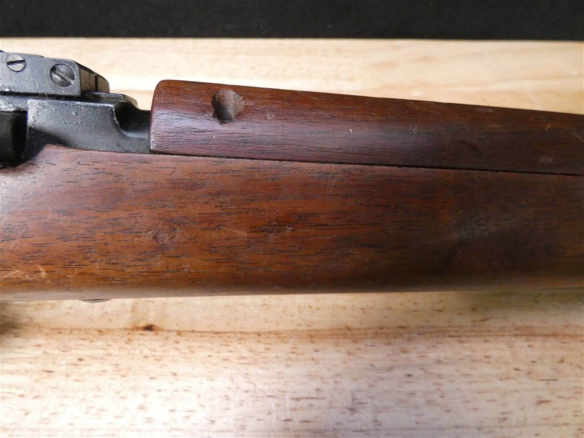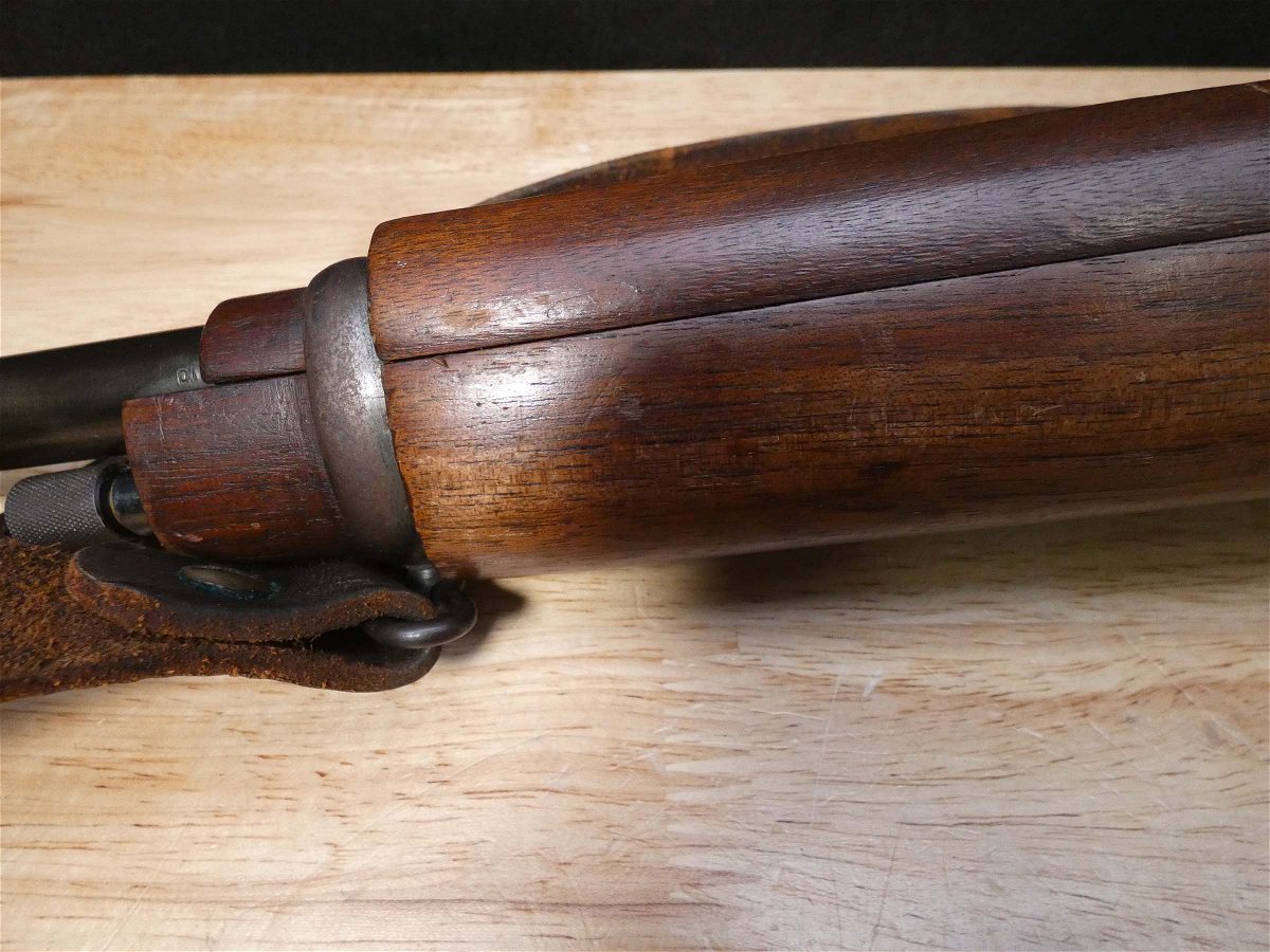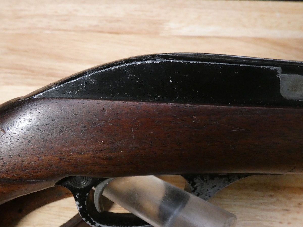 For sale is a Marlin Model 99M1 semi automatic rifle in .22 LR. Serial number- N/A. While the Model 99 series was typical of what you'd expect of a standard .22 rifle of the period, the Model 99M1 was instead styled to resemble the US Army M1 carbine, with an eighteen-inch barrel, handguard, barrel band, nine-shot tubular magazine even with the end of the stock, and receiver sight mounted on the scope grooves. An excellent trainer rifle with style! Please note that there is heavy finish wear on the wood stock and on most metal areas. Please refer to the photos. V2-A2 Barrel Length: 18 Bore condition: Good
