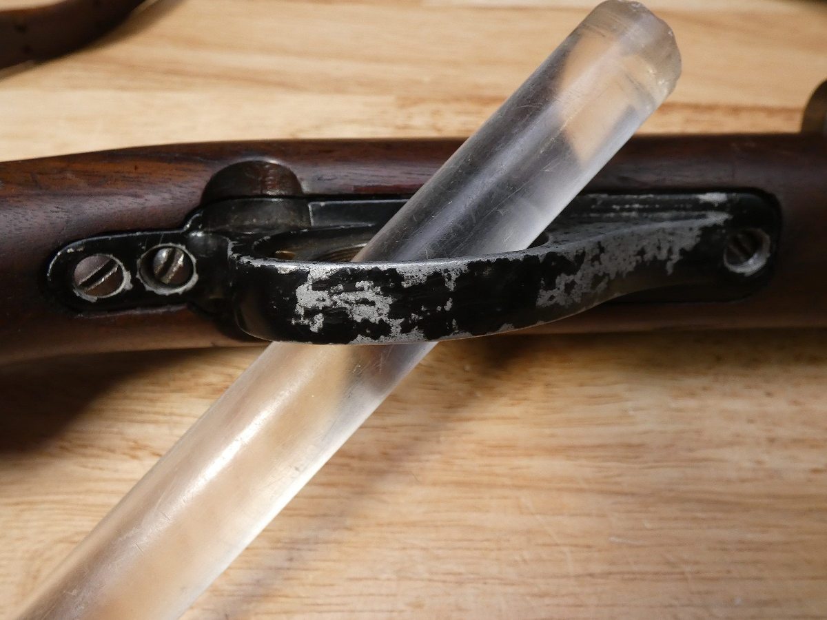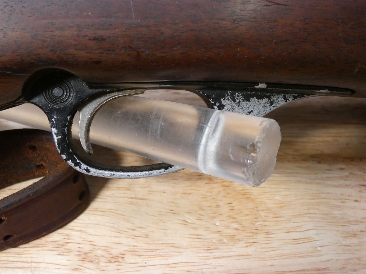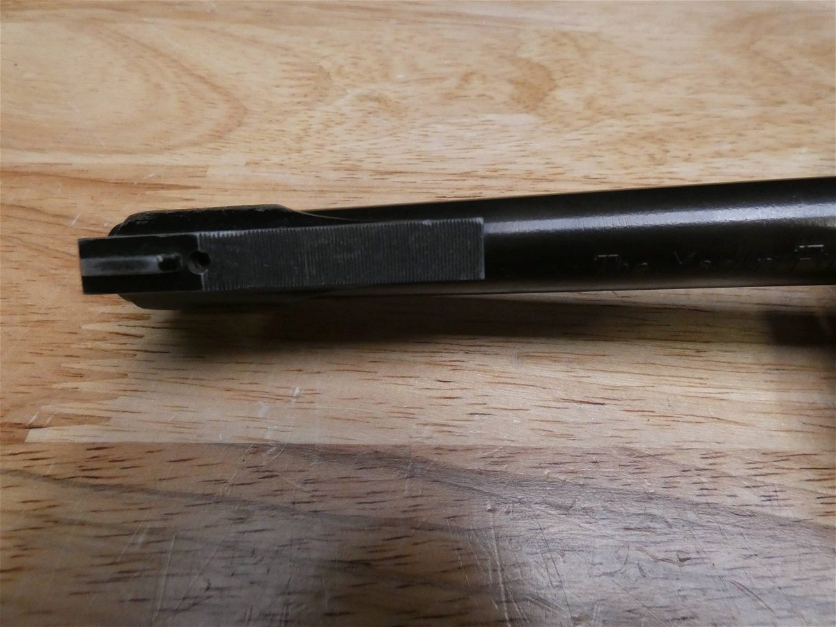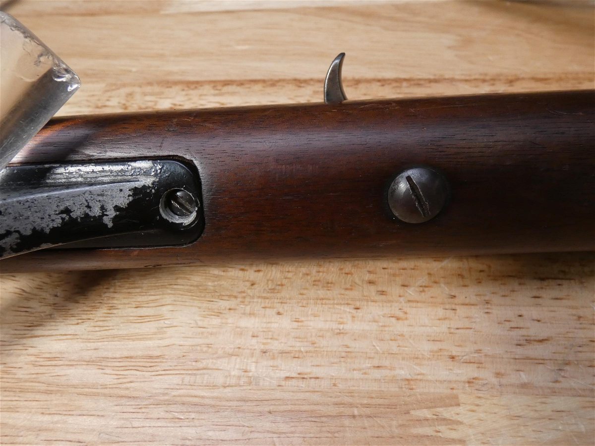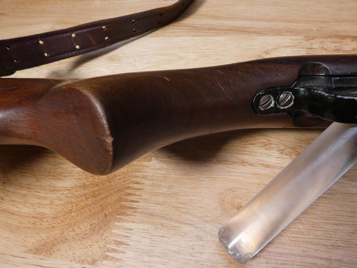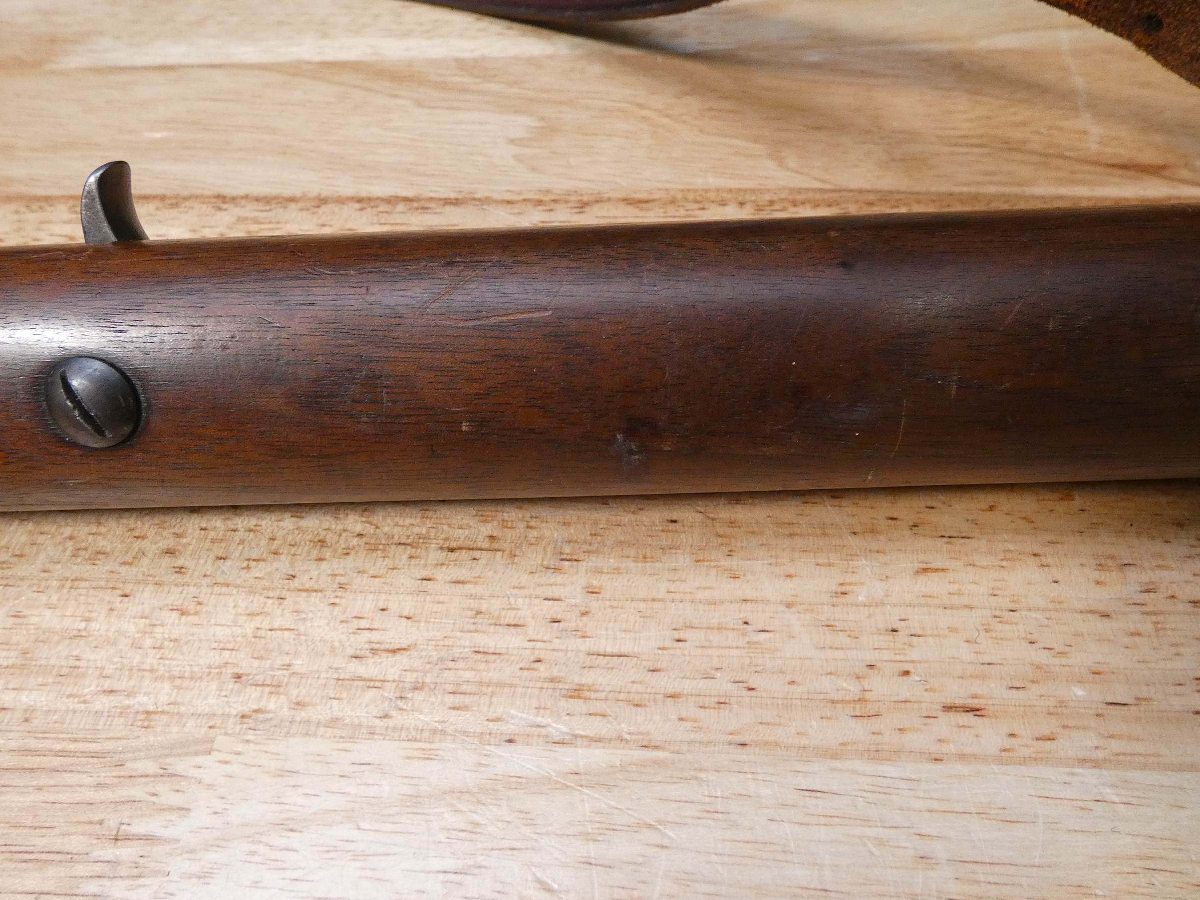 For sale is a Marlin Model 99M1 semi automatic rifle in .22 LR. Serial number- N/A. While the Model 99 series was typical of what you'd expect of a standard .22 rifle of the period, the Model 99M1 was instead styled to resemble the US Army M1 carbine, with an eighteen-inch barrel, handguard, barrel band, nine-shot tubular magazine even with the end of the stock, and receiver sight mounted on the scope grooves. An excellent trainer rifle with style! Please note that there is heavy finish wear on the wood stock and on most metal areas. Please refer to the photos. V2-A2 Barrel Length: 18 Bore condition: Good