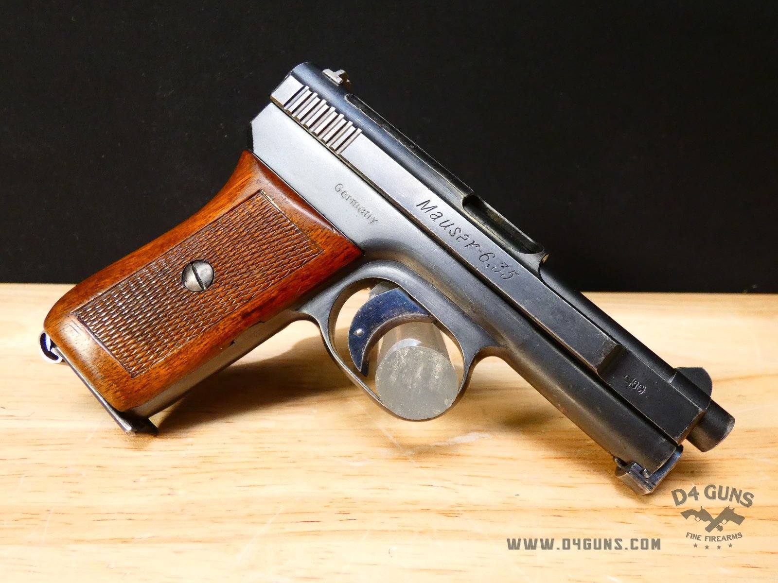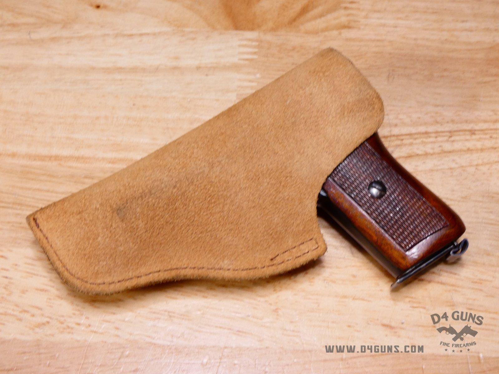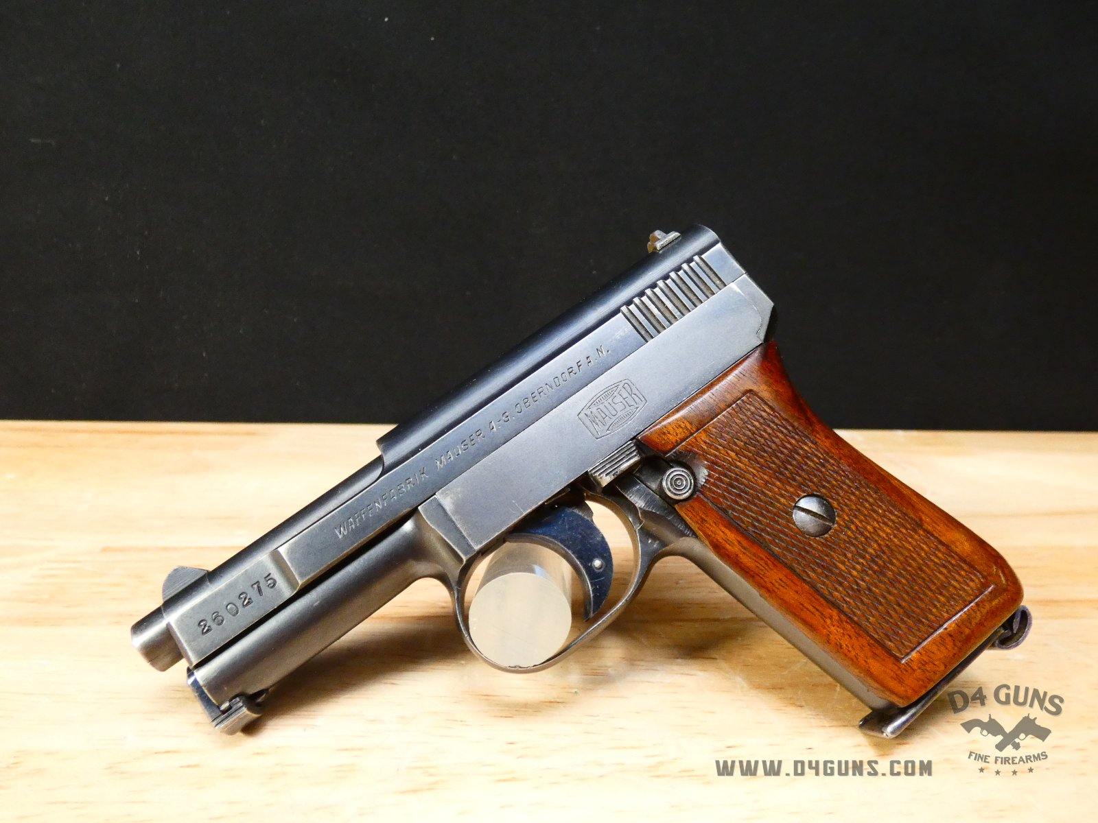 For sale is a Mauser 1910 semi-automatic pistol in . Serial number-260275. This pistol is in great condition and comes with a holster & (1) magazine. Despite the fact that Mauser’s company did not actually refer to their designs by model, but rather by the caliber. The M1910 is the nomenclature applied to the smallest of these handguns that were chambered for the 6.35mm cartridge (.25ACP). The 6.35mm Browning (.25ACP) chambered Mauser Model 1910 was actually introduced in Europe in 1906 and into the USA two years later. This pistol was a straight blowback design, not having the complexity of the delayed recoil locking system used for the 9mm Parabellum and .45ACP versions. The pistol was made to be simple, reliable, and easy to maintain. V2-E2 Barrel Length: 3 Bore condition: Good