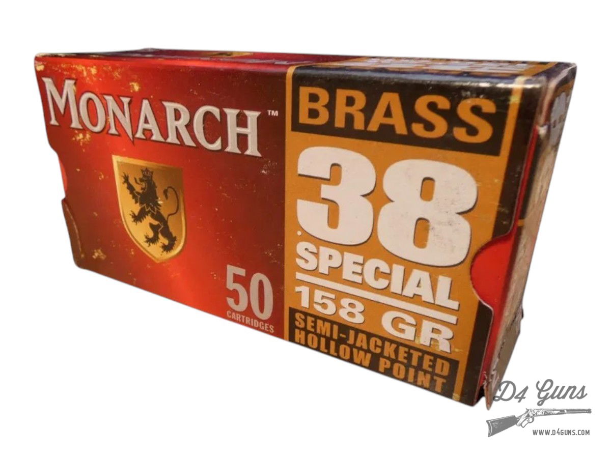 Monarch – .38 Special – 158gr – Semi Jacketed Hollow Point – 50 Rounds Per Box – UPC: 400125865414. Designed to deliver all the stopping power and terminal expansion of a normal hollow point, but with more penetration, these bullets are ideal for home defense, personal protection, and concealed carry applications. PLEASE NOTE: Factory second ammunition may show signs of wear, aging, or damage to the packaging. The ammunition is in acceptable and usable condition; however, it is sold AS-IS with no warranty or guarantee. All sales are final—no returns will be accepted.