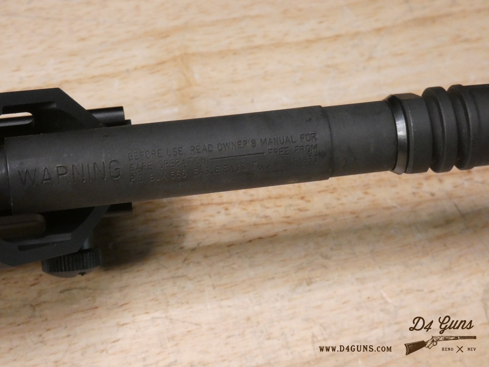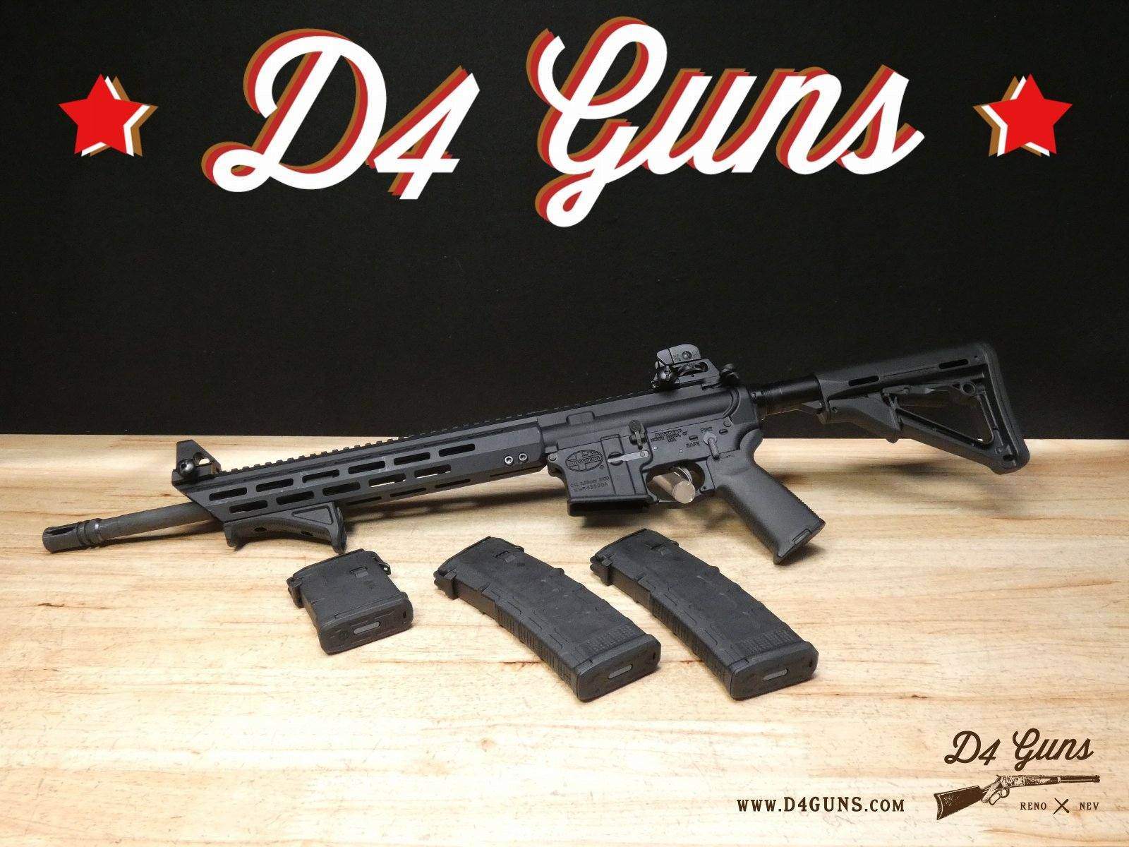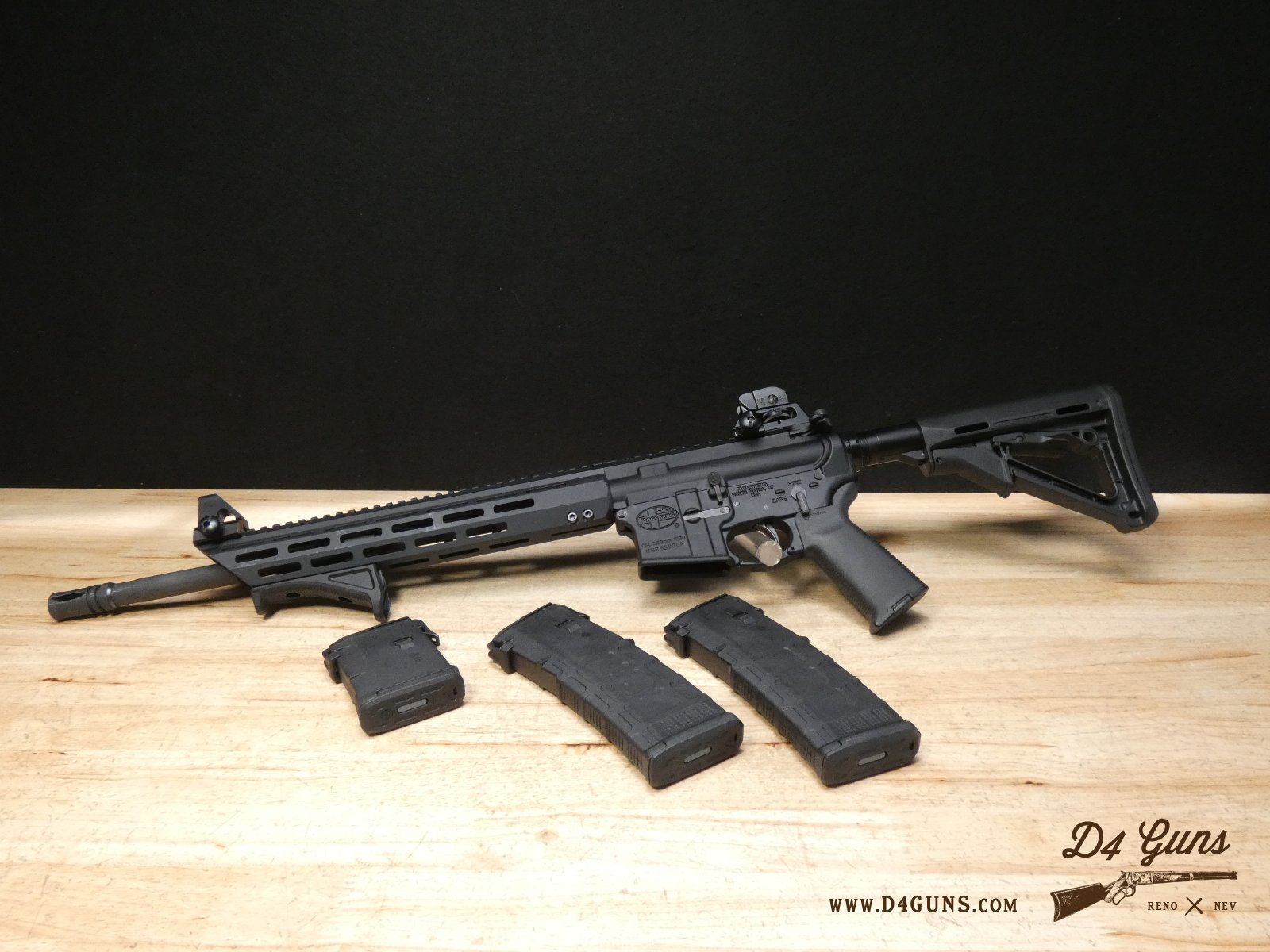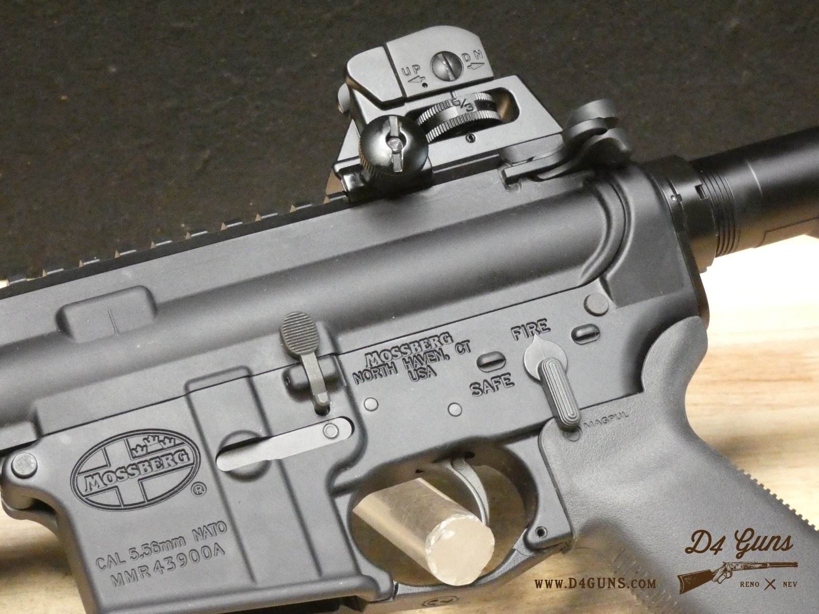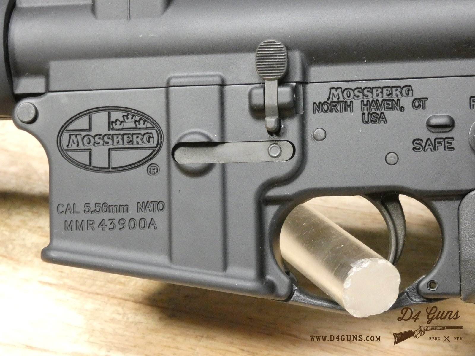 For sale is a Mossberg Model MMR Carbine semi-auto rifle in 5.56 NATO. Serial number- MMR43900A. This rifle includes three magazines (two 30-round magazines, and one 10-round magazine). Free-floating barrel for superior down-range accuracy; direct-impingement gas system; adjustable target sights; slim-profile Magpul M-LOK forend/handguard, and an RFG handgrip. V1-C1 Barrel Length: 16 Bore condition: Good