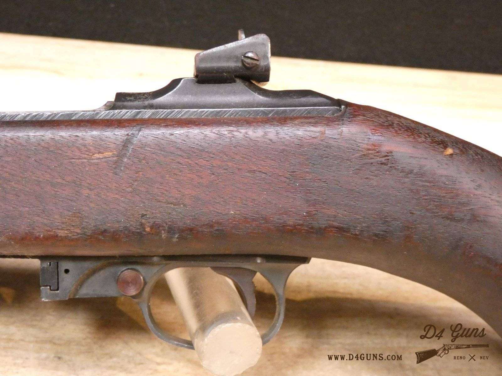 Up for sale is a National Ordnance M1 Carbine semi-automatic rifle in .30 Cal. Serial number- 32636. This carbine includes one 30 round magazine. This rifle is missing the upper foregrip and has a front sight that is not original. This would make a good project gun or shooter without fear of ruining a genuine M1-Carbine. The M1 Carbine was the most produced American rifle of WWII. It was popular with American troops for its lightweight and smaller .30 cal round compared to the standard-issue M1-Garand. V1-A4 Barrel Length: 18 Bore condition: Good