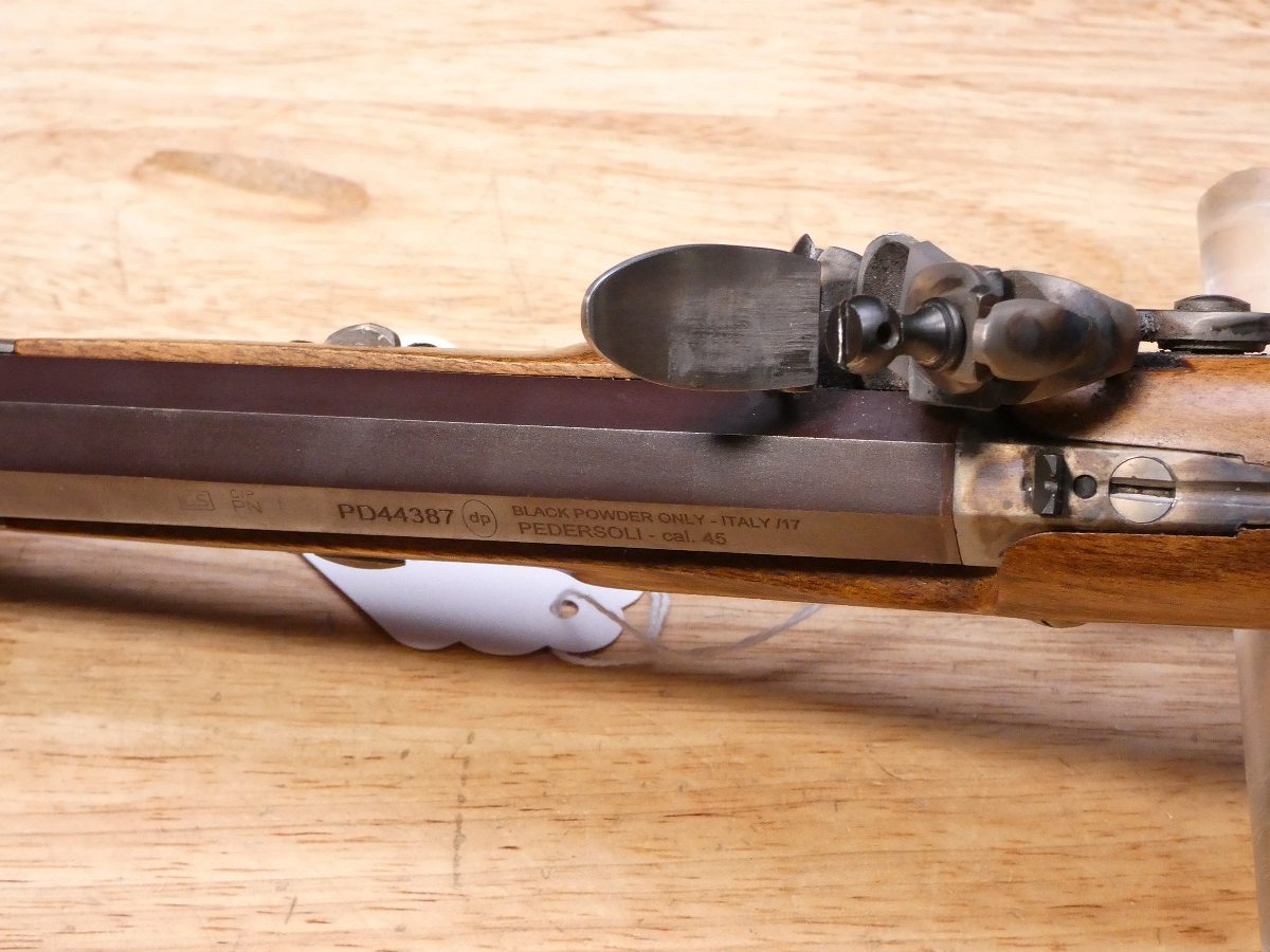 For sale is a Pedersoli blackpowder pistol in .45 Cal. Serial number- PD44387. Mfg. 2017. It is in great condition! The Pedersoli is a reproduction of the famous dueling pistol that was originally produced in the early 1900s. A good-looking model, aesthetically emphasized by the casehardened action and the walnut stock, oil finished. V1-G1 Barrel Length: 9.5 Bore condition: Excellent Year Manufactured: 2017